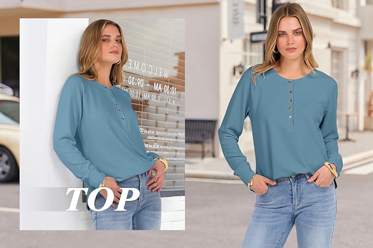 ANRABESS Womens Lounge Set 2025 Fall 2 Piece Outfit Long Sleeve Pajamas Sets Henley Top & Pants Loungewear Clothing(Black)