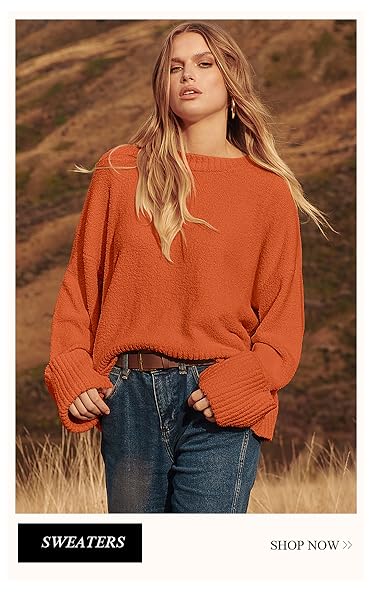 ANRABESS Women Oversized Sweaters Batwing Long Sleeve 2025 Fall Outfits Crewneck Casual Knit Side Slit Fashion Pullover Top(Bright Tan)