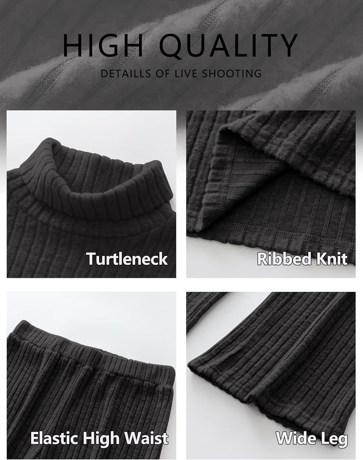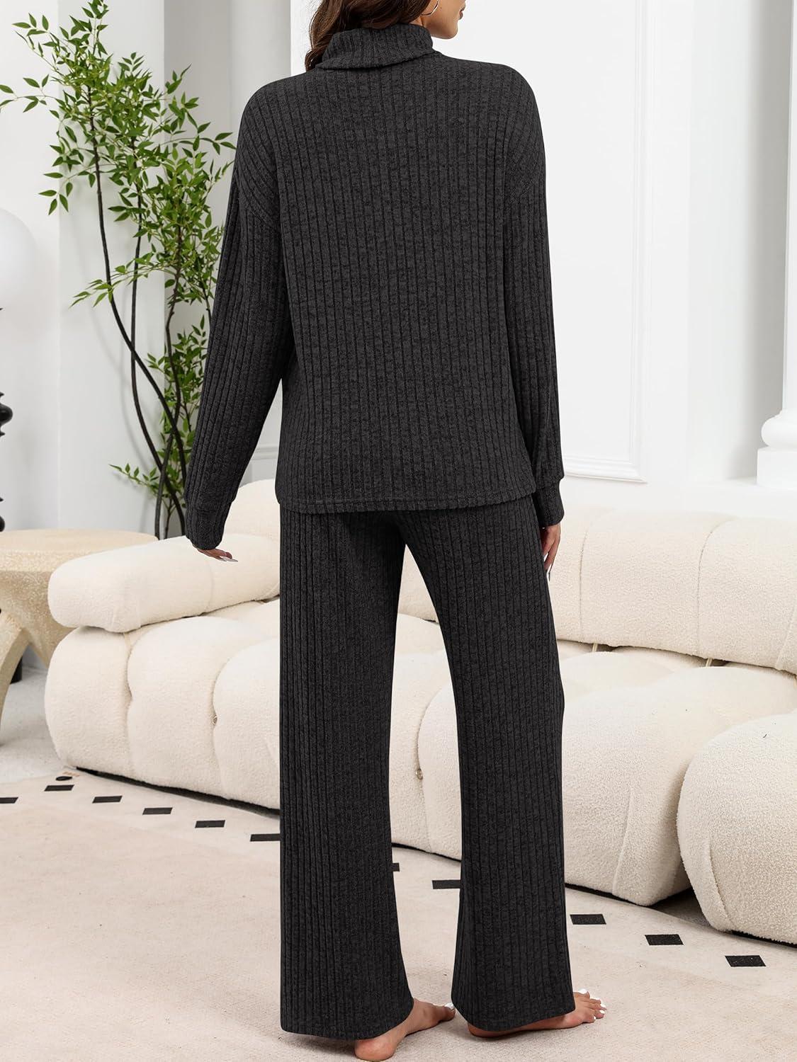 ANRABESS 2 Piece Lounge Sets for Women Turtleneck Pajama Knit Long Sleeve Tops Pants Matching Pj Set Casual 2025 Fall Clothes(Black)