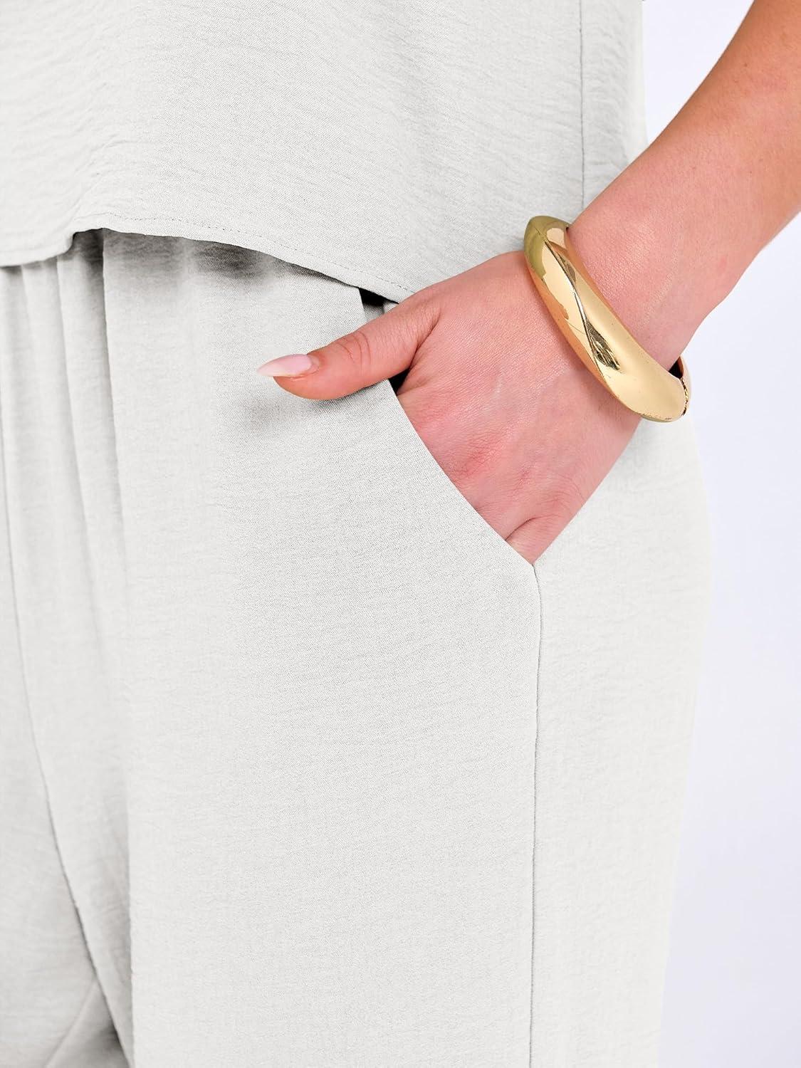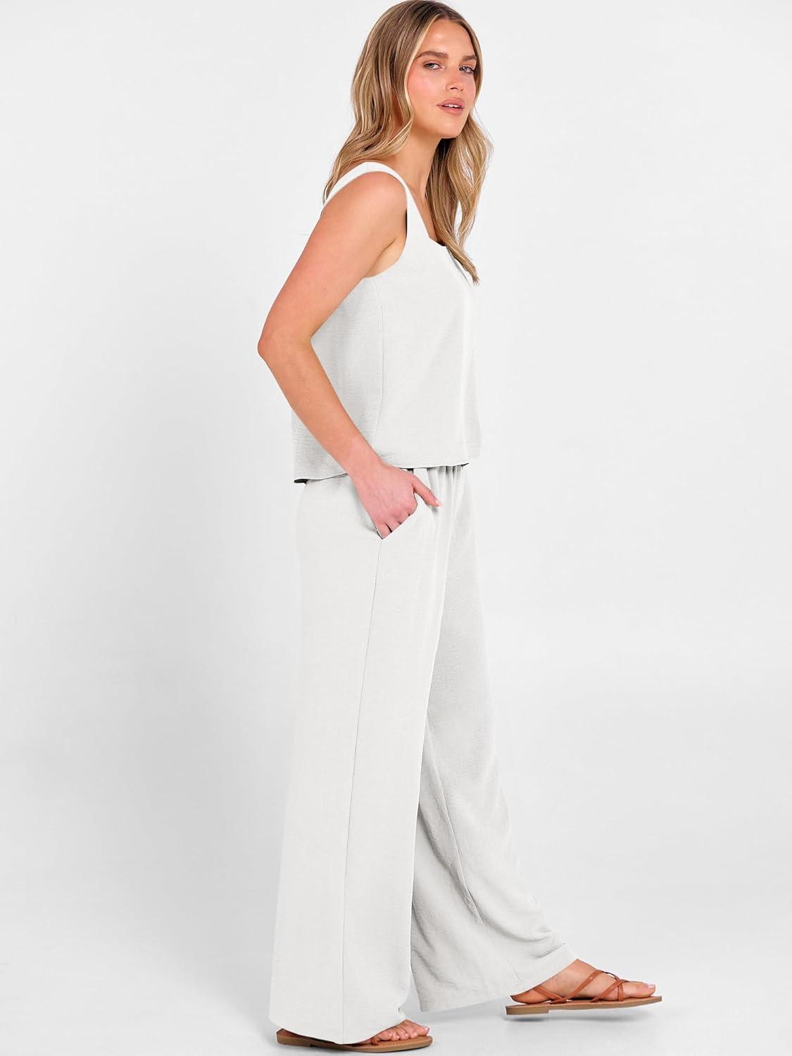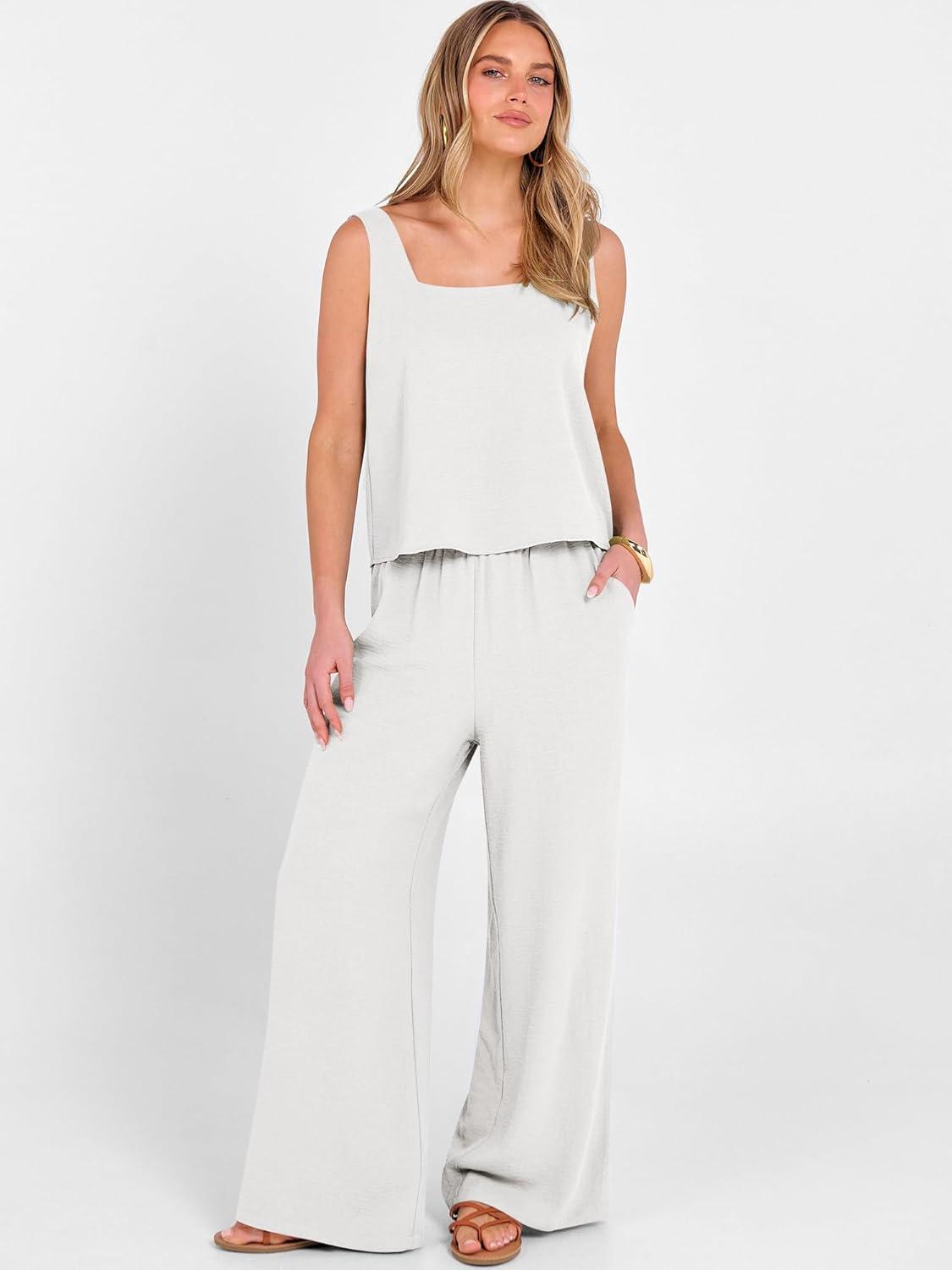 ANRABESS 2 Piece Sets for Women Outfits Lounge Matching Casual Travel Wide Leg Pants Crop Top Summer Vacation Beach Clothes(White)