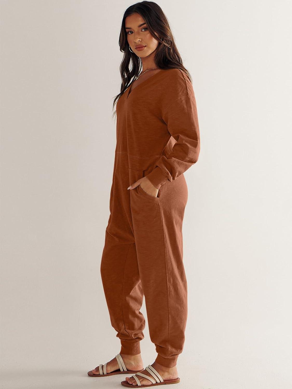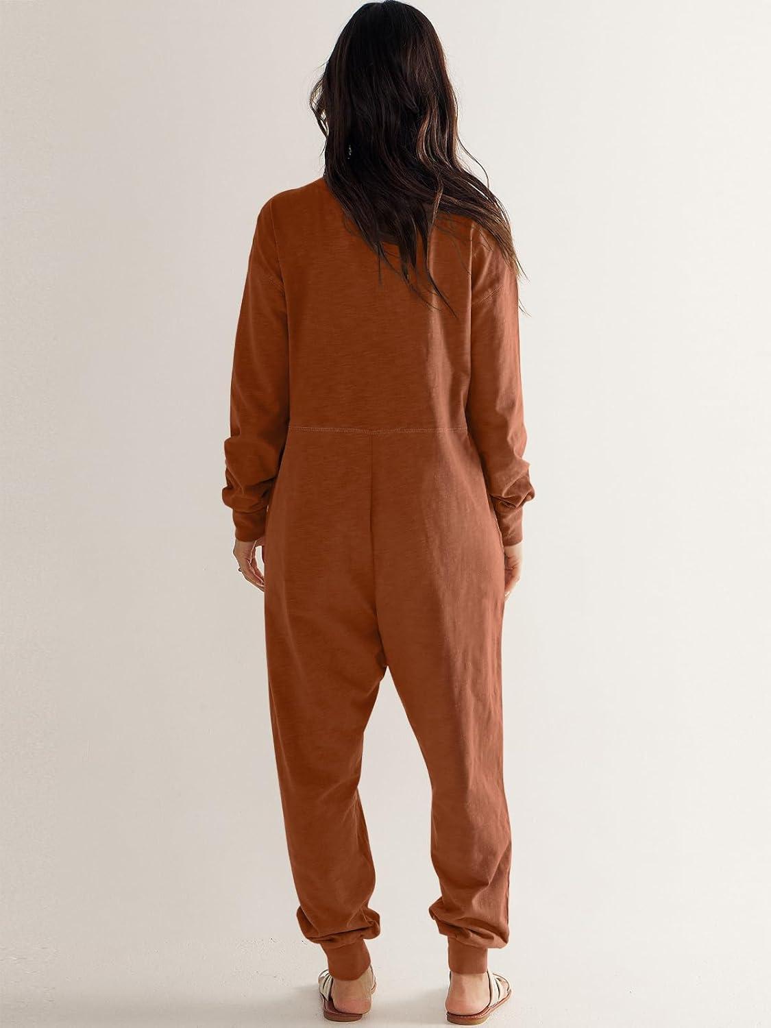 ANRABESS Jumpsuits for Women 2025 Fall Long Sleeve Casual Loose Fit Romper Lounge One Piece Pajamas Outfits Jumper(Burnt Orange)