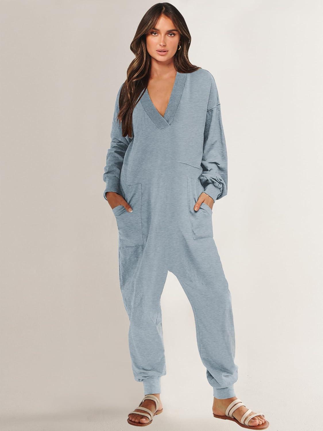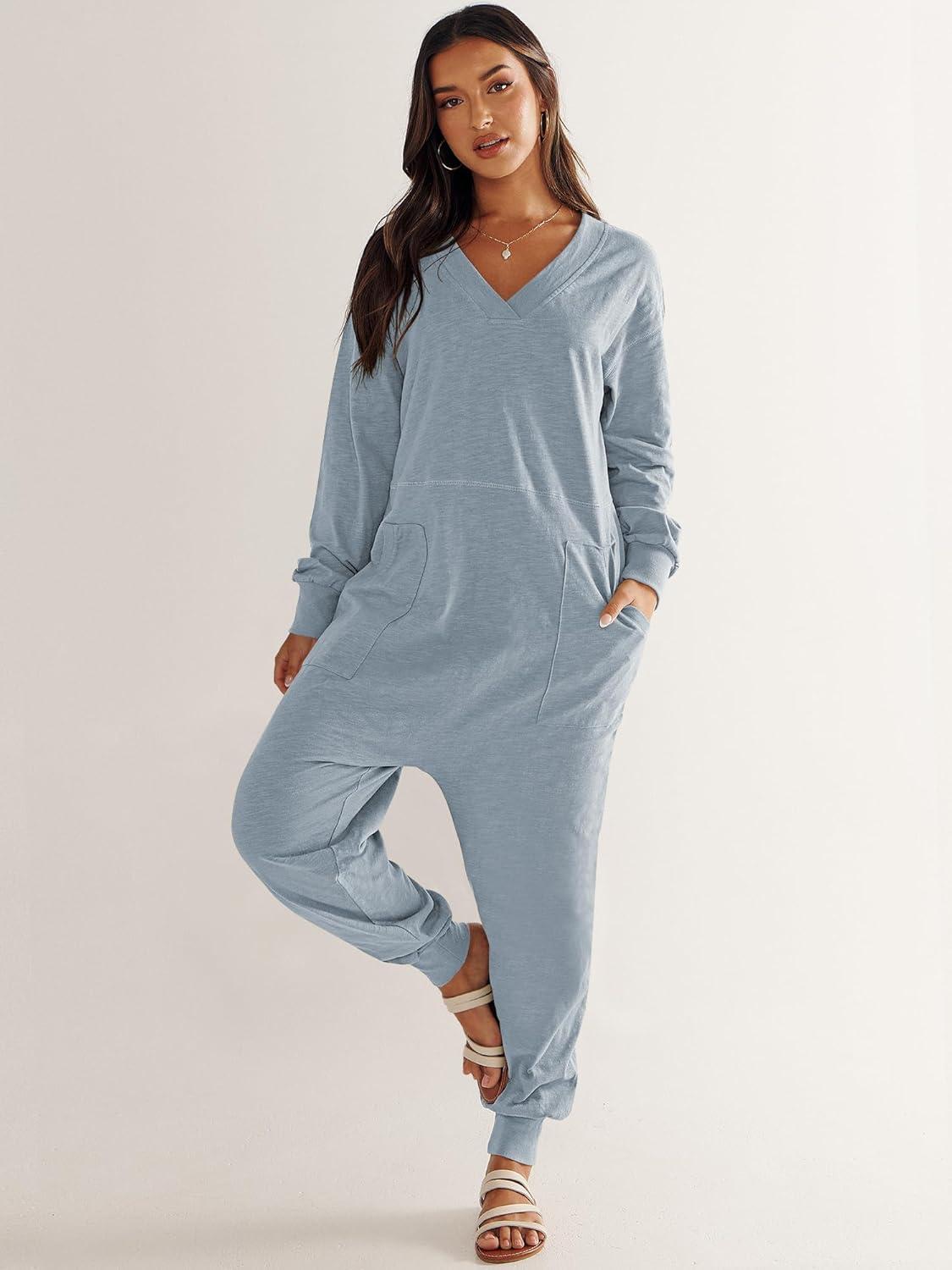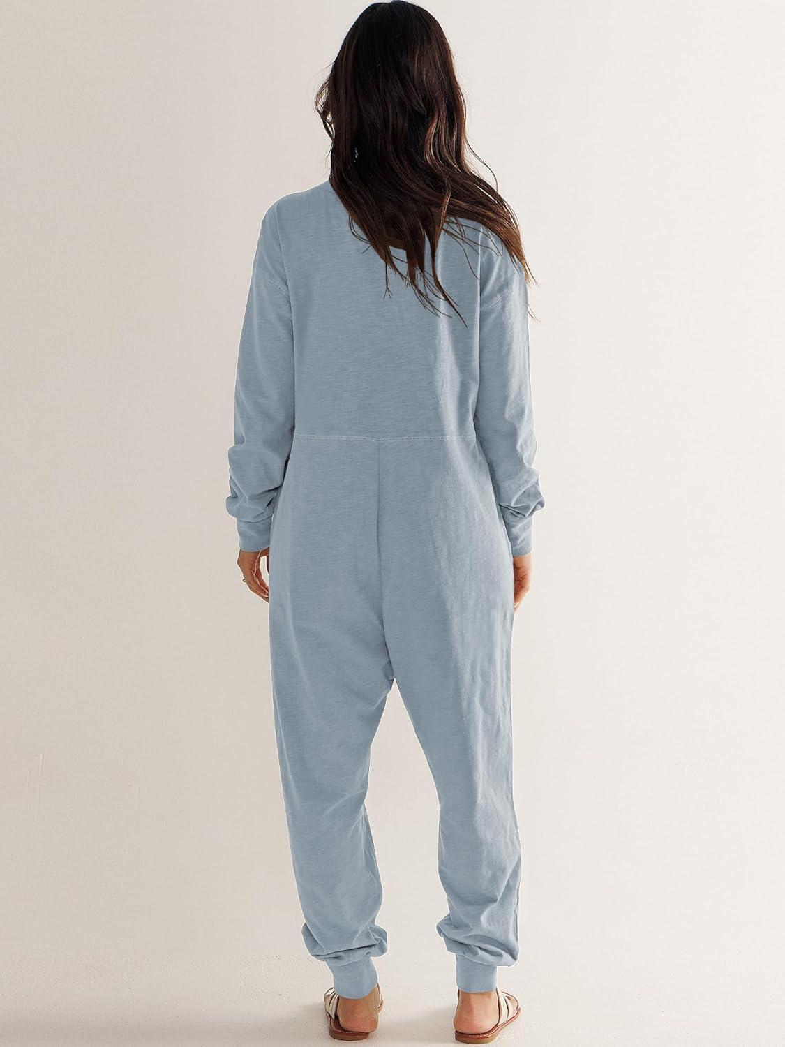 ANRABESS Jumpsuits for Women 2025 Fall Long Sleeve Casual Loose Fit Romper Lounge One Piece Pajamas Outfits Jumper(Sky)