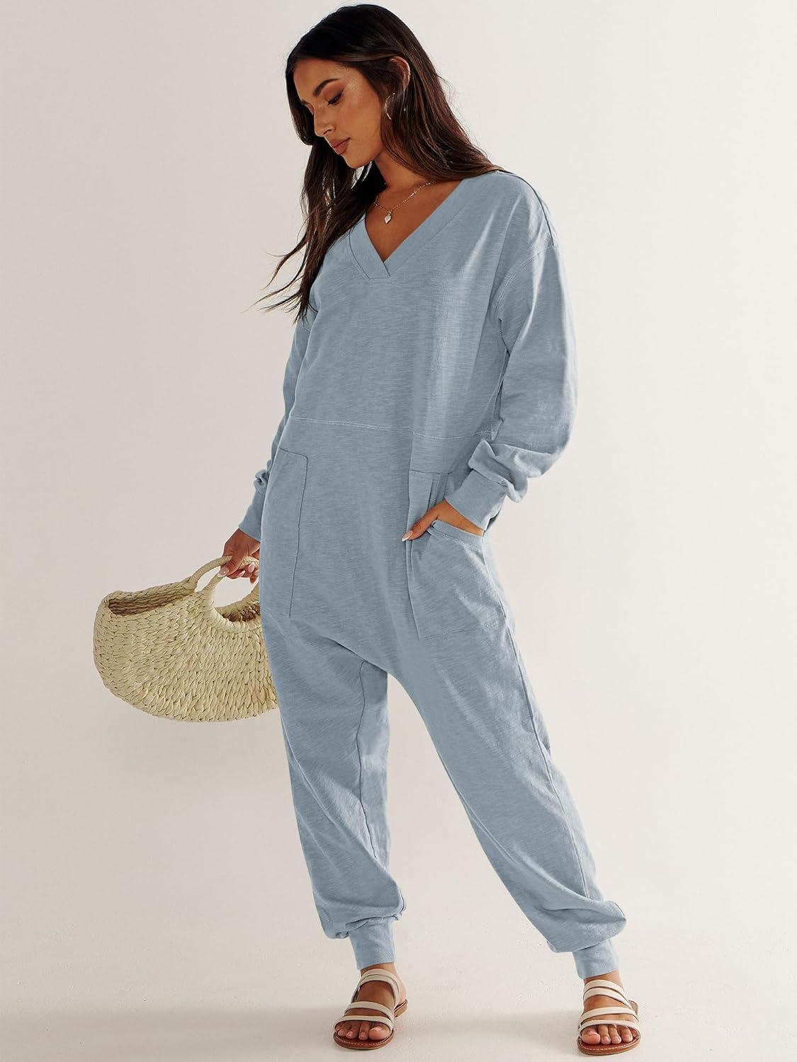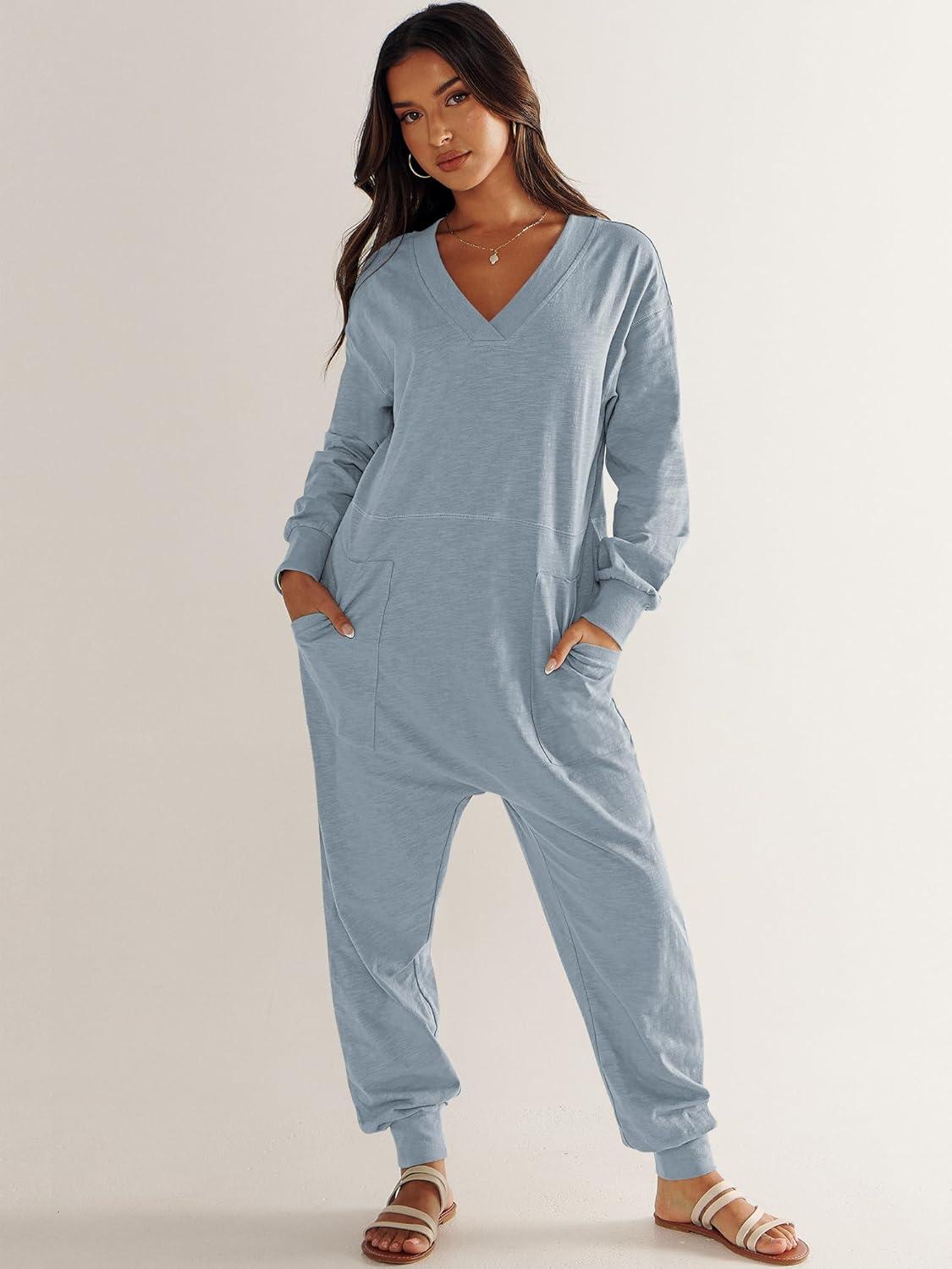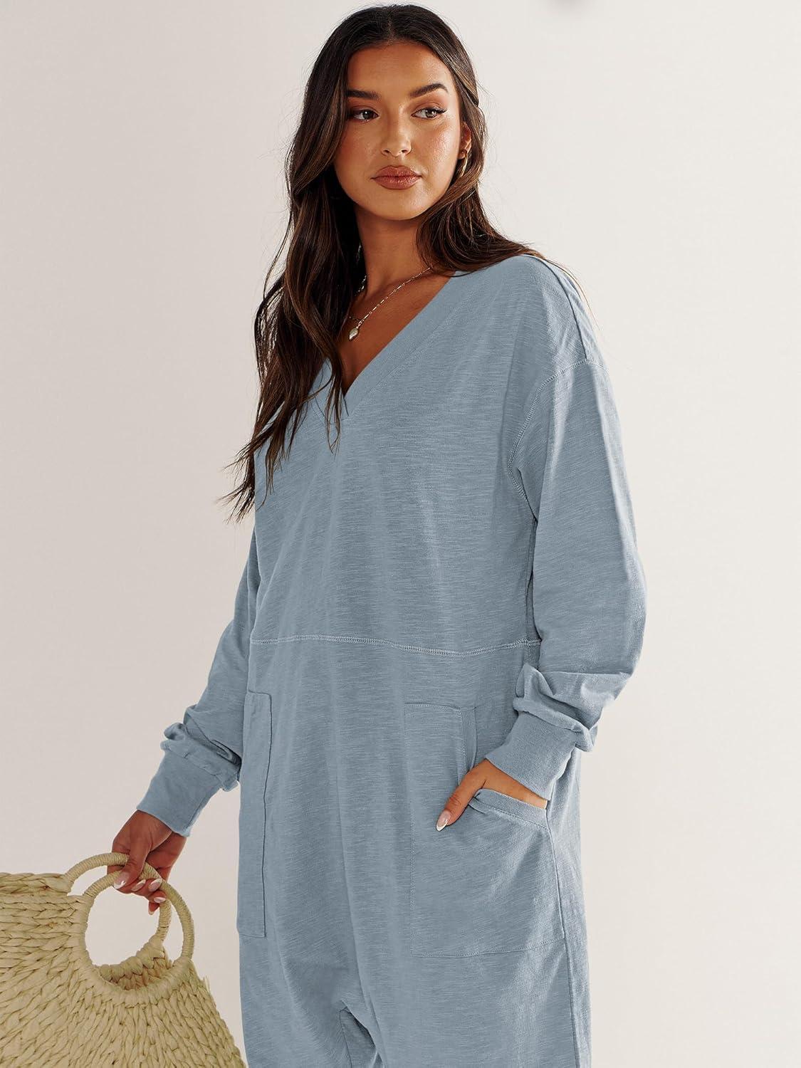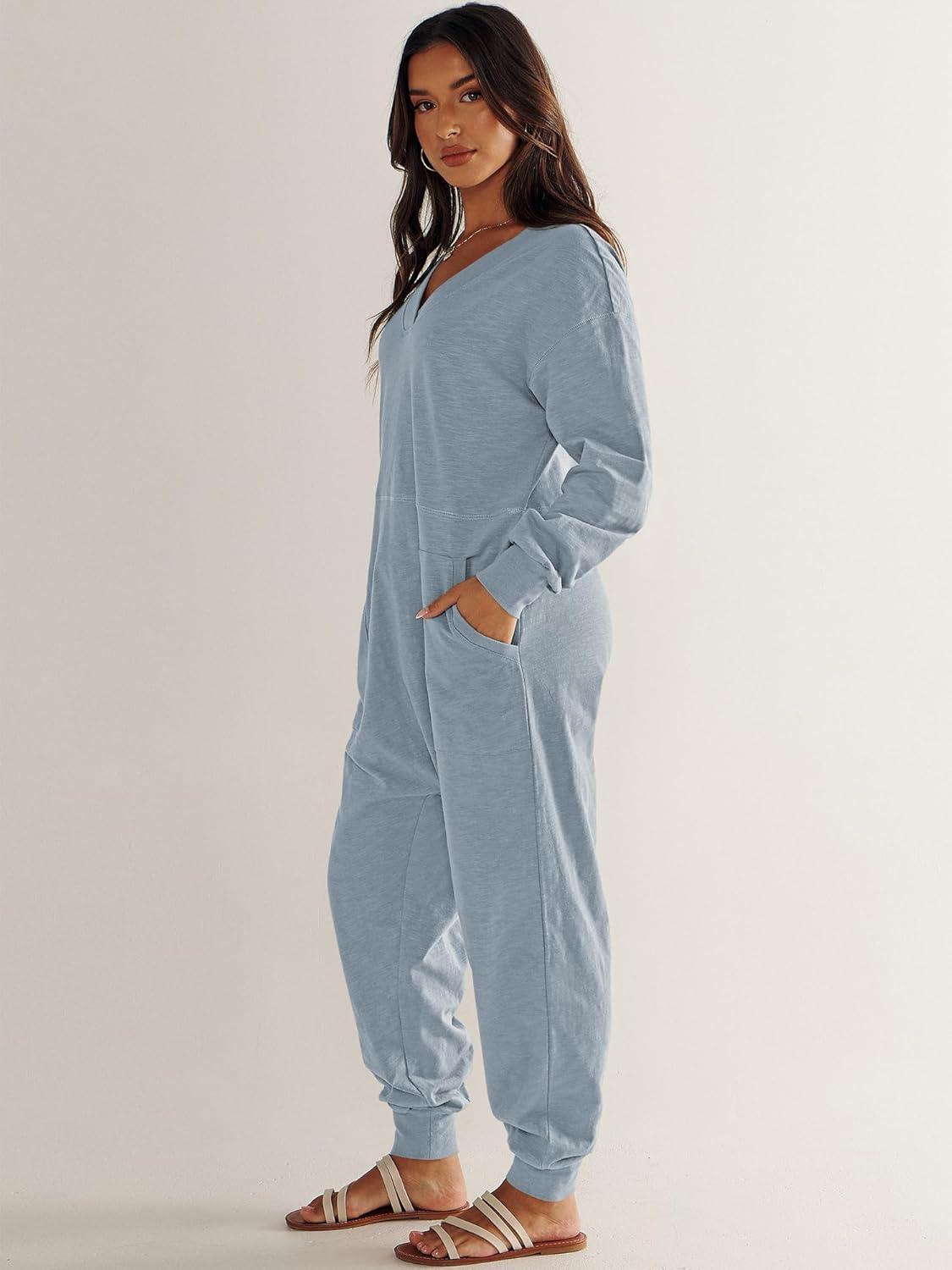 ANRABESS Jumpsuits for Women 2025 Fall Long Sleeve Casual Loose Fit Romper Lounge One Piece Pajamas Outfits Jumper(Sky)