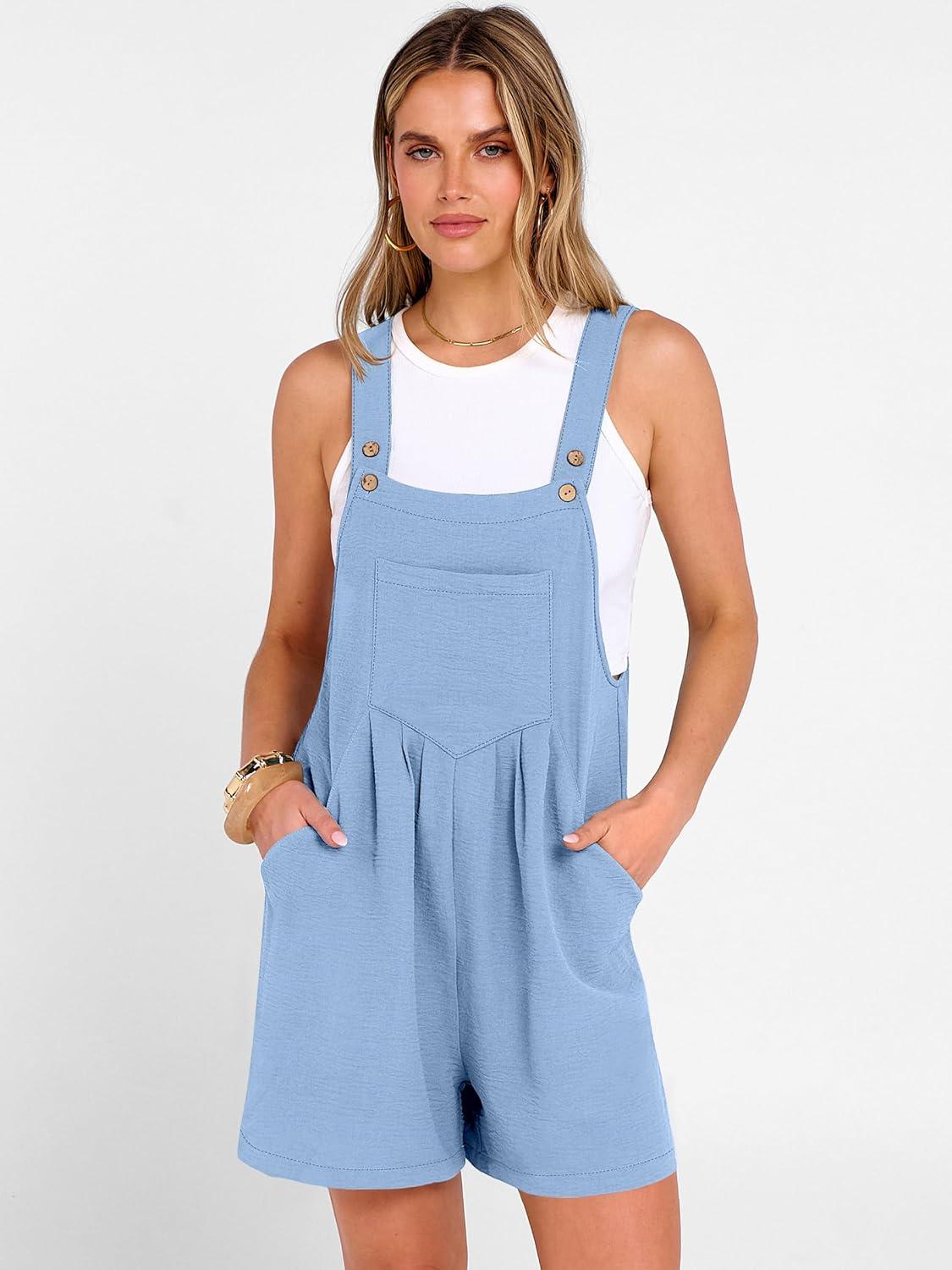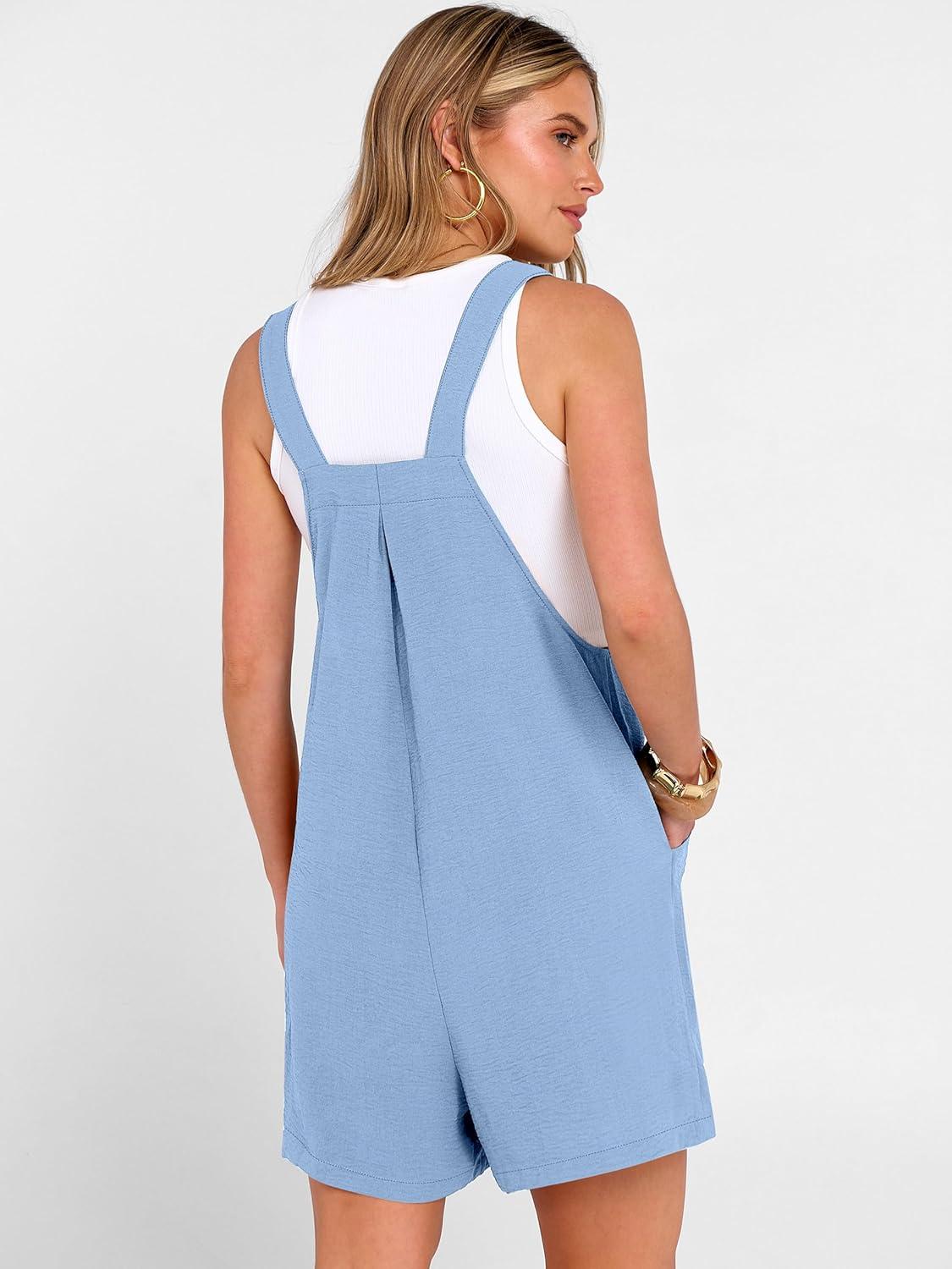 ANRABESS Jumpsuits For Women 2026 Summer Short Overalls Casual Sleeveless Adjustable Loose Rompers Beach Vacation Outfits(Bright Blue)