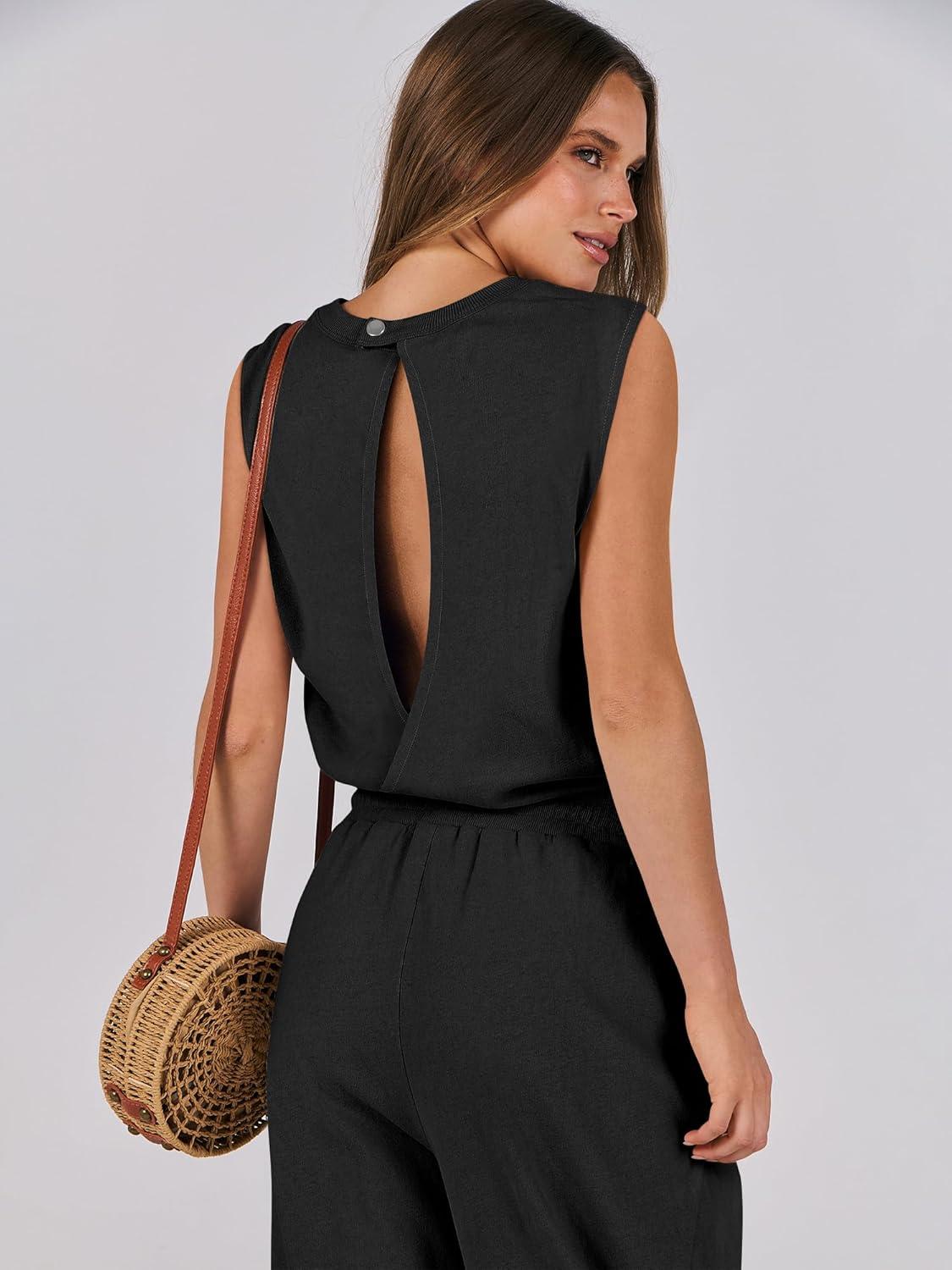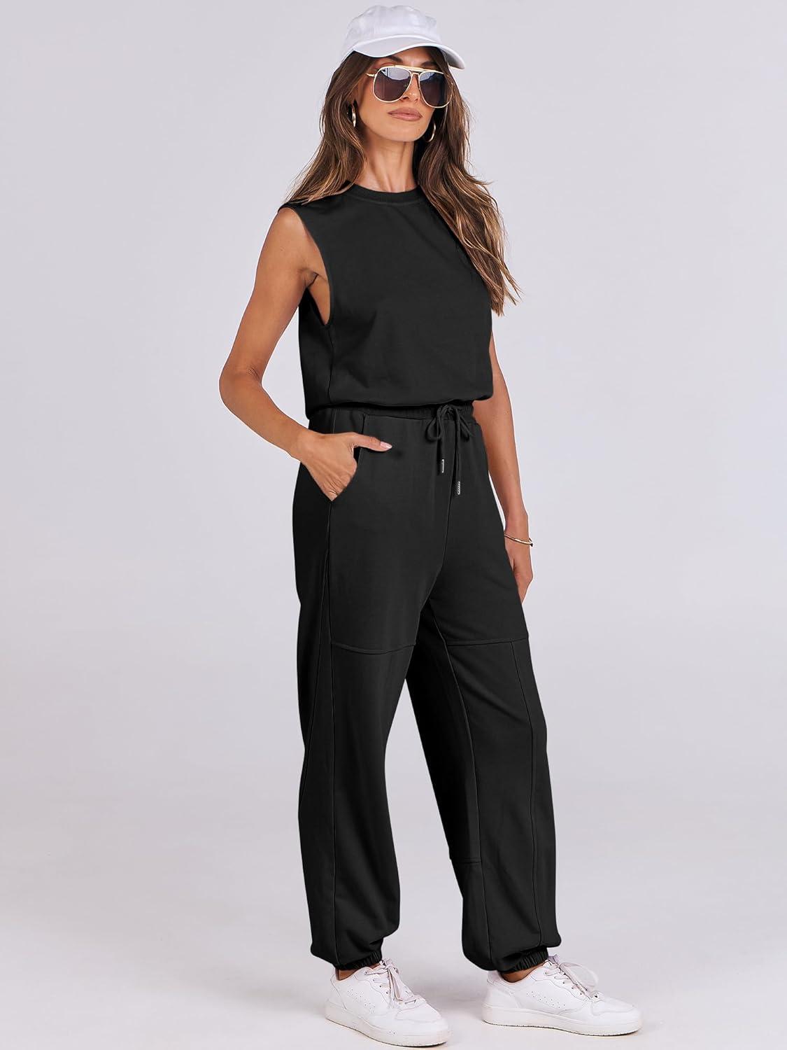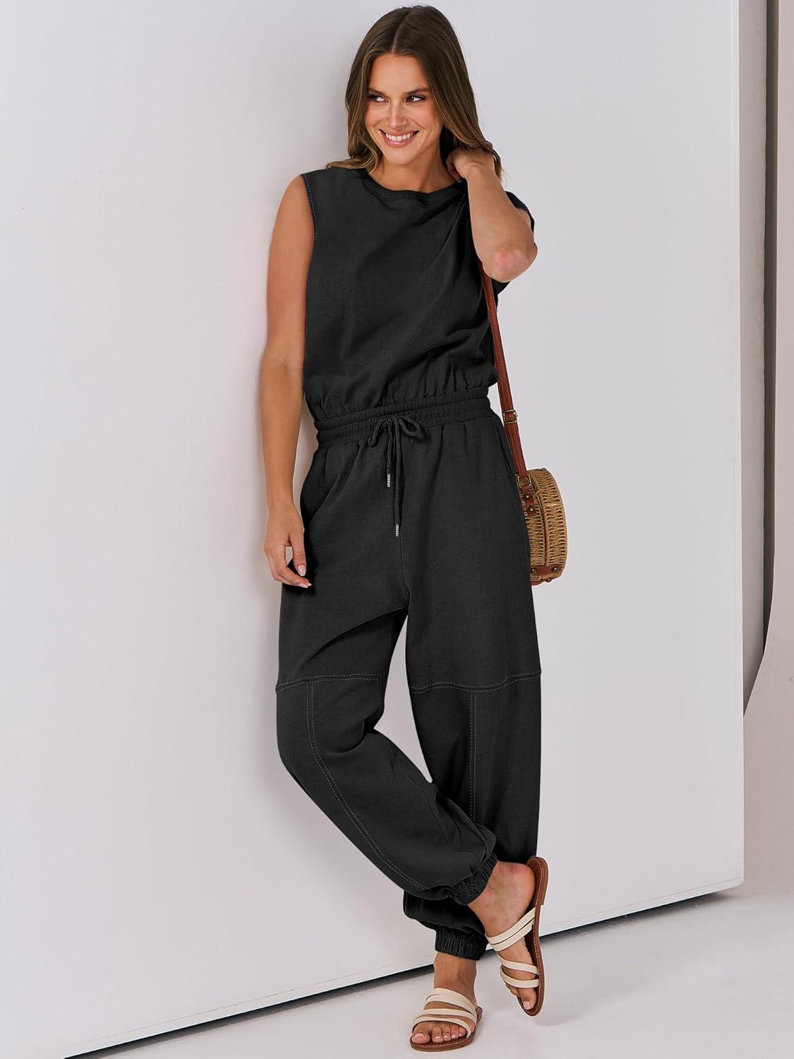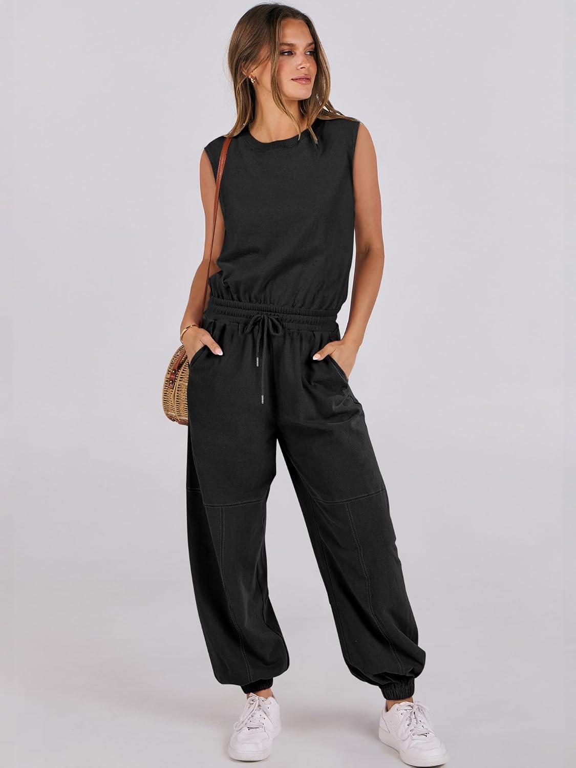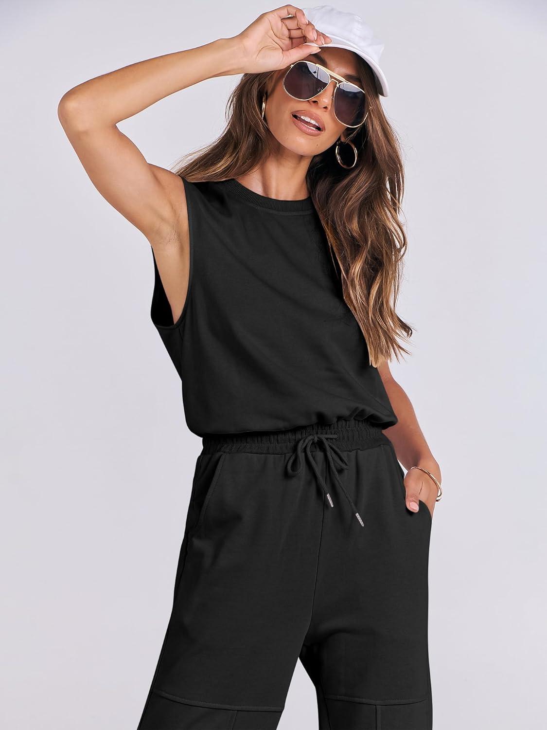 ANRABESS Jumpsuits for Women Casual Summer Sleeveless 2025 Romper One Piece Outfit Active Workout Lounge Jumpsuits Pockets(Black)