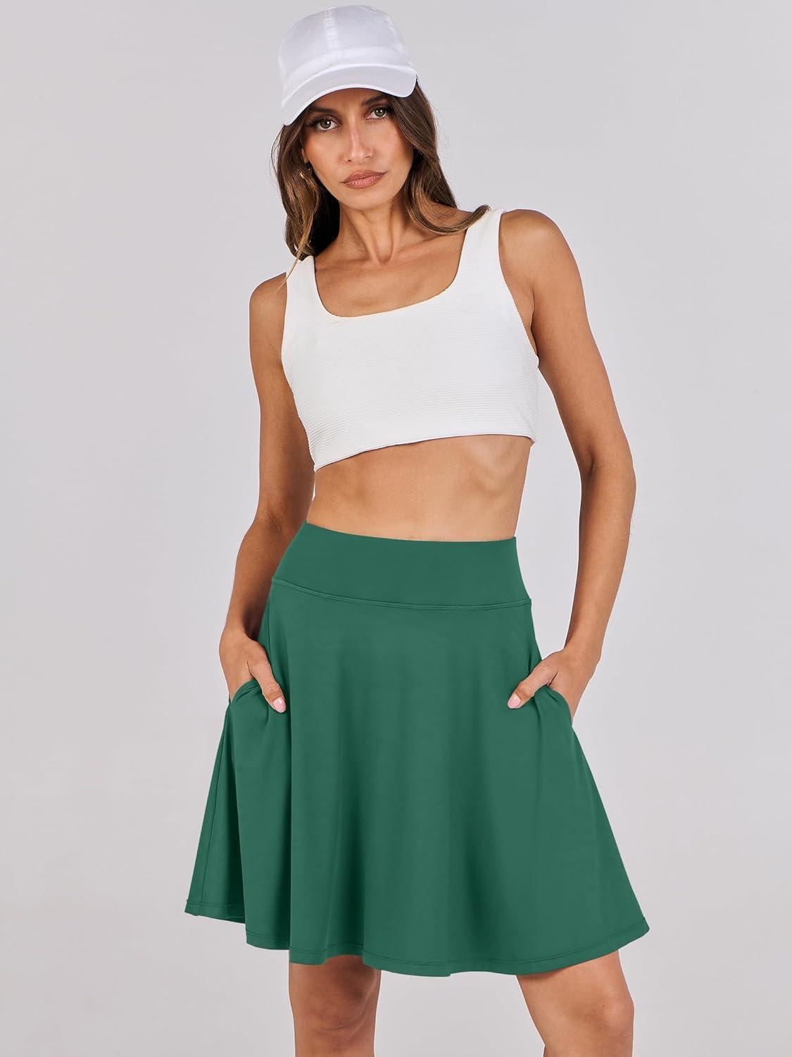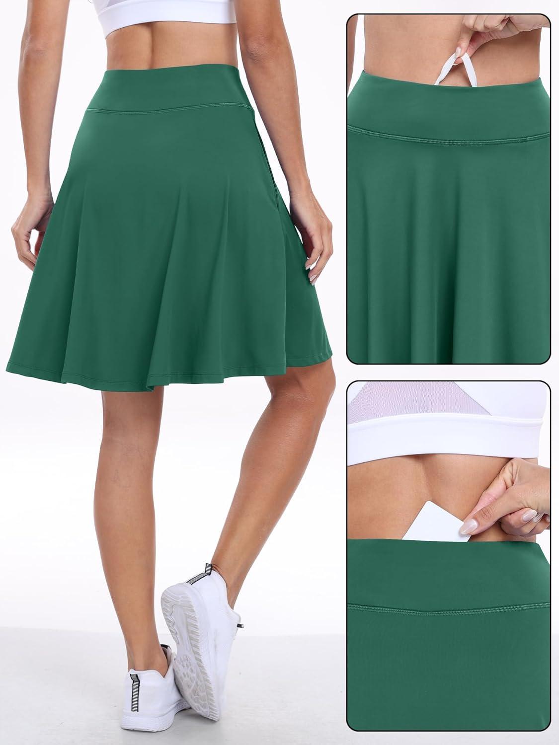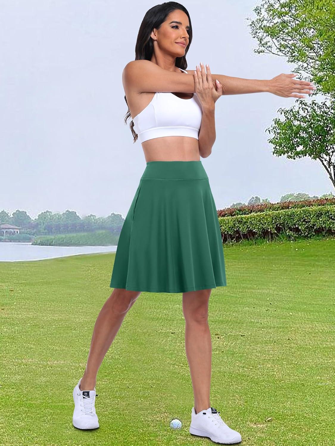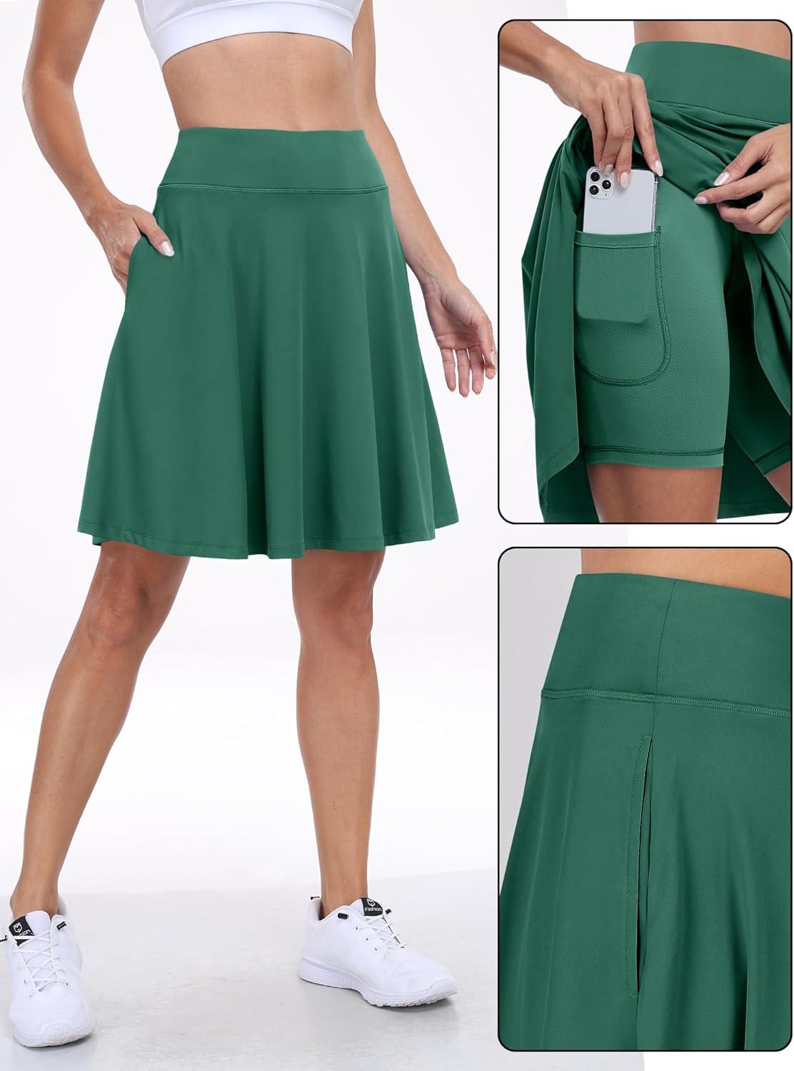 ANRABESS Knee Length Skorts Skirts for Women 2025 Summer High Waisted Golf Tennis Skirt Casual Travel Built-in Shorts Clothes(Deep Green)