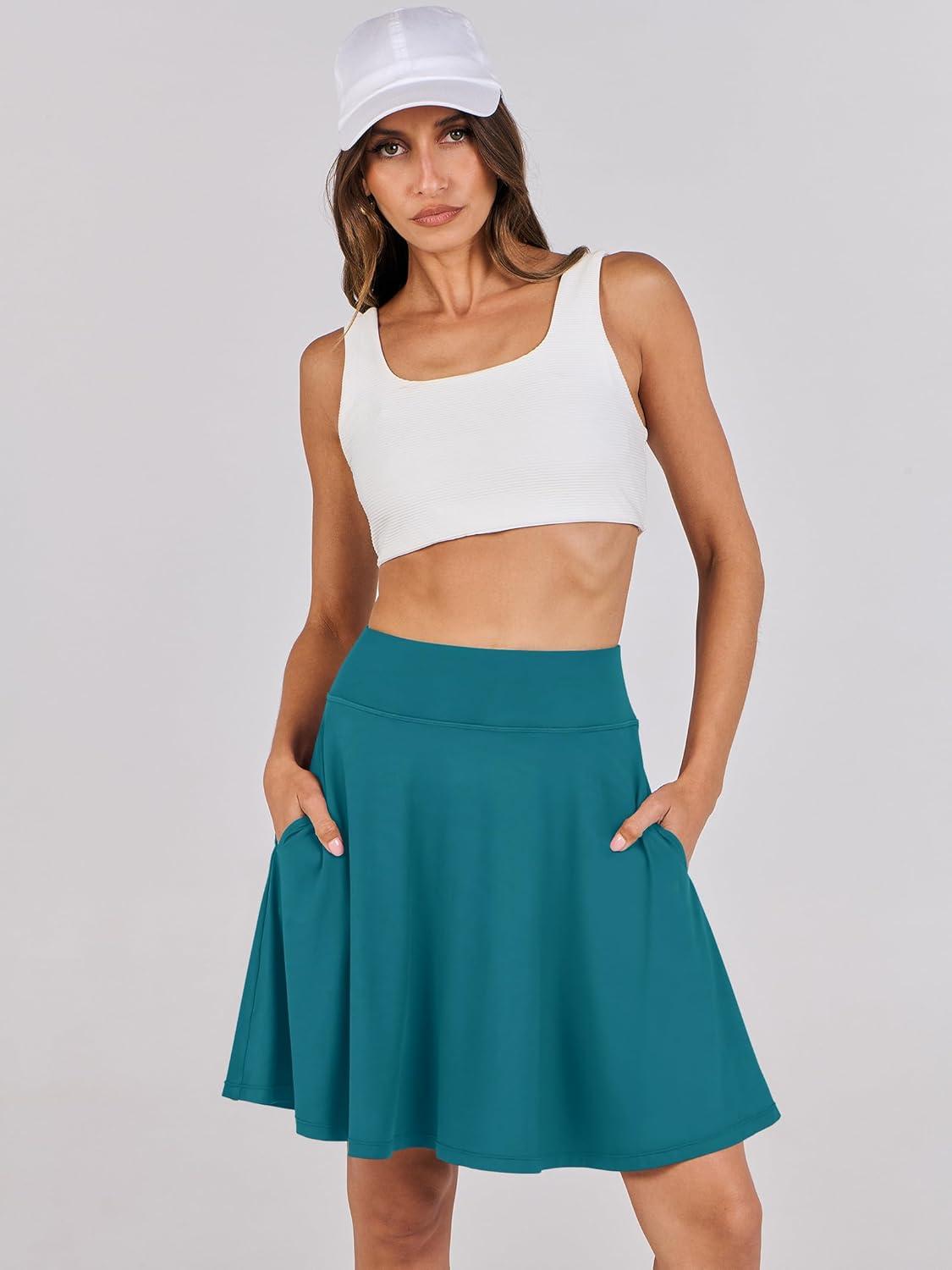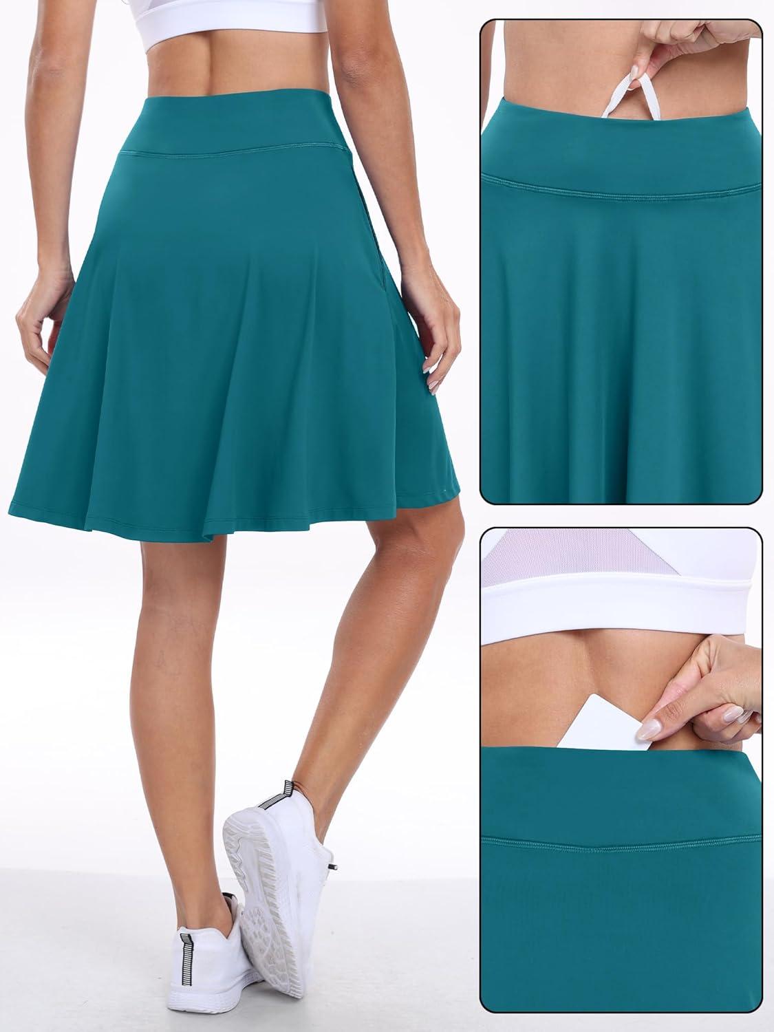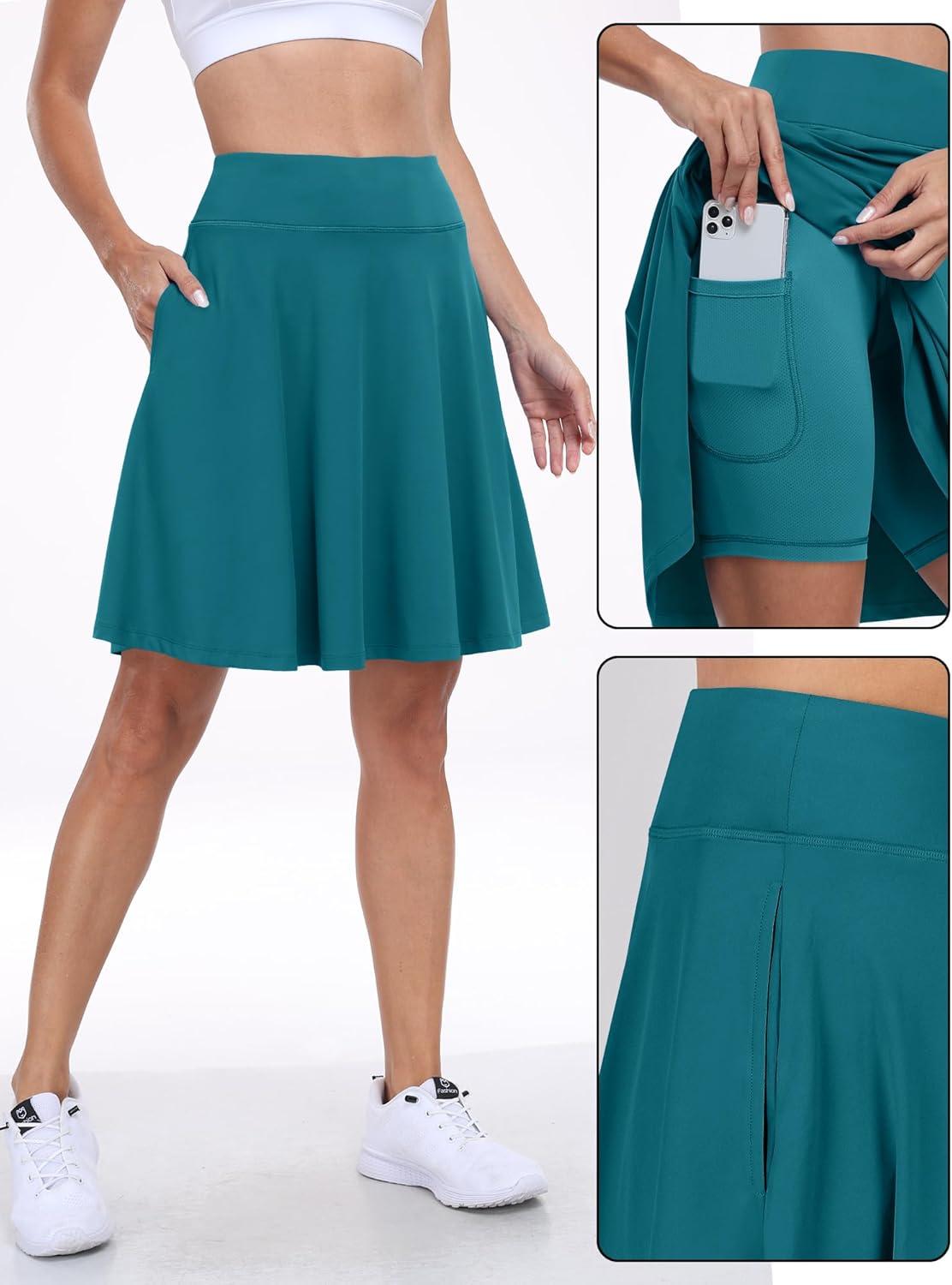 ANRABESS Knee Length Skorts Skirts for Women 2025 Summer High Waisted Golf Tennis Skirt Casual Travel Built-in Shorts Clothes(Lake Green)
