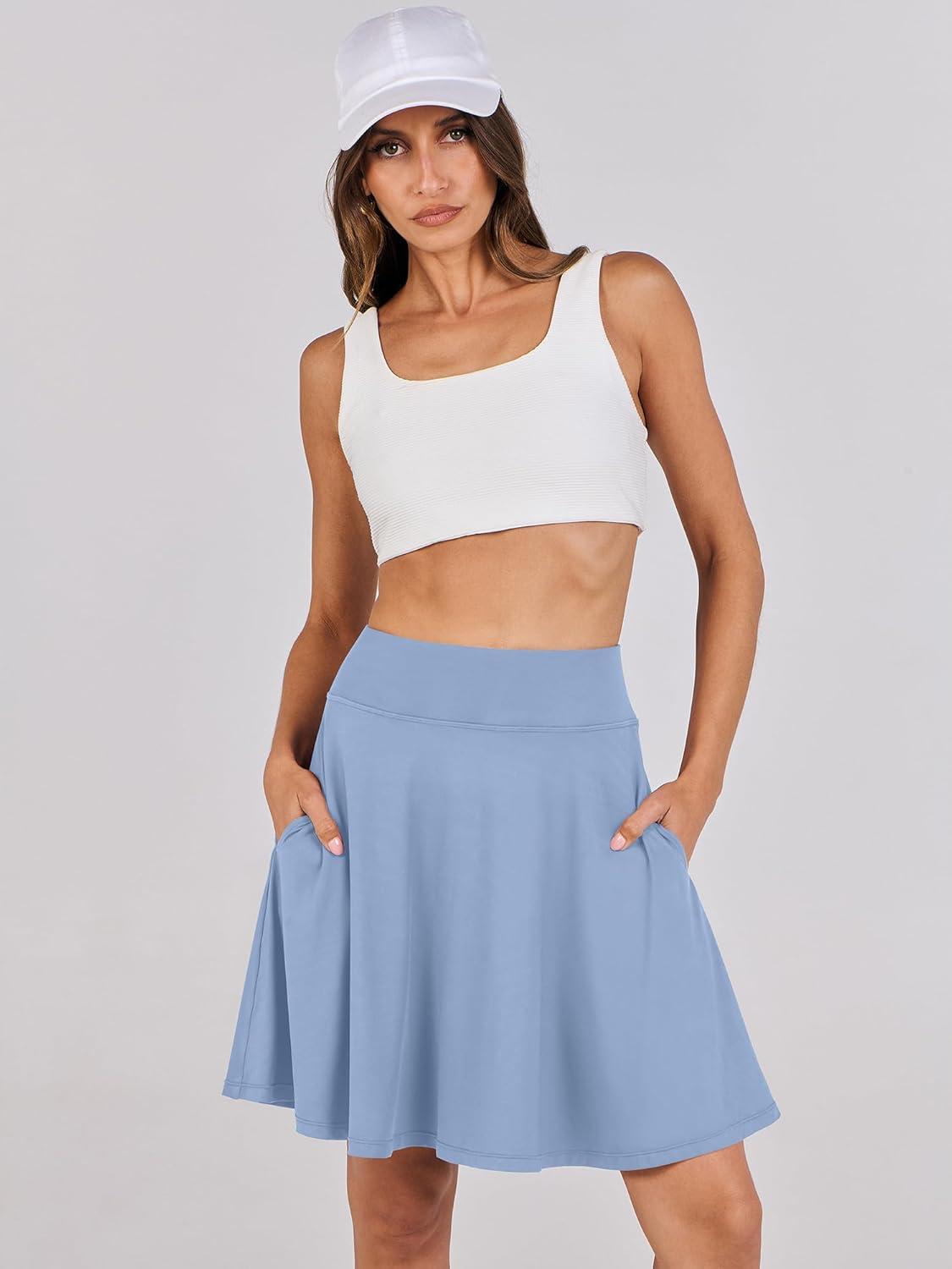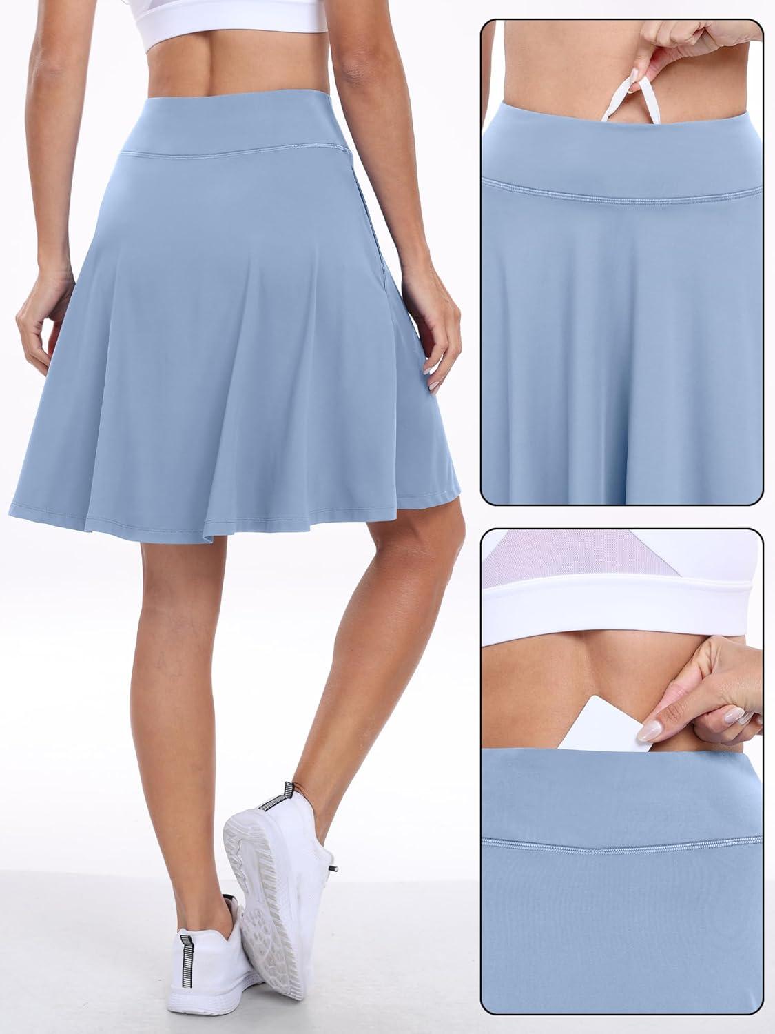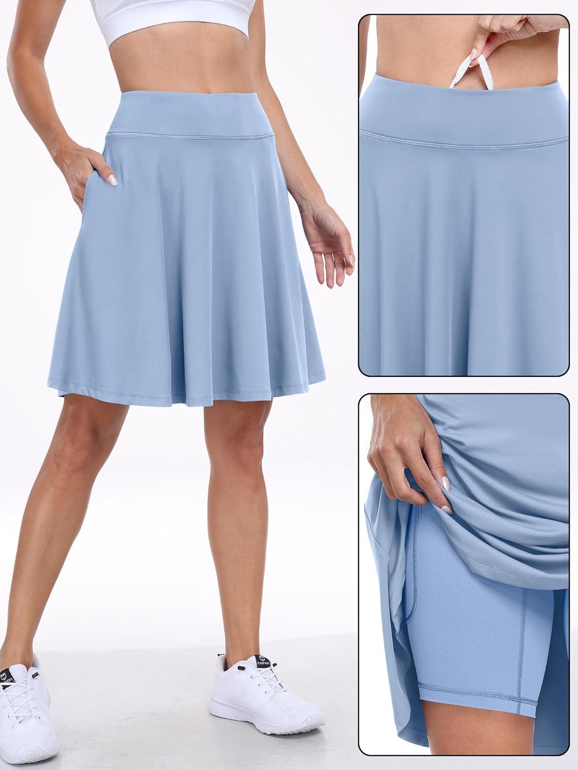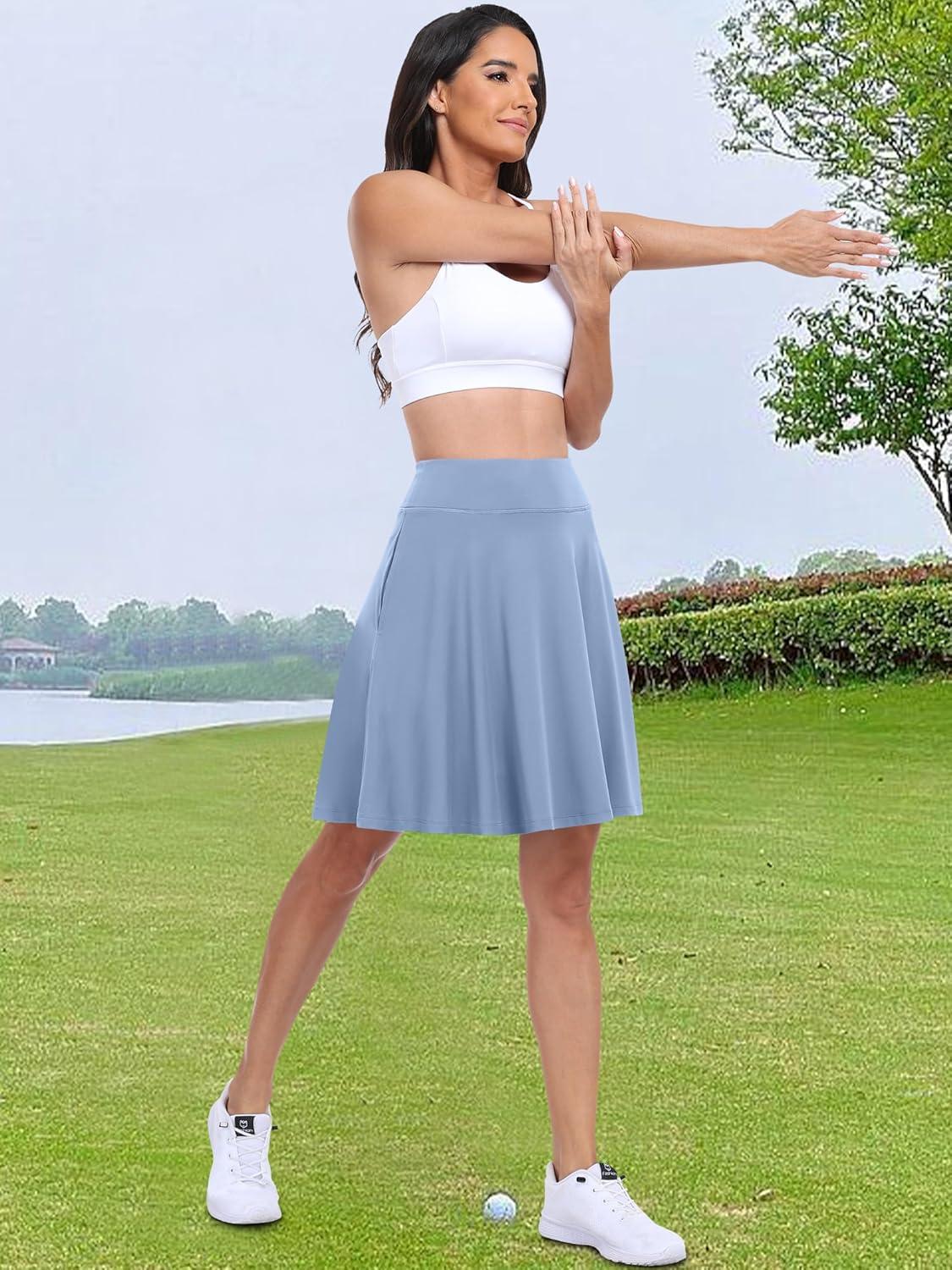 ANRABESS Knee Length Skorts Skirts for Women 2025 Summer High Waisted Golf Tennis Skirt Casual Travel Built-in Shorts Clothes(Light Blue)