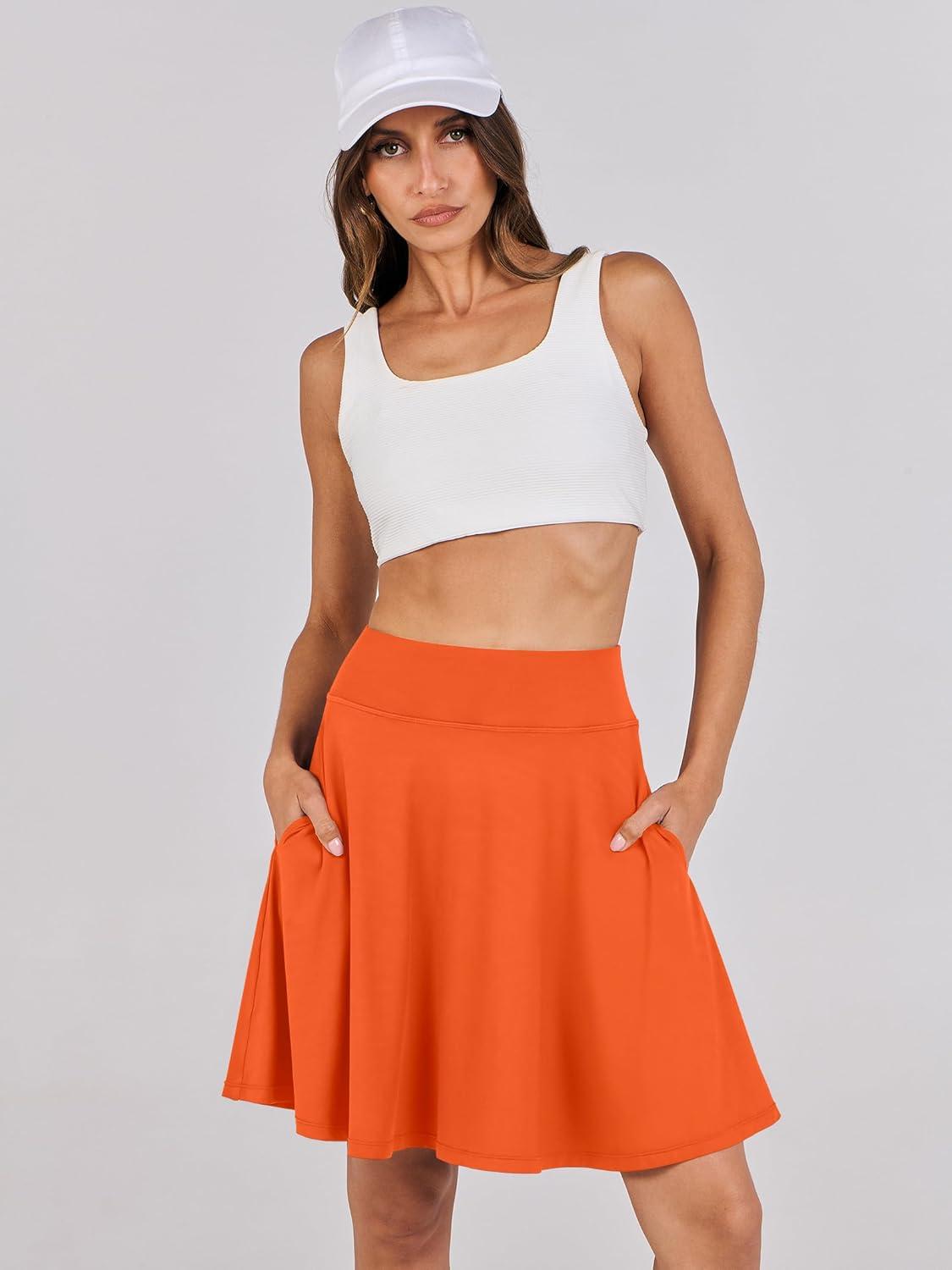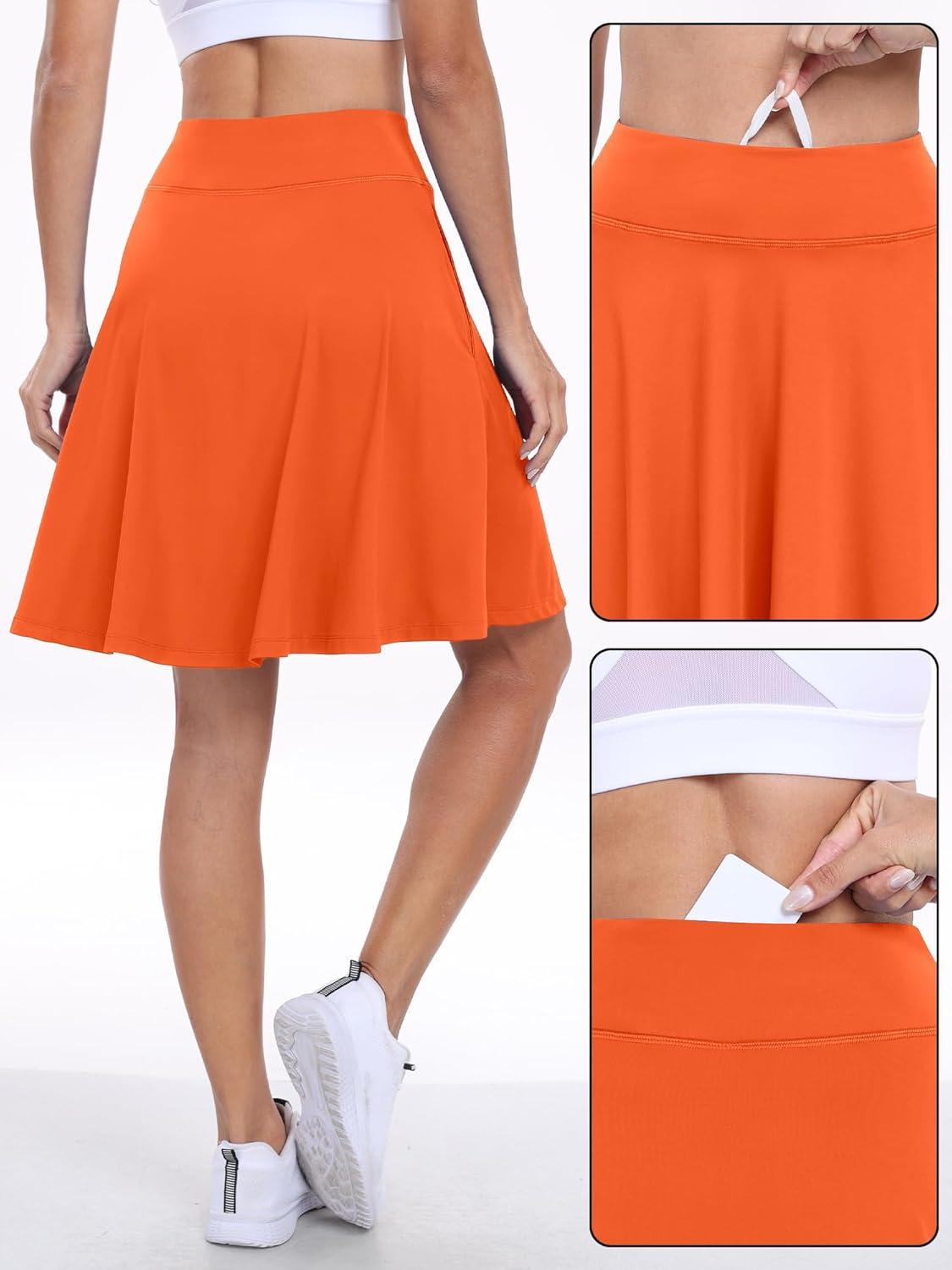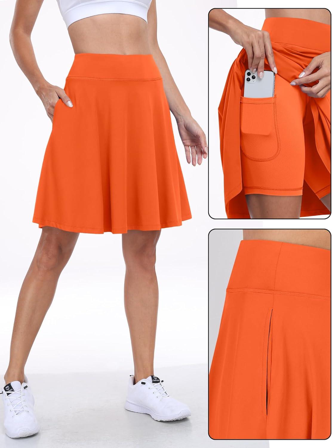 ANRABESS Knee Length Skorts Skirts for Women 2025 Summer High Waisted Golf Tennis Skirt Casual Travel Built-in Shorts Clothes(Orange)
