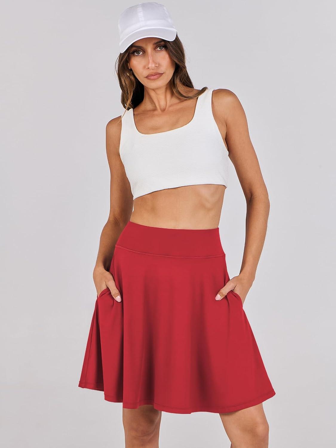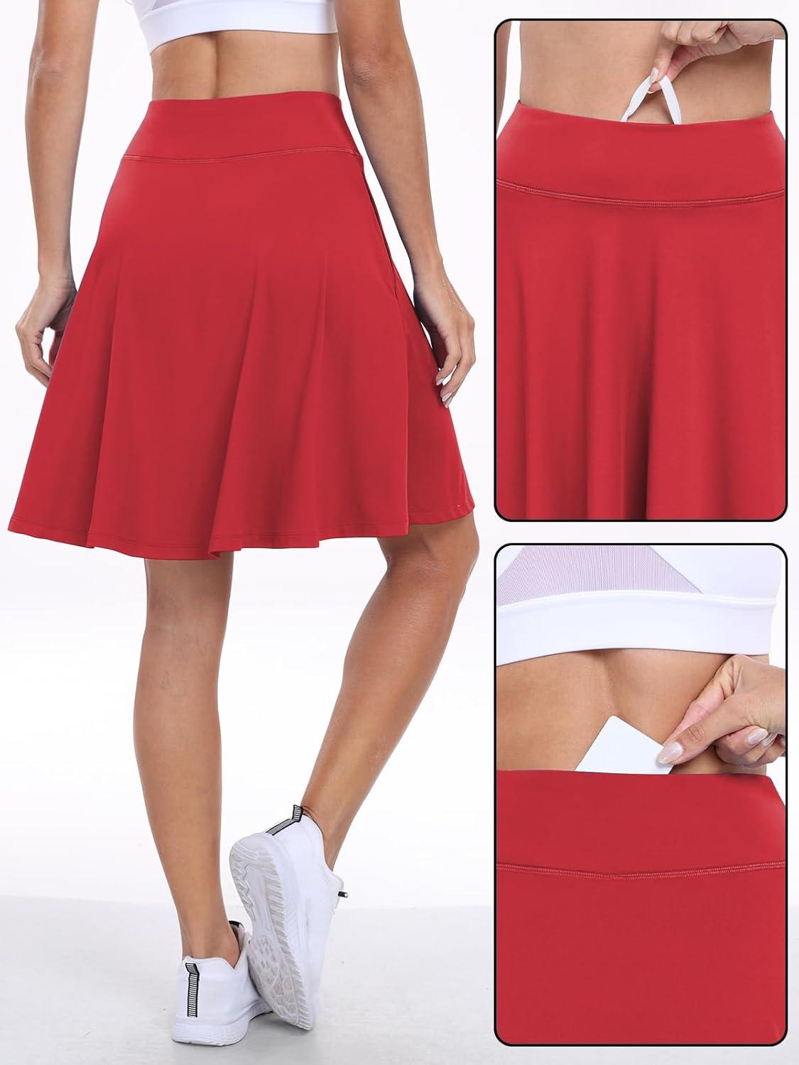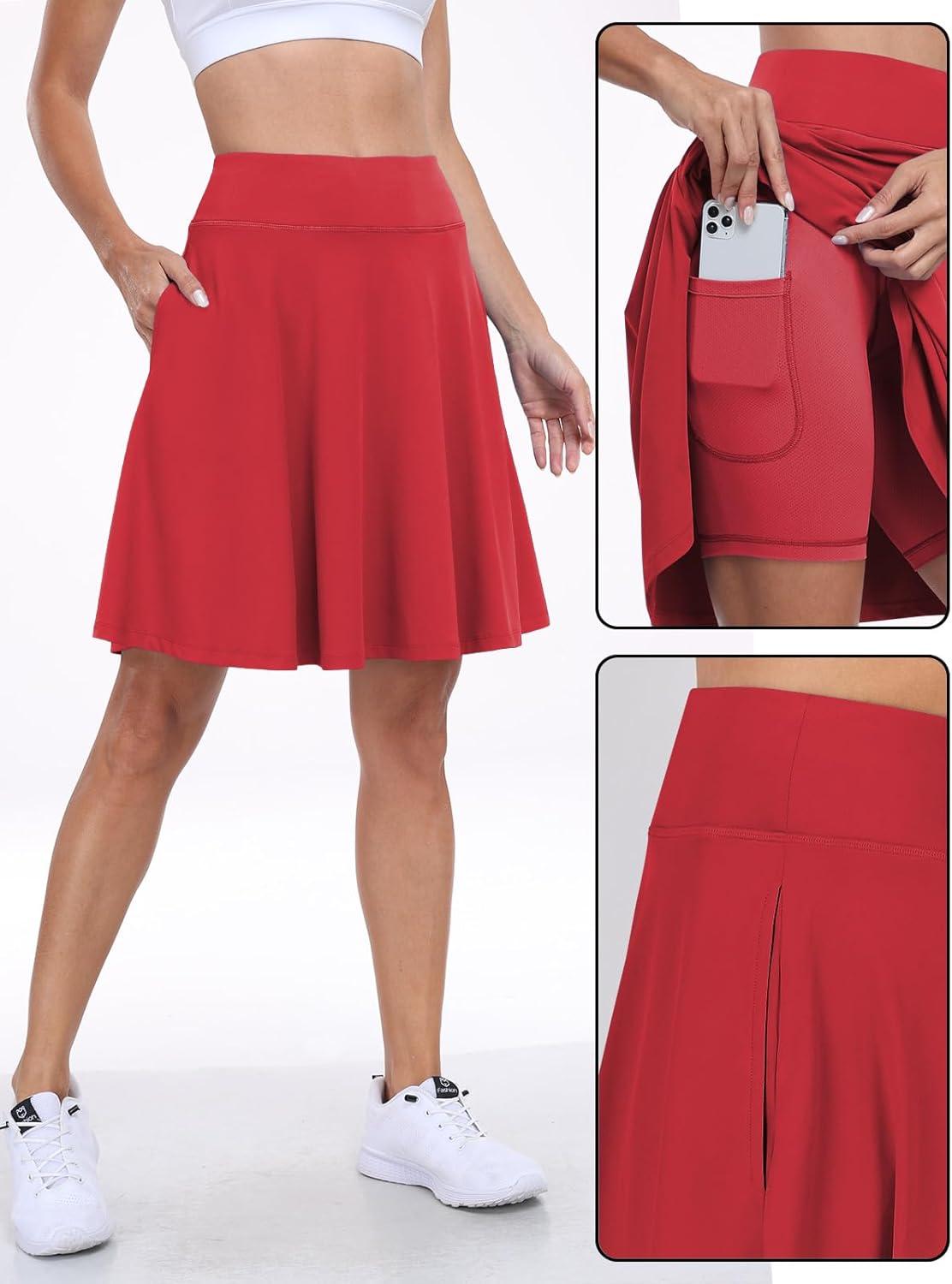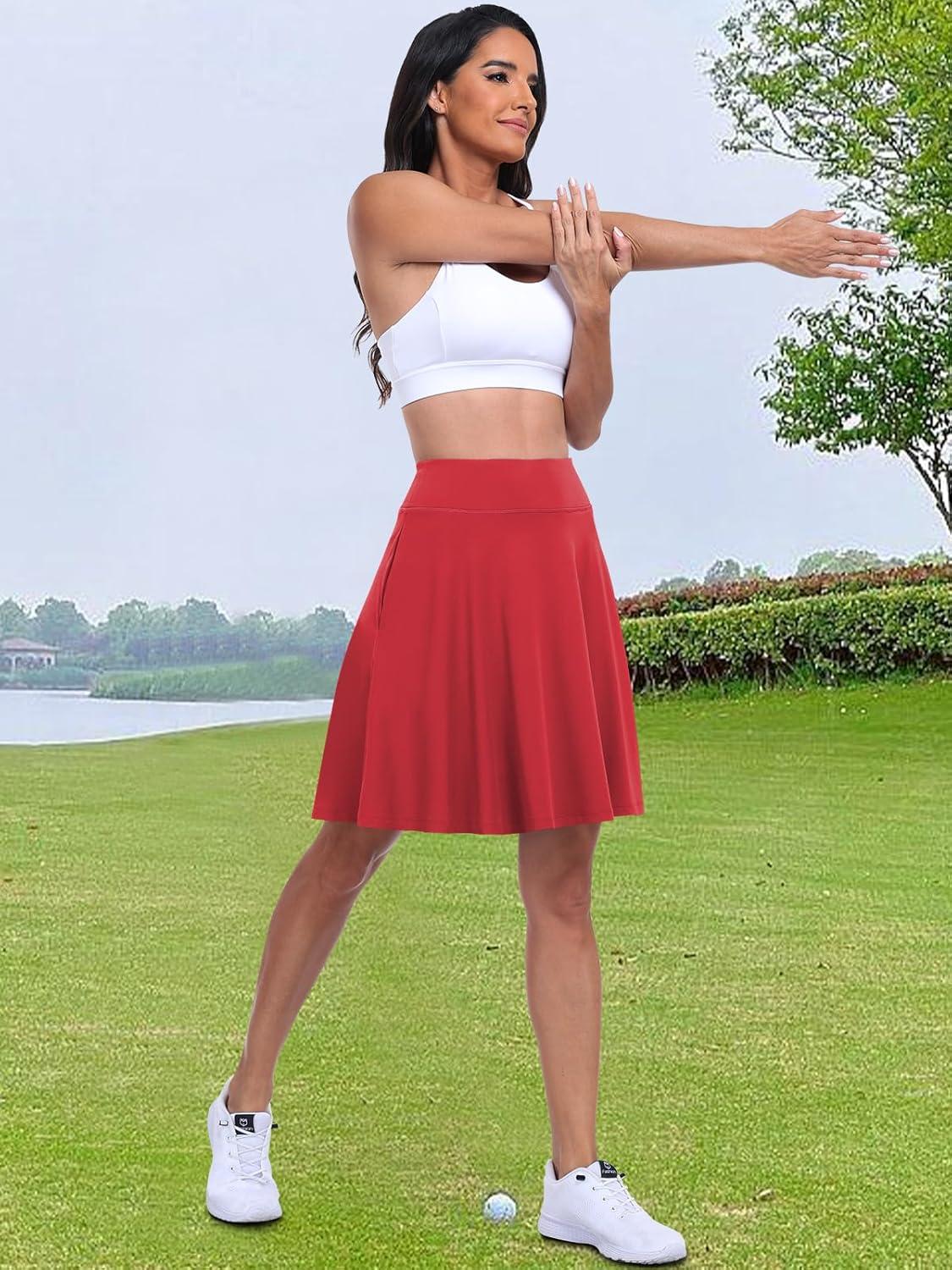 ANRABESS Knee Length Skorts Skirts for Women 2025 Summer High Waisted Golf Tennis Skirt Casual Travel Built-in Shorts Clothes(Red)