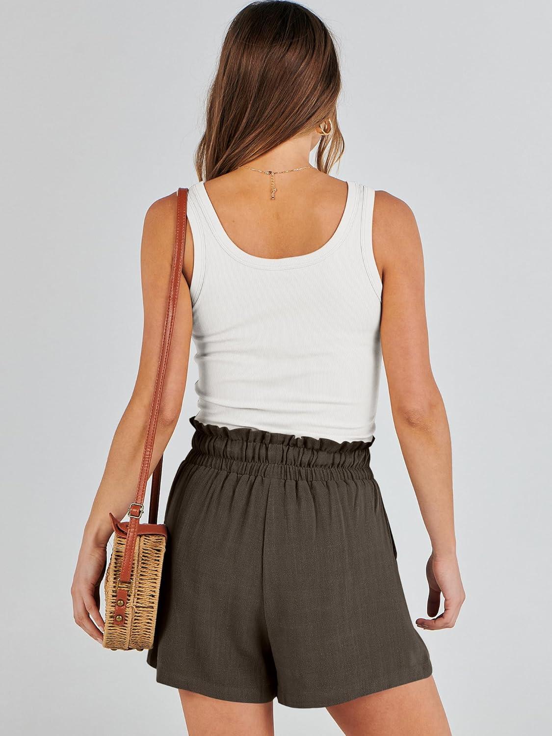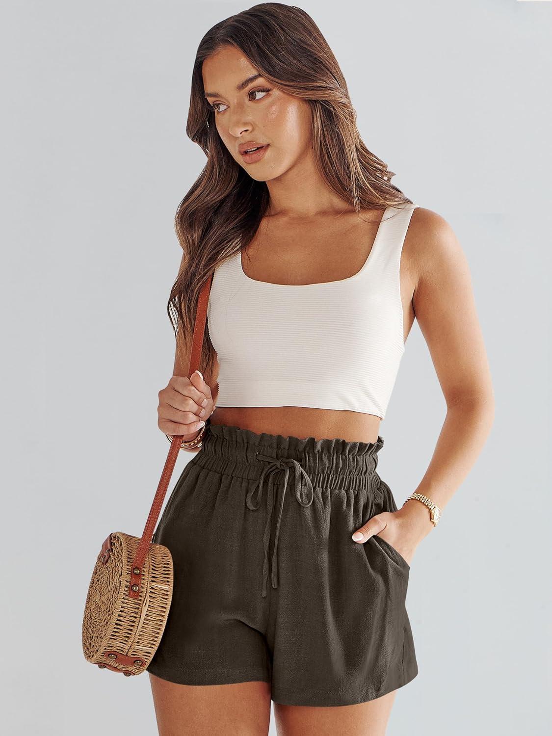 ANRABESS Linen Shorts for Women Summer Casual Wide Leg Loose High Waist Drawstring Dressy Beach Shorts 2025 Comfy Clothes(Coffee)