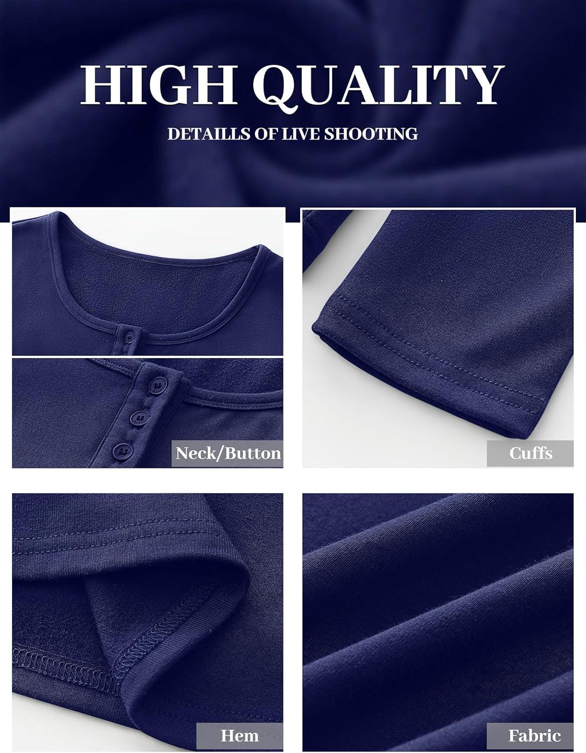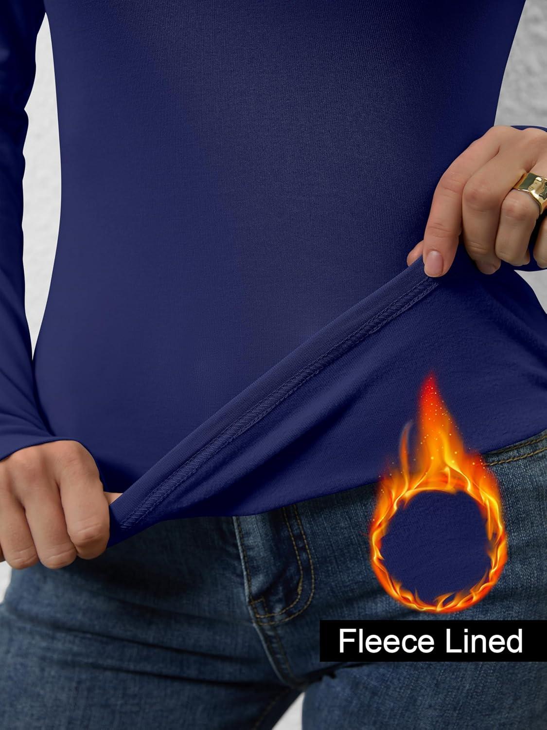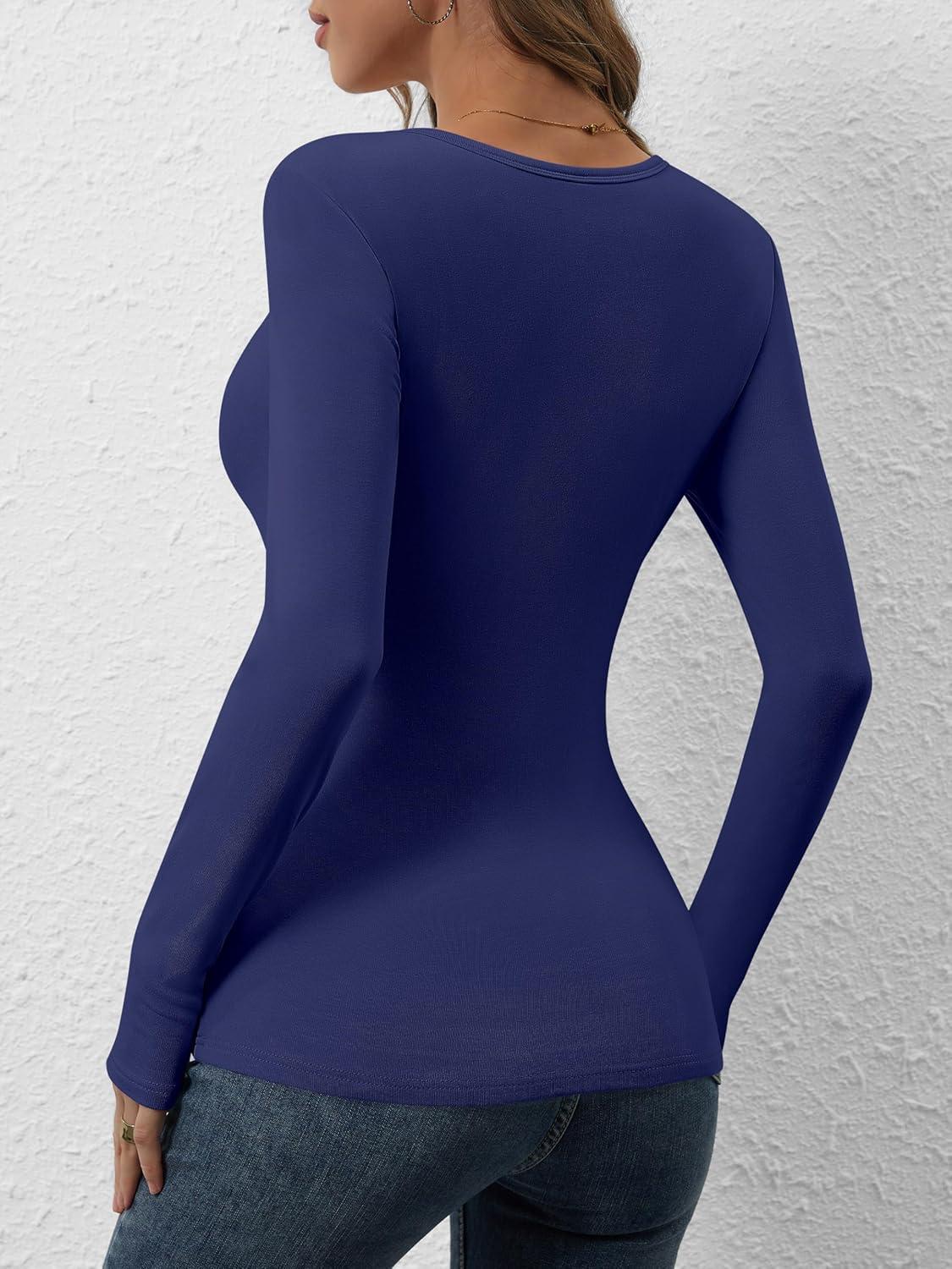 ANRABESS Long Sleeve Henley Shirts for Women Thermal Fleece Tops Knit Fitted Basic T-Shirts 2025 Fall Winter Warm Undershirts(Navy Blue)