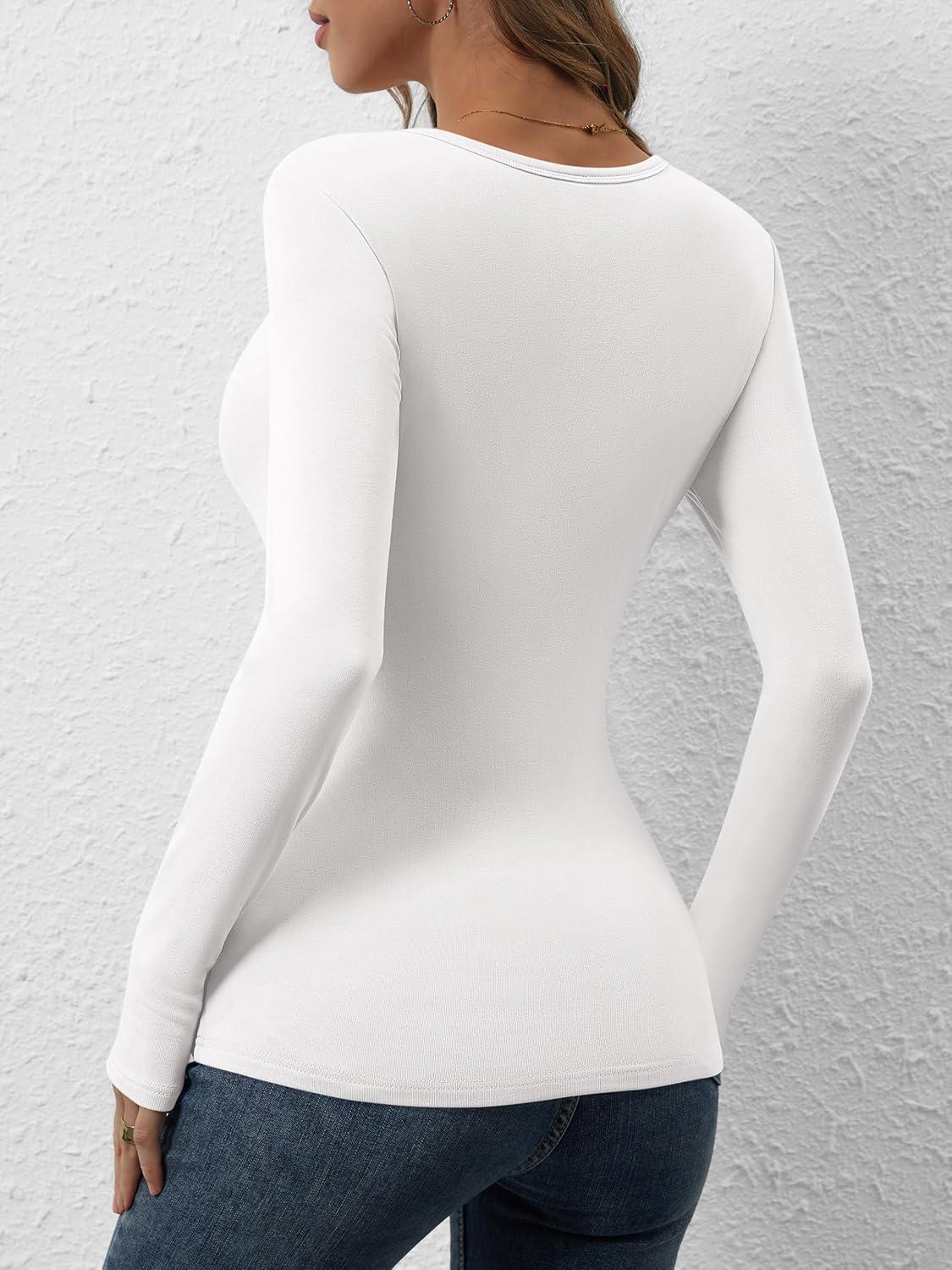 ANRABESS Long Sleeve Henley Shirts for Women Thermal Fleece Tops Knit Fitted Basic T-Shirts 2025 Fall Winter Warm Undershirts(White)