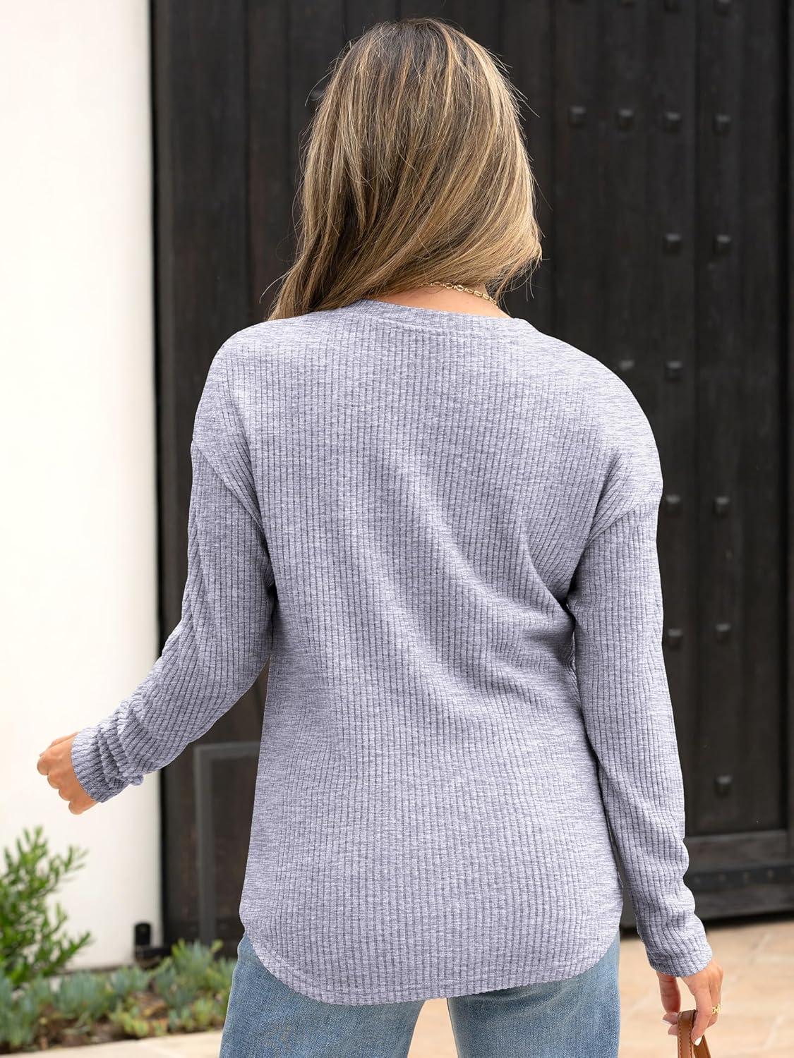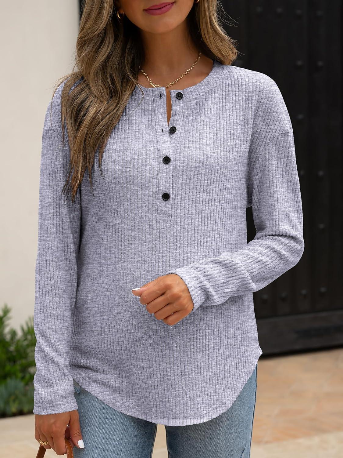 ANRABESS Long Sleeve Shirts for Women Henley Tops Dressy Casual T-Shirts Blouses 2025 Fall Lightweight Sweaters(Grey)