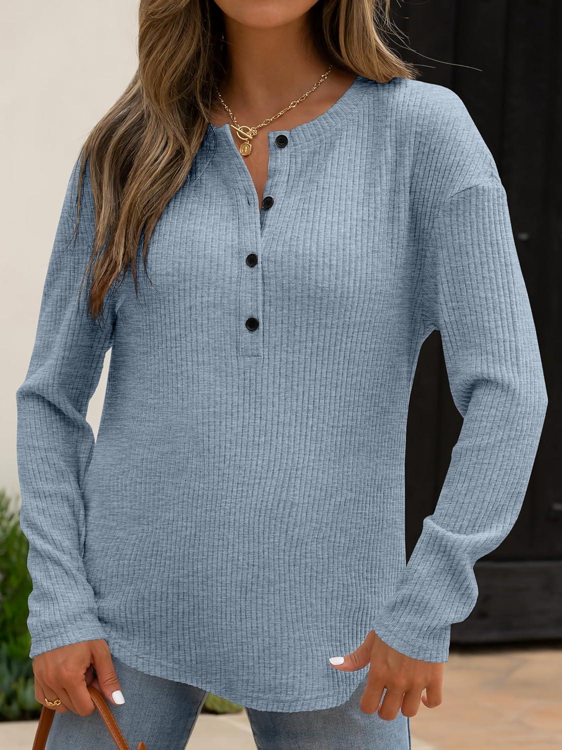 ANRABESS Long Sleeve Shirts for Women Henley Tops Dressy Casual T-Shirts Blouses 2025 Fall Lightweight Sweaters(Light Blue)