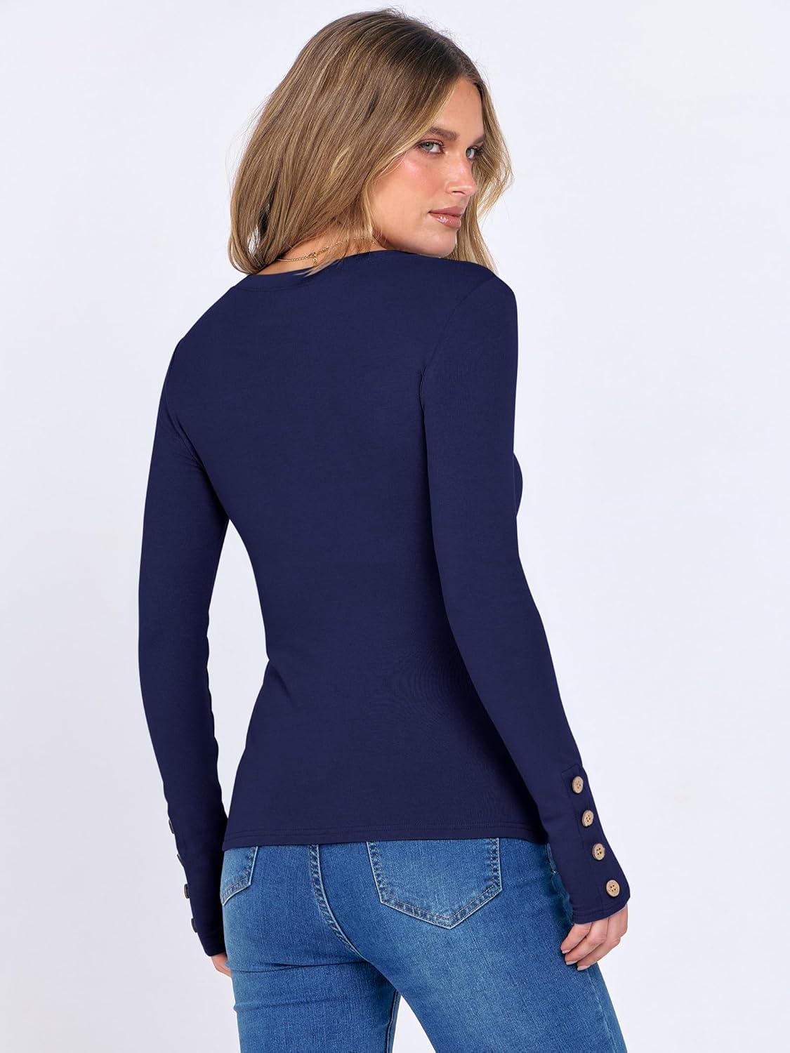ANRABESS Long Sleeve Shirts for Women Thermal Crewneck Basic Fleece Top Casual T-Shirts 2025 Fall Winter Warm Undershirts(Navy Blue)