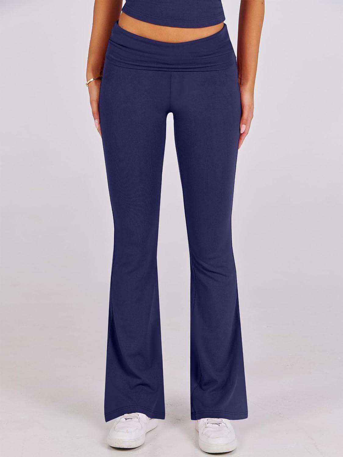 ANRABESS Lounge Sets for Women 2 Piece Foldover Yoga Flare Leggings Pants Crop Tops Casual Y2K Outfits Matching Tracksuit Set(Navy Blue)