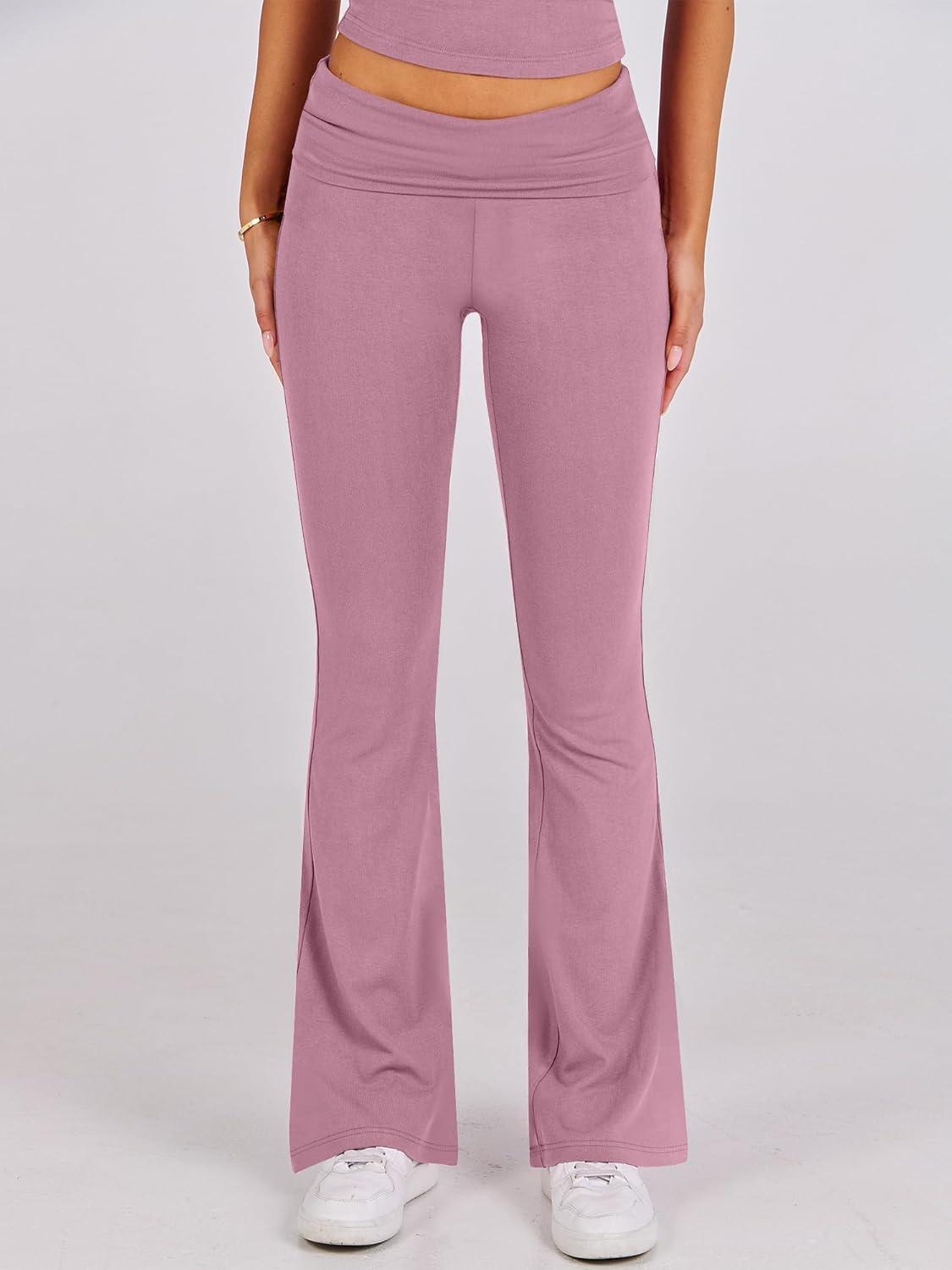 ANRABESS Lounge Sets for Women 2 Piece Foldover Yoga Flare Leggings Pants Crop Tops Casual Y2K Outfits Matching Tracksuit Set(Pink)