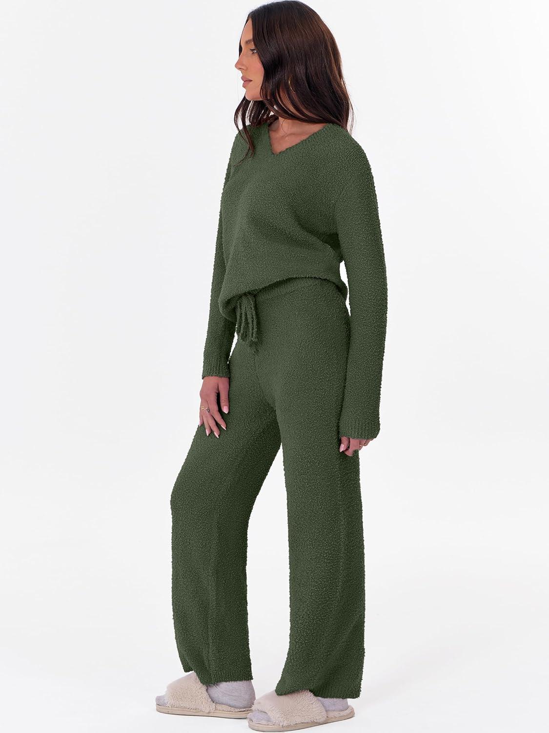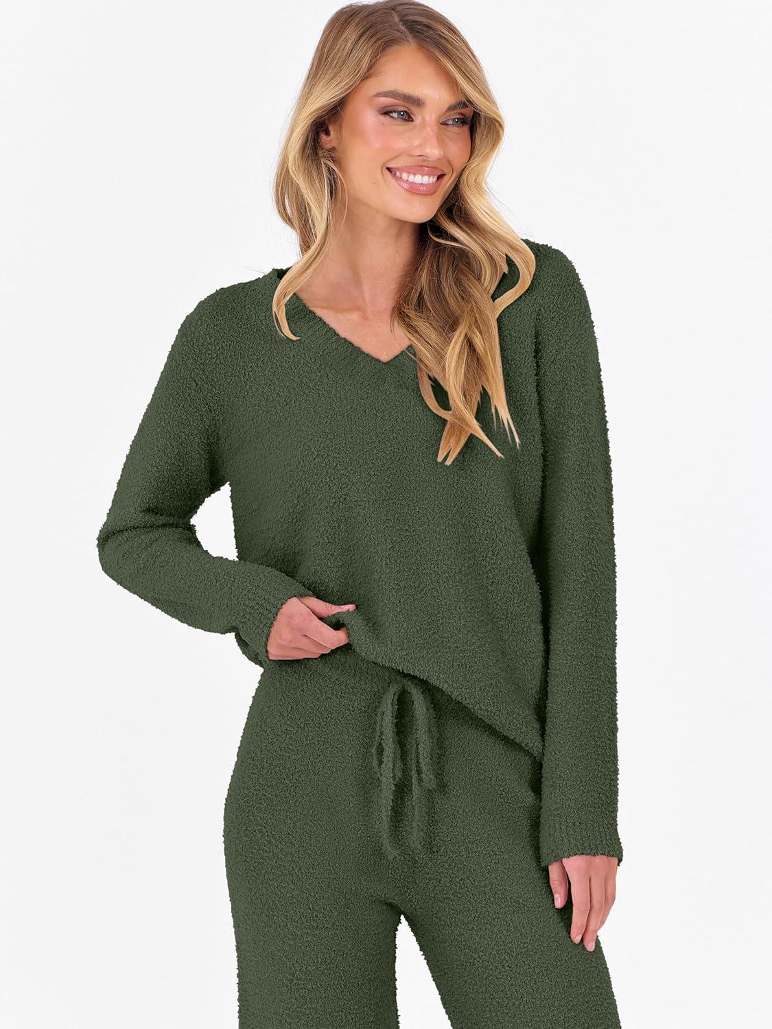 ANRABESS Lounge Sets for Women Fuzzy Fleece Pajama Sets 2 Piece Outfits Cozy Sweater Matching Set 2025 Fall Winter Loungewear(Lawn Green)