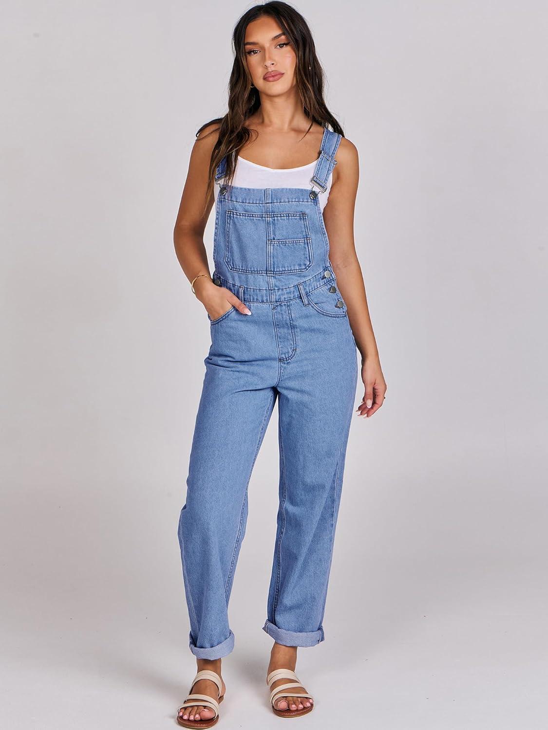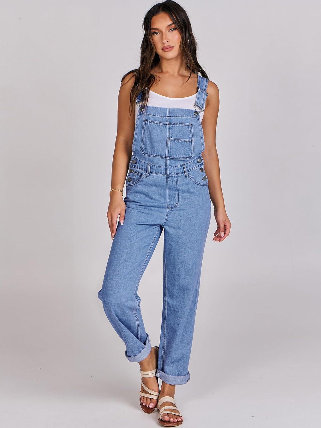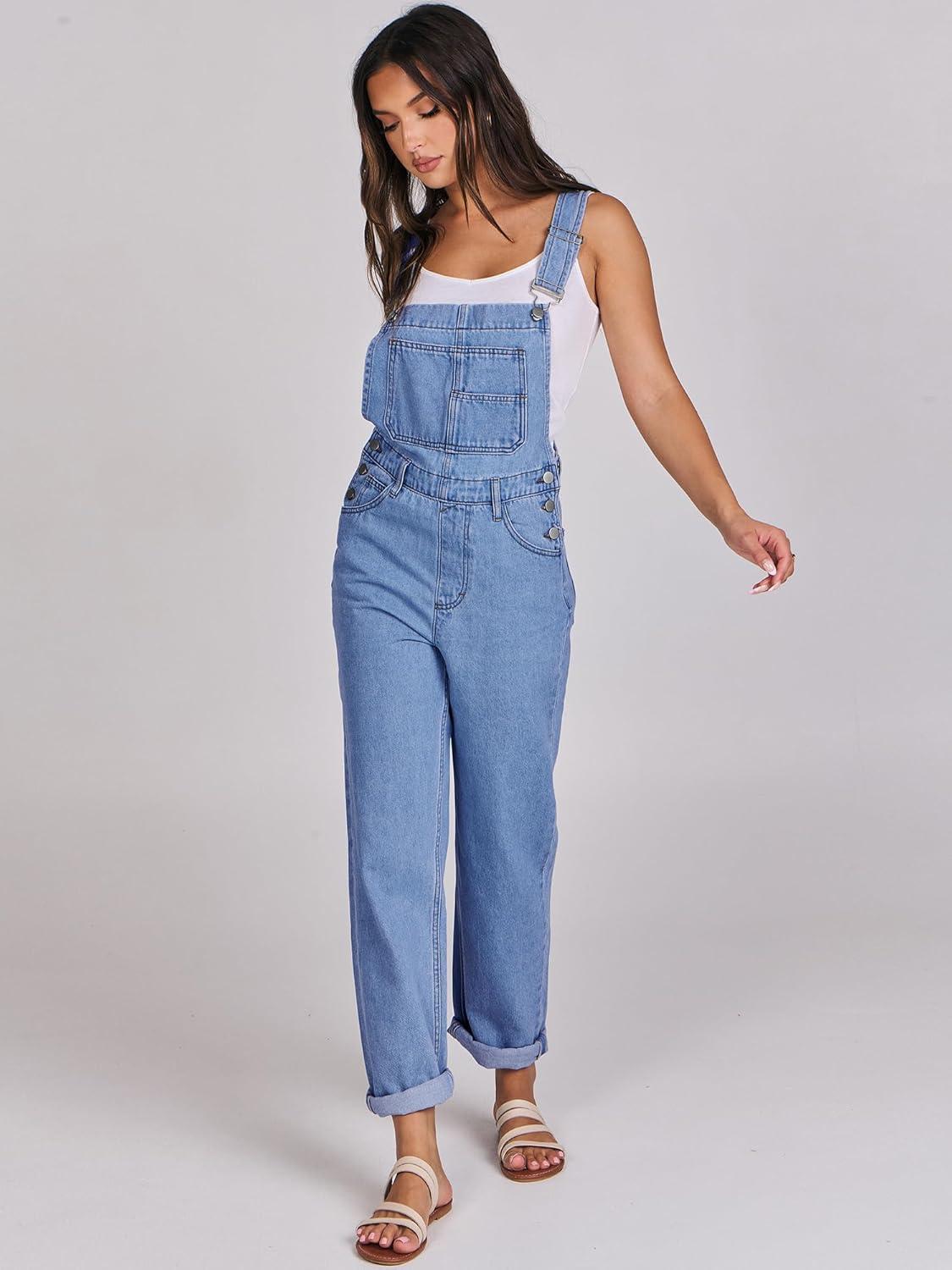 ANRABESS Overalls for Women Loose Fit Denim Overalls Adjustable Strap Jean Jumpsuit Bib Romper 2025 Fall Casual Work Outfits(B Washed Blue)