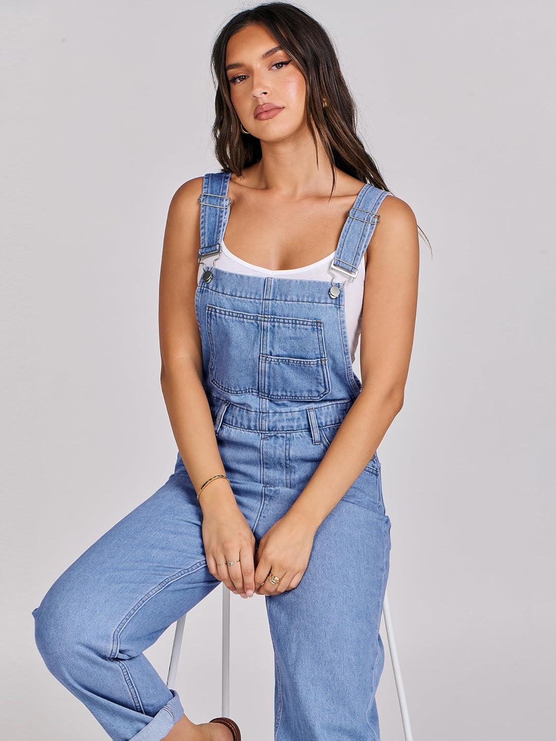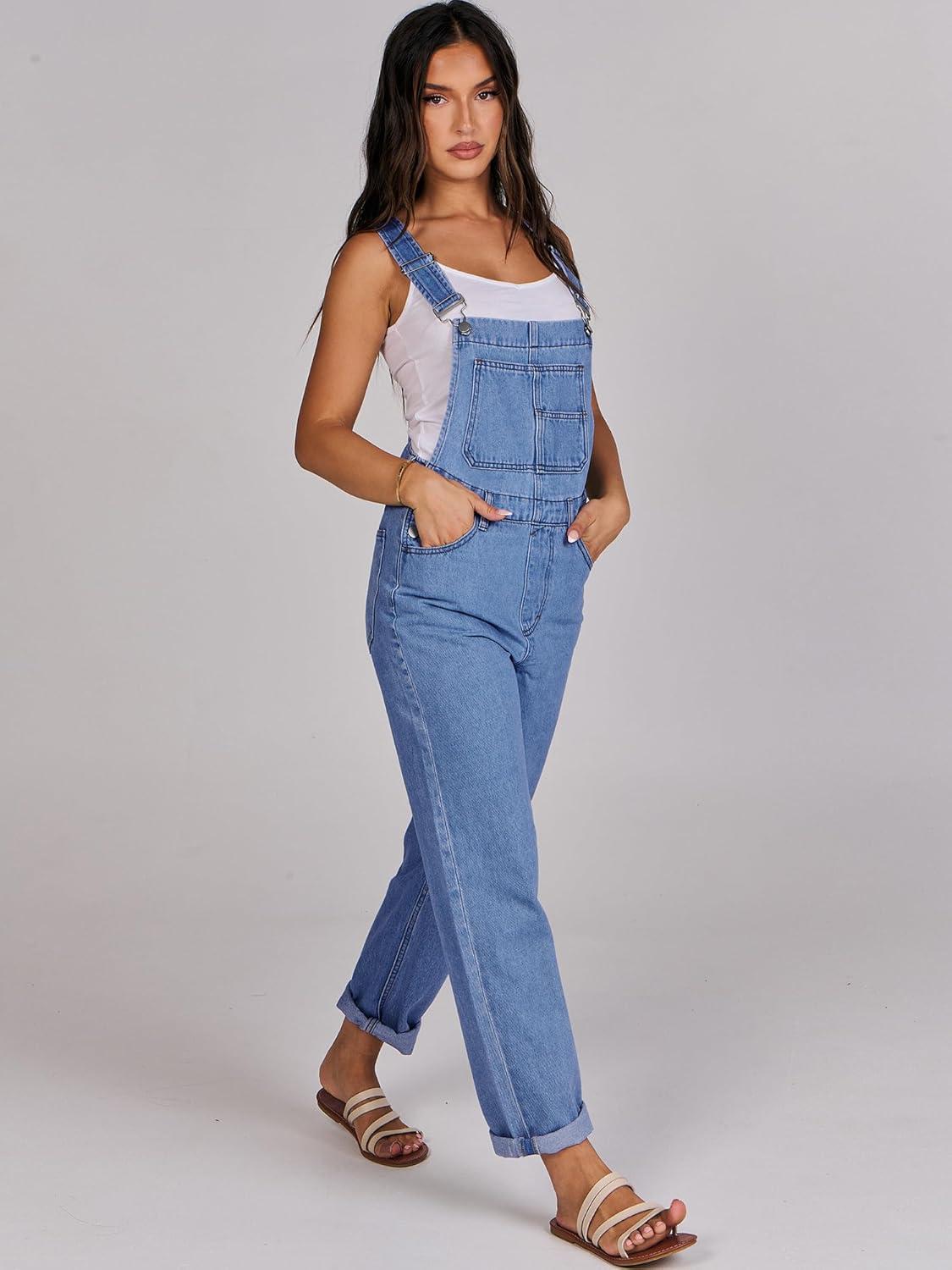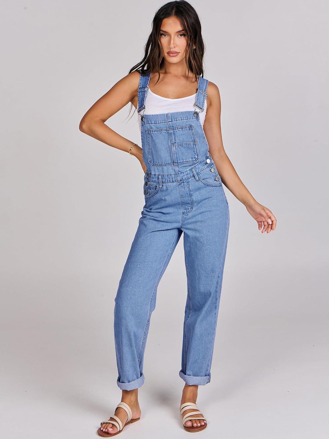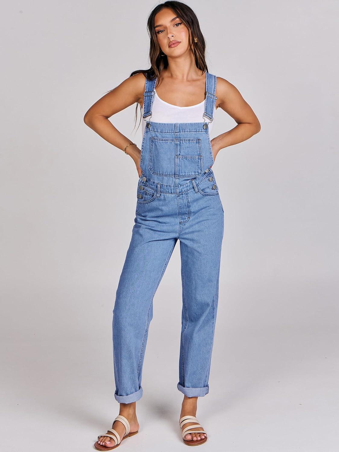ANRABESS Overalls for Women Loose Fit Denim Overalls Adjustable Strap Jean Jumpsuit Bib Romper 2025 Fall Casual Work Outfits(B Washed Blue)
