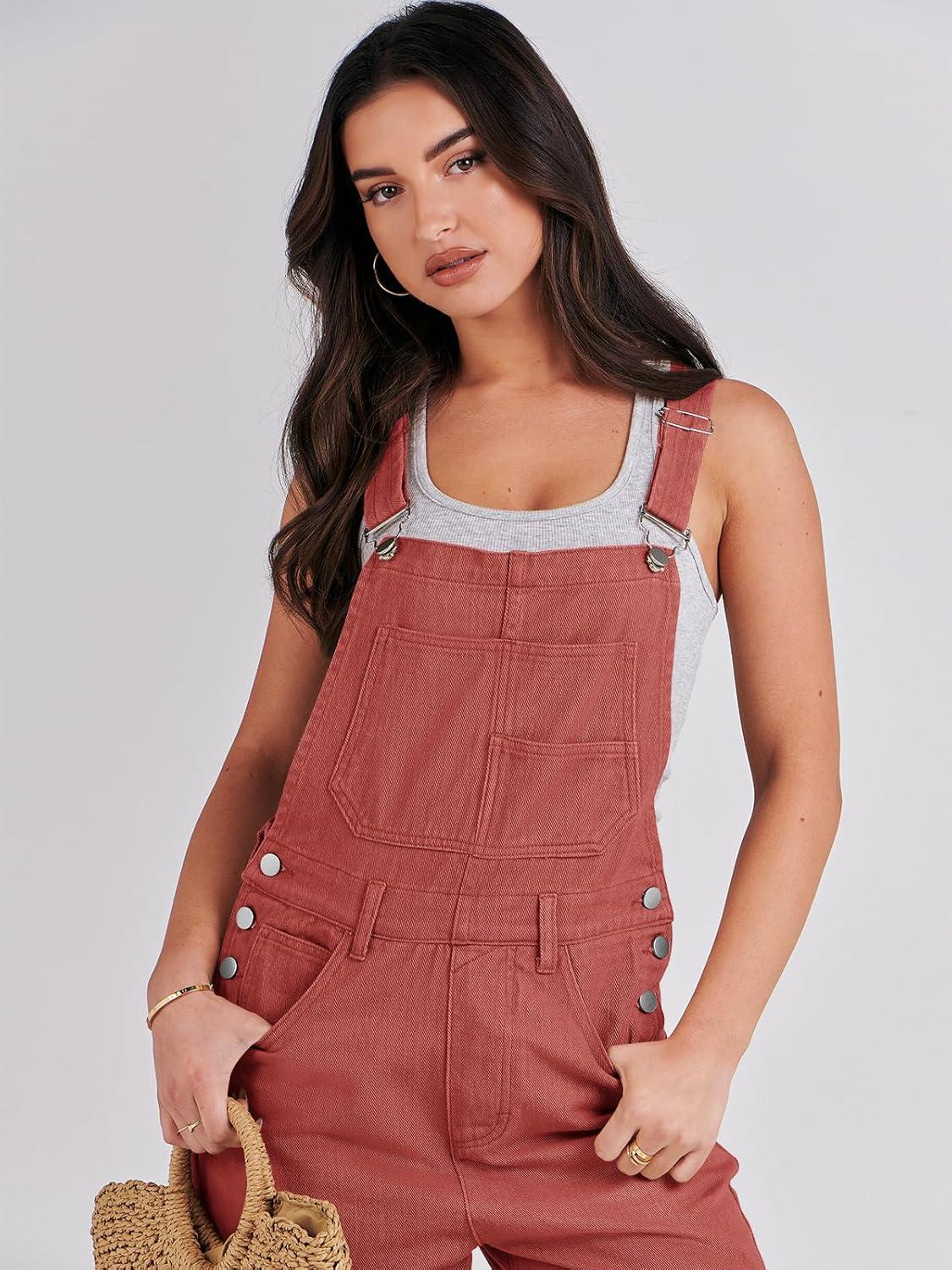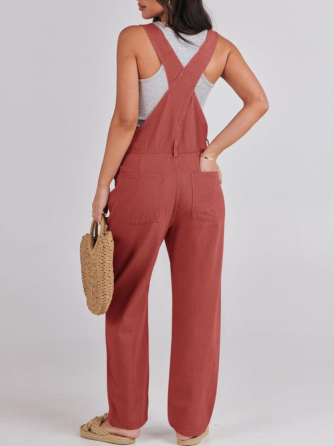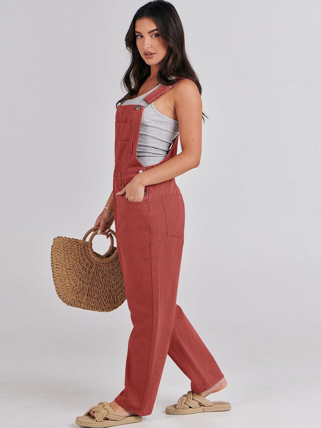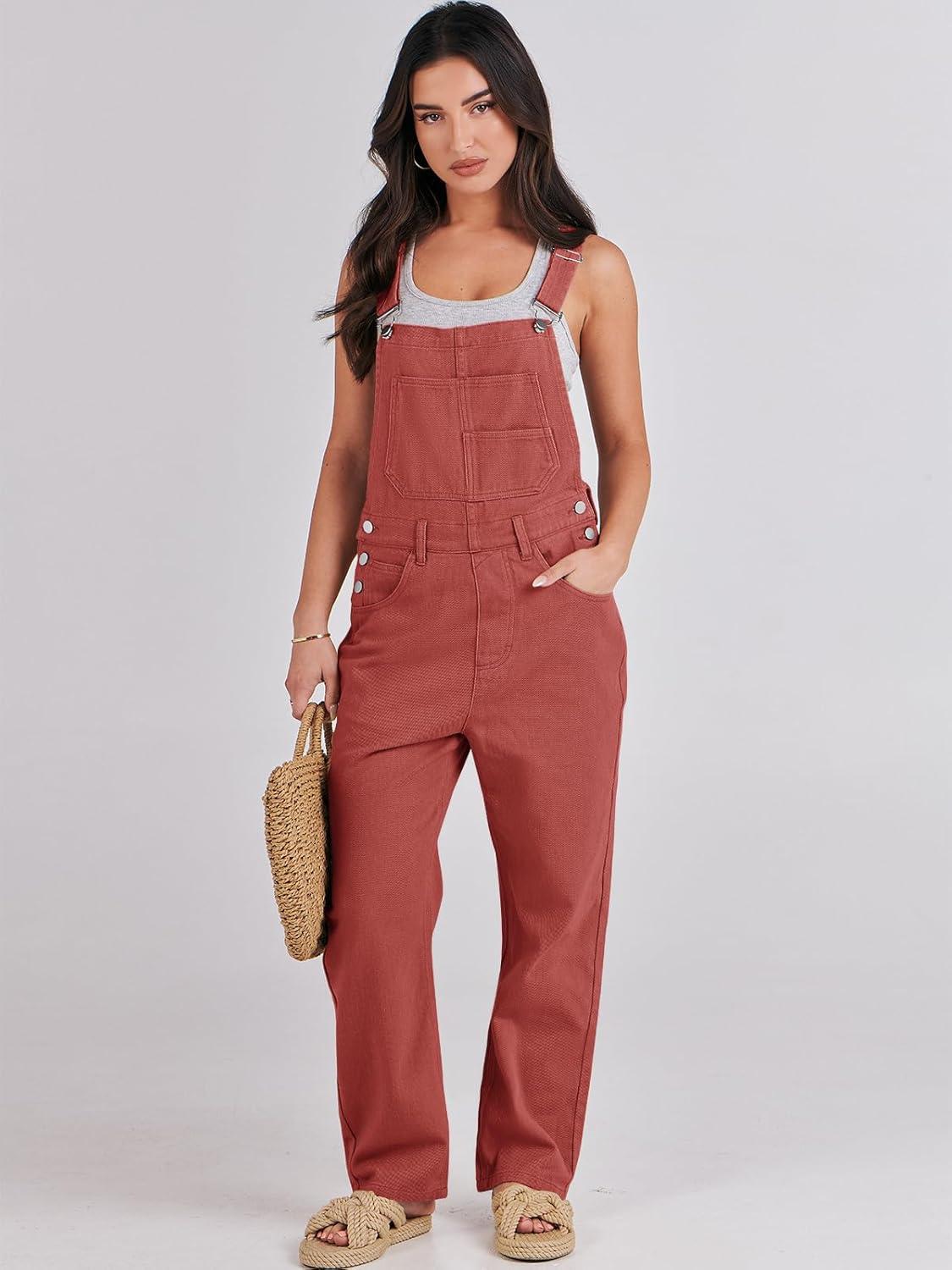 ANRABESS Overalls for Women Loose Fit Denim Overalls Adjustable Strap Jean Jumpsuit Bib Romper 2025 Fall Casual Work Outfits(Rust Red)