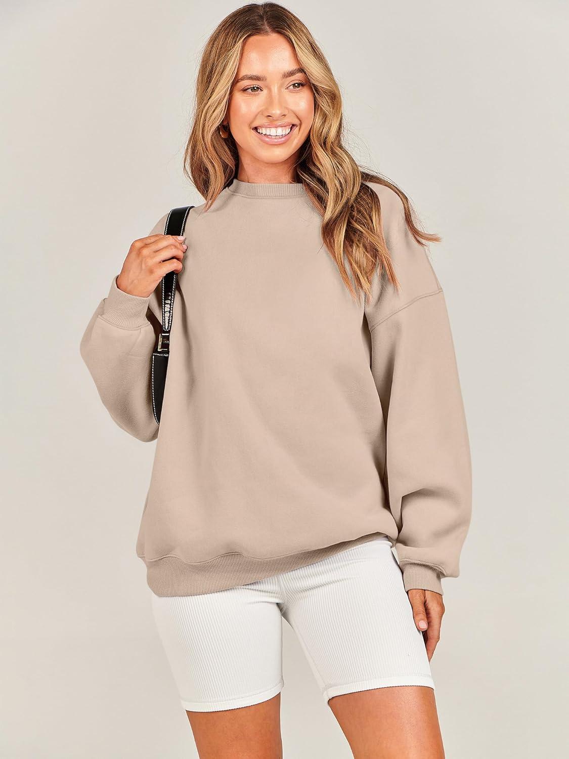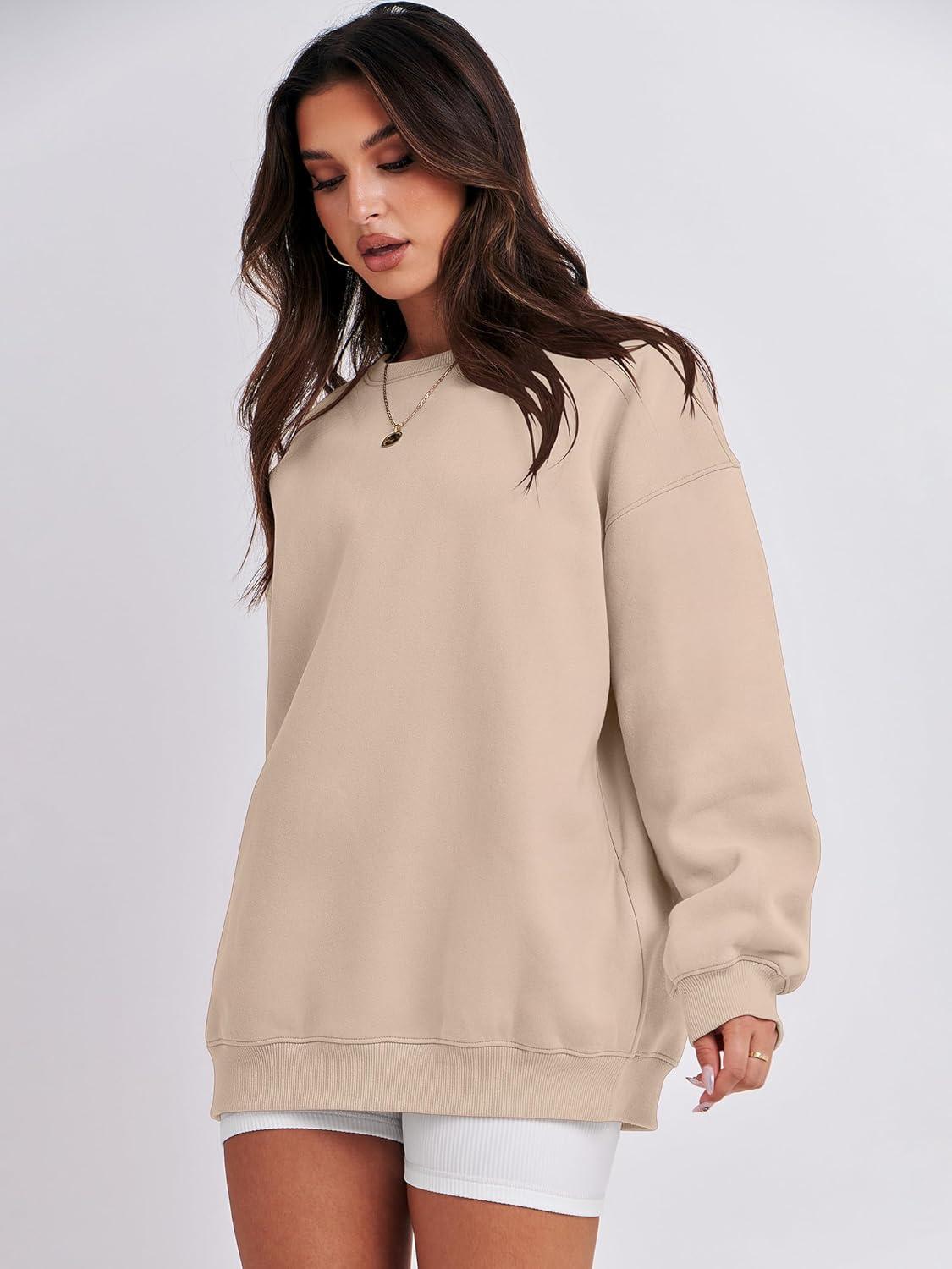 ANRABESS Oversized Sweatshirt for Women Crewneck Y2K Hoodies Fleece Casual Comfy Pullover Top Fall Outfits Clothes 2025(Apricot)