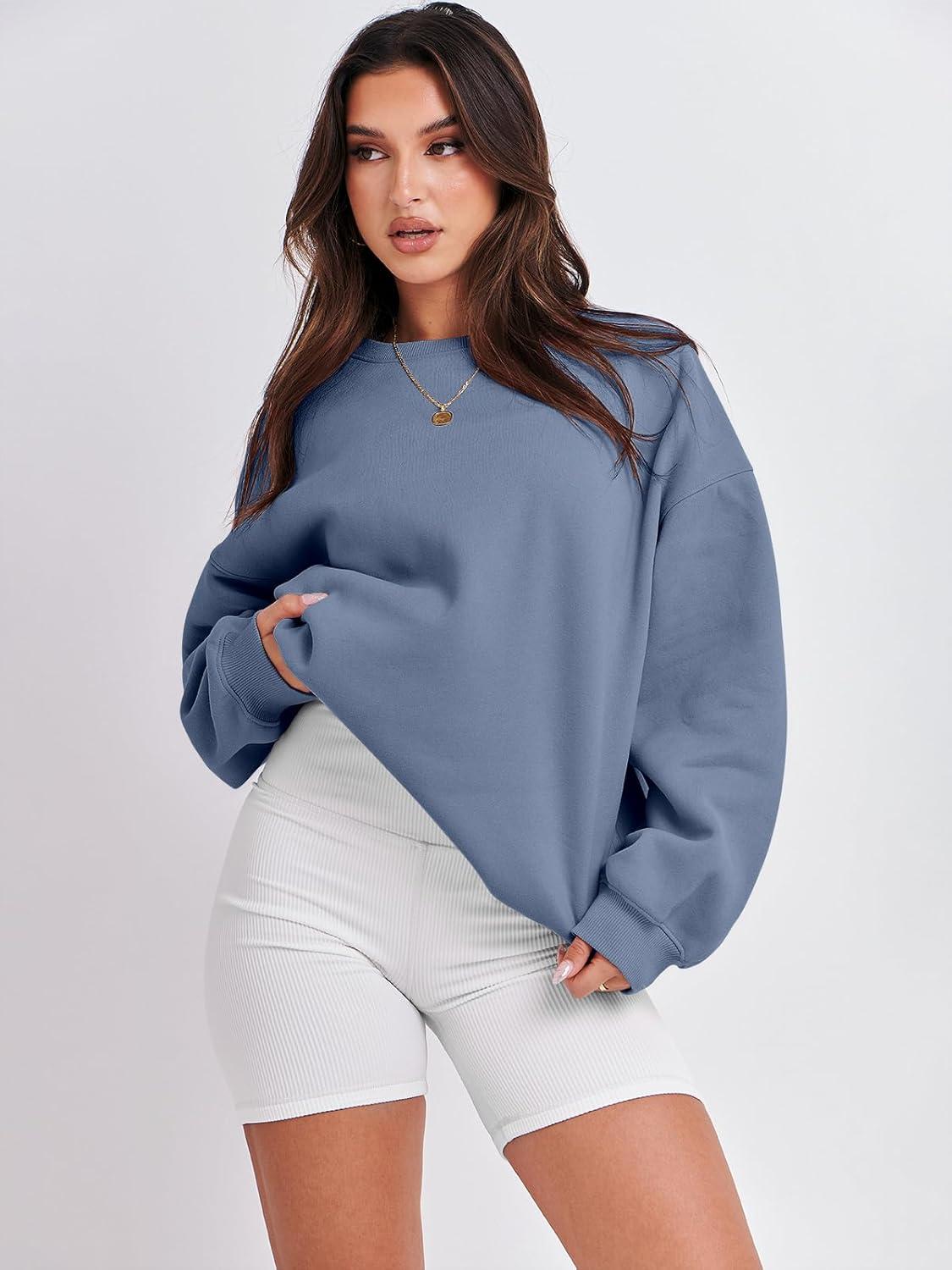 ANRABESS Oversized Sweatshirt for Women Crewneck Y2K Hoodies Fleece Casual Comfy Pullover Top Fall Outfits Clothes 2025(Blue)