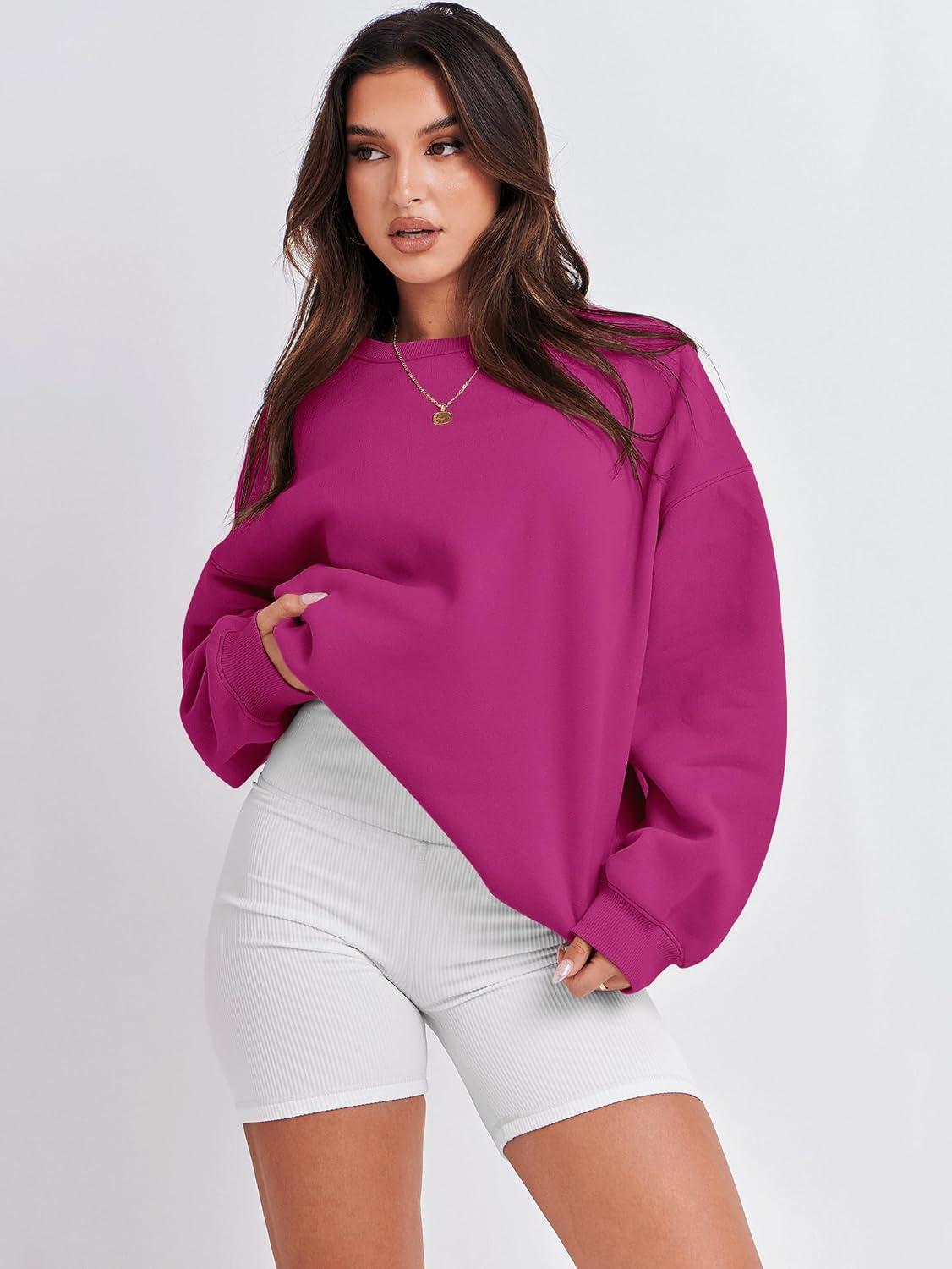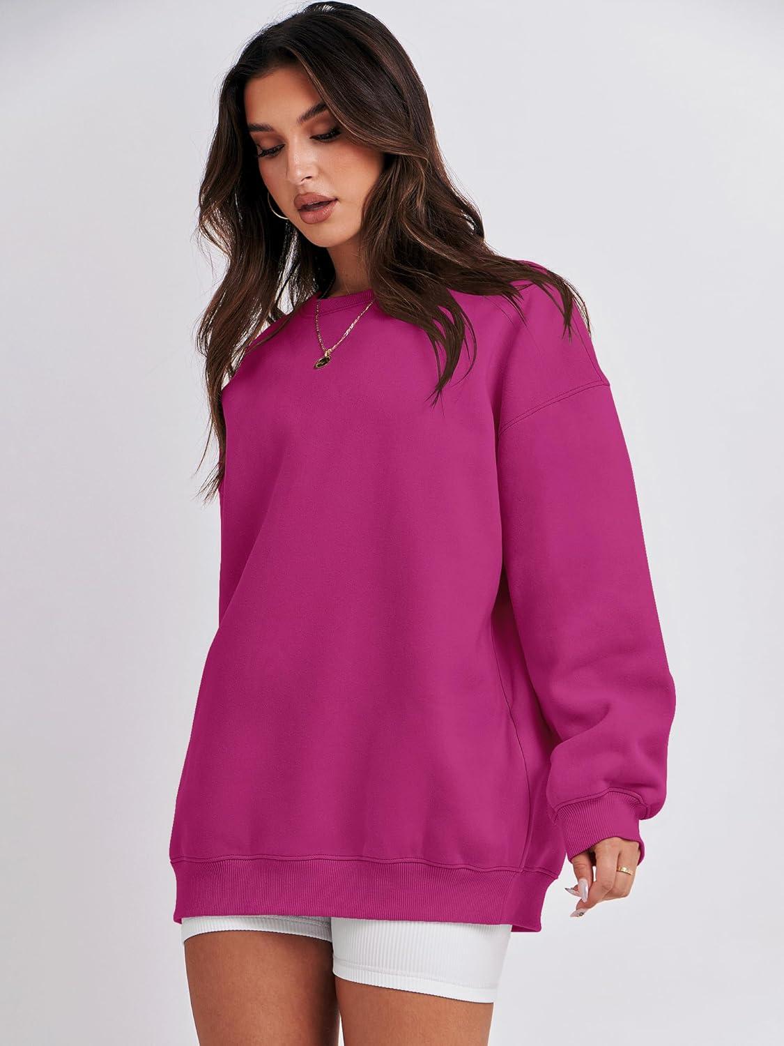 ANRABESS Oversized Sweatshirt for Women Crewneck Y2K Hoodies Fleece Casual Comfy Pullover Top Fall Outfits Clothes 2025(Light Pink)