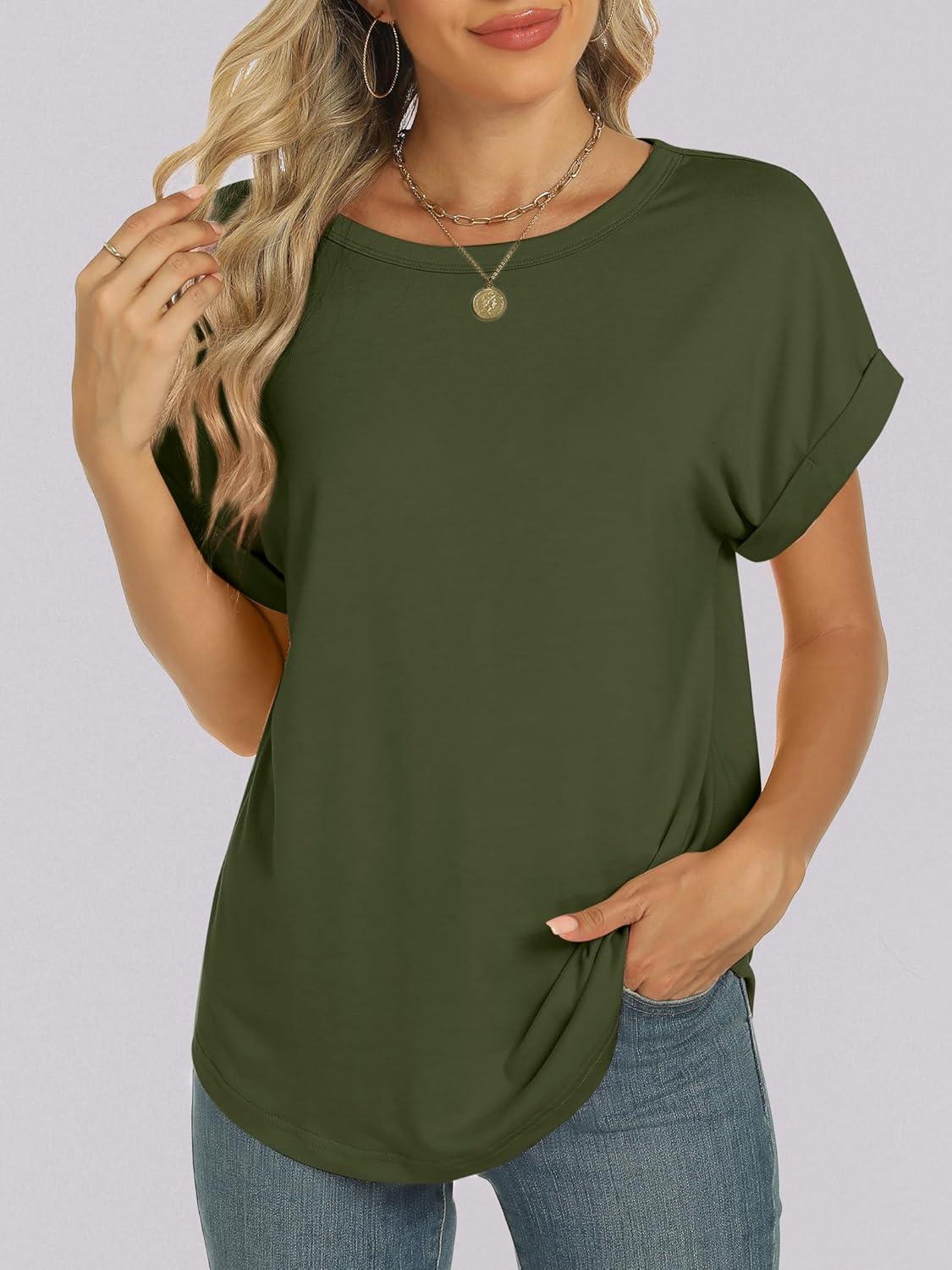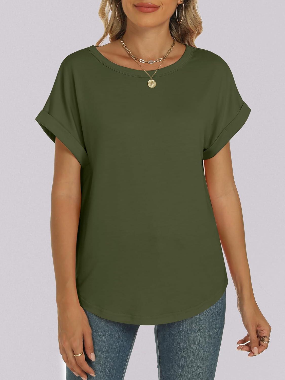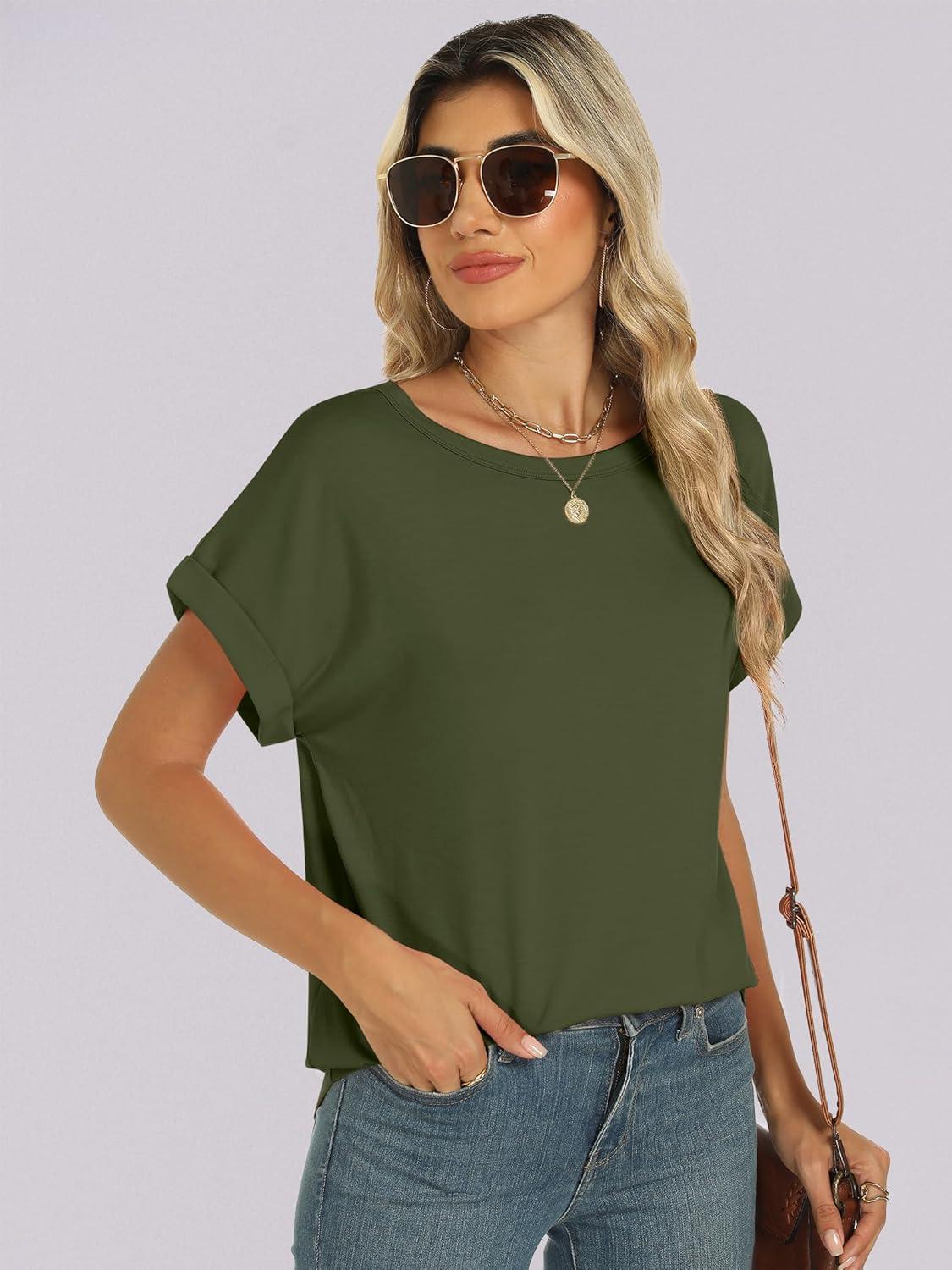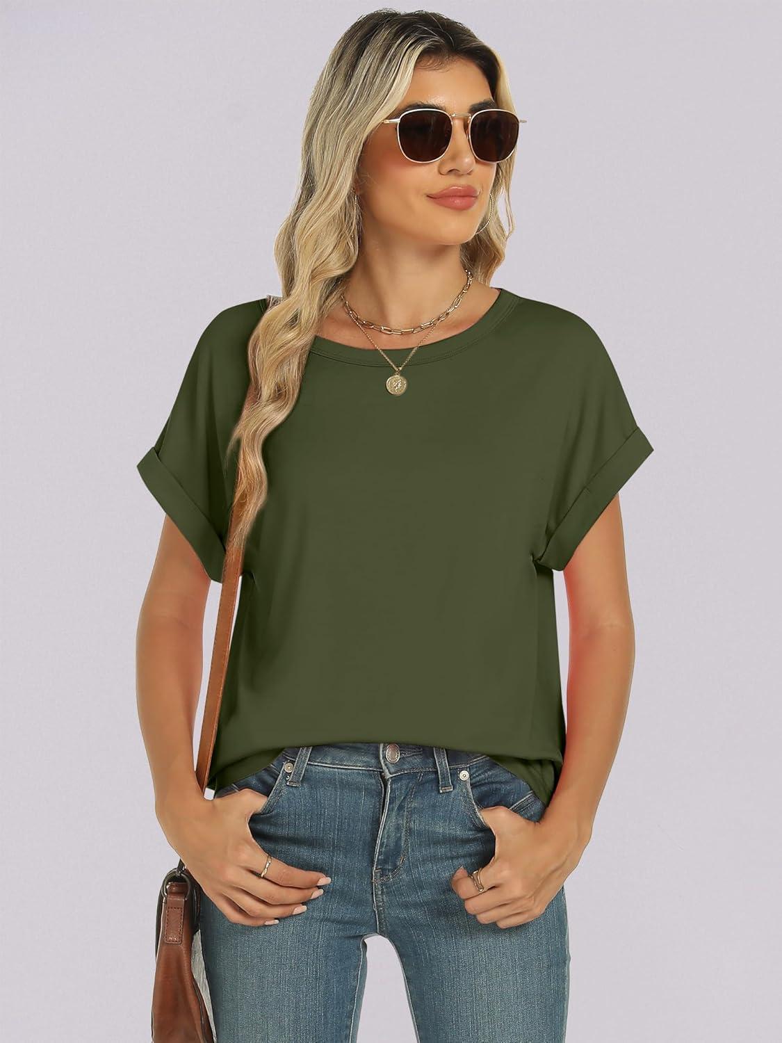 ANRABESS Oversized Tshirts for Women Summer Tops Short Sleeve Casual Loose Basic Tee Shirt Cute Outfits 2025 Trendy Clothes(Army Green)