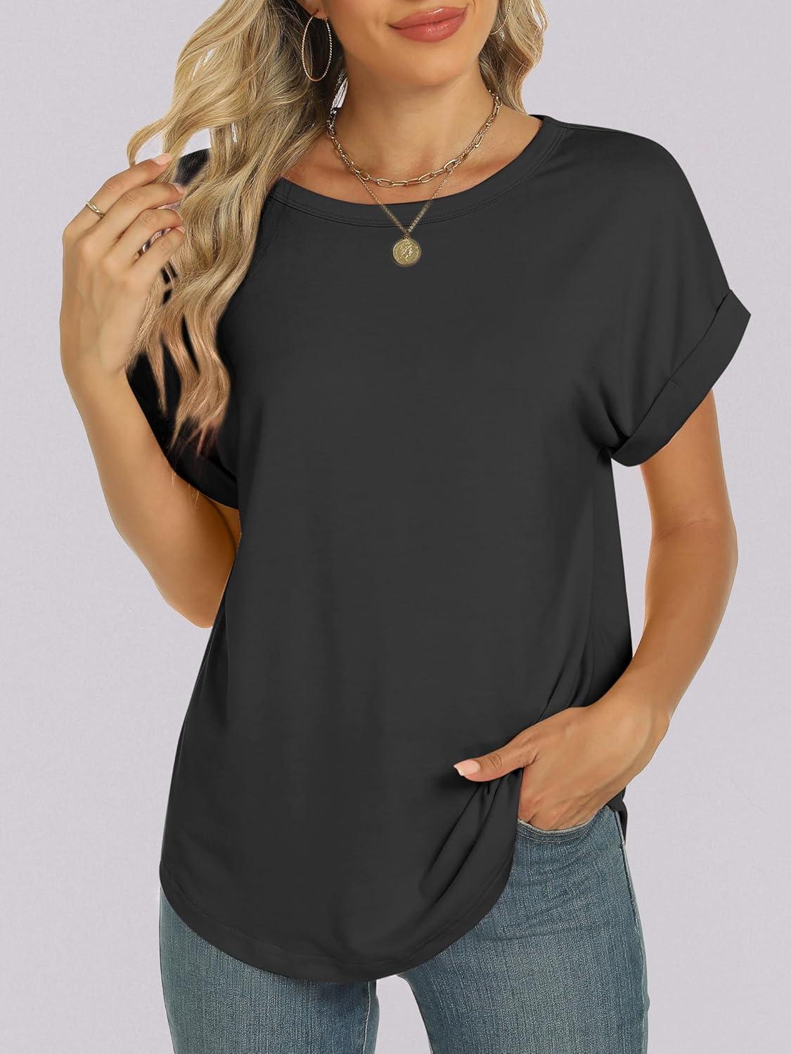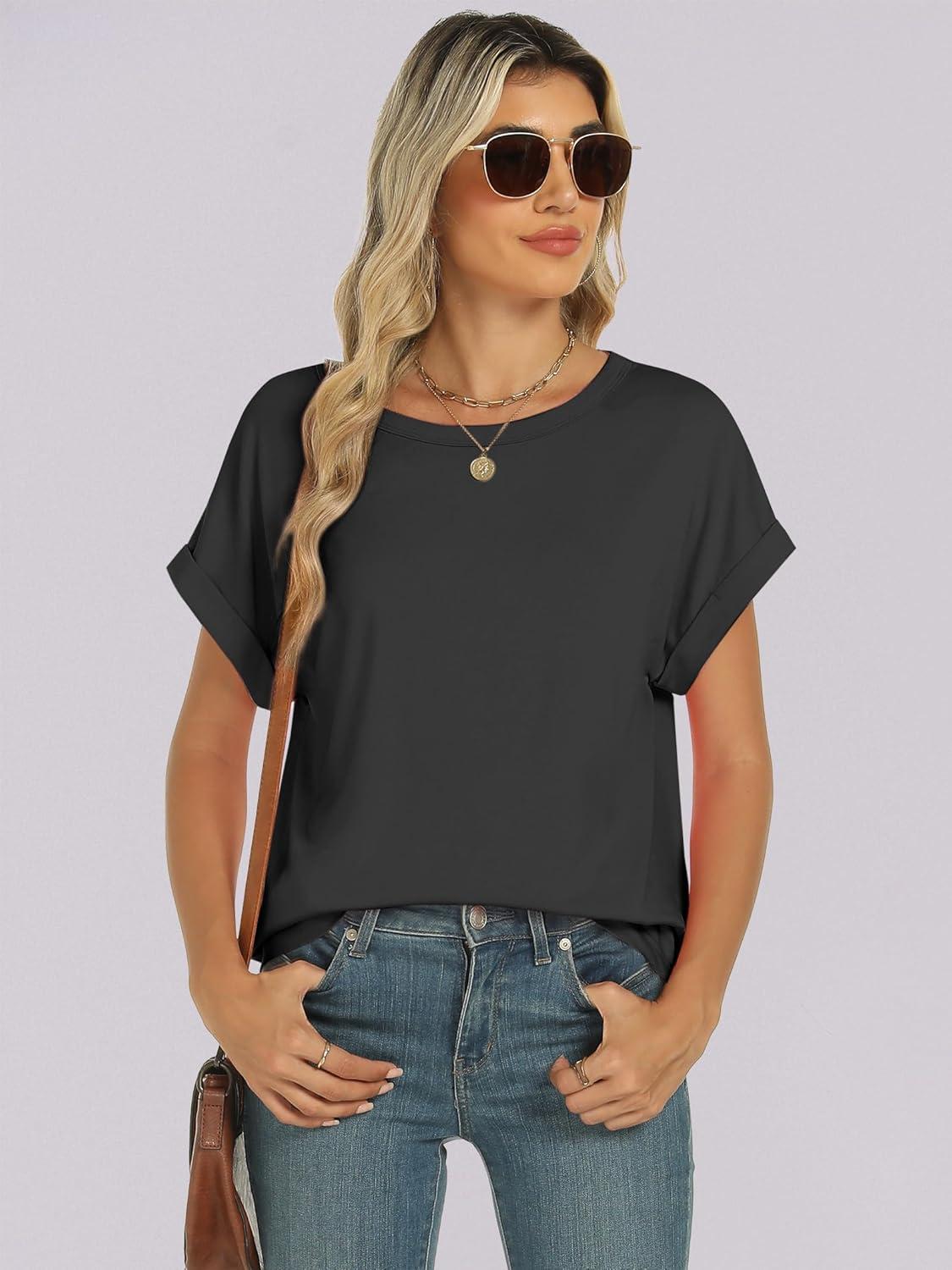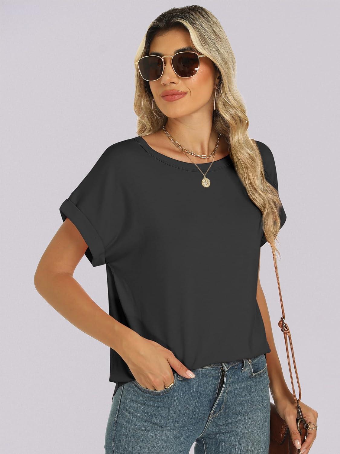 ANRABESS Oversized Tshirts for Women Summer Tops Short Sleeve Casual Loose Basic Tee Shirt Cute Outfits 2025 Trendy Clothes(Black)
