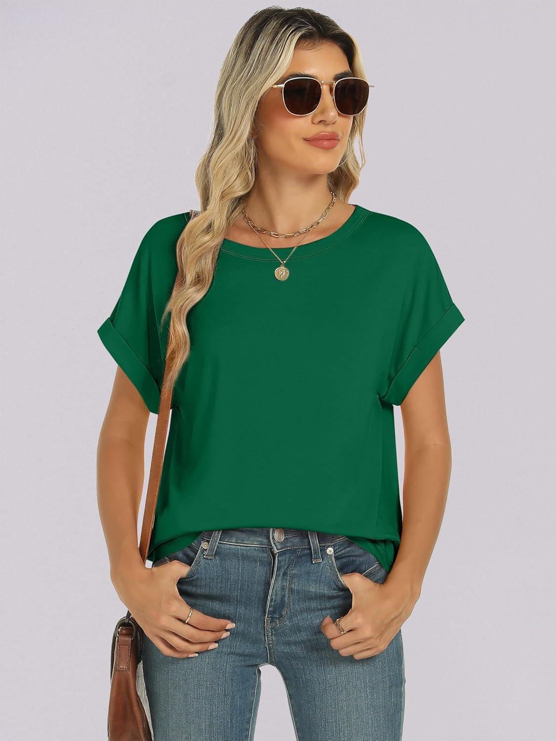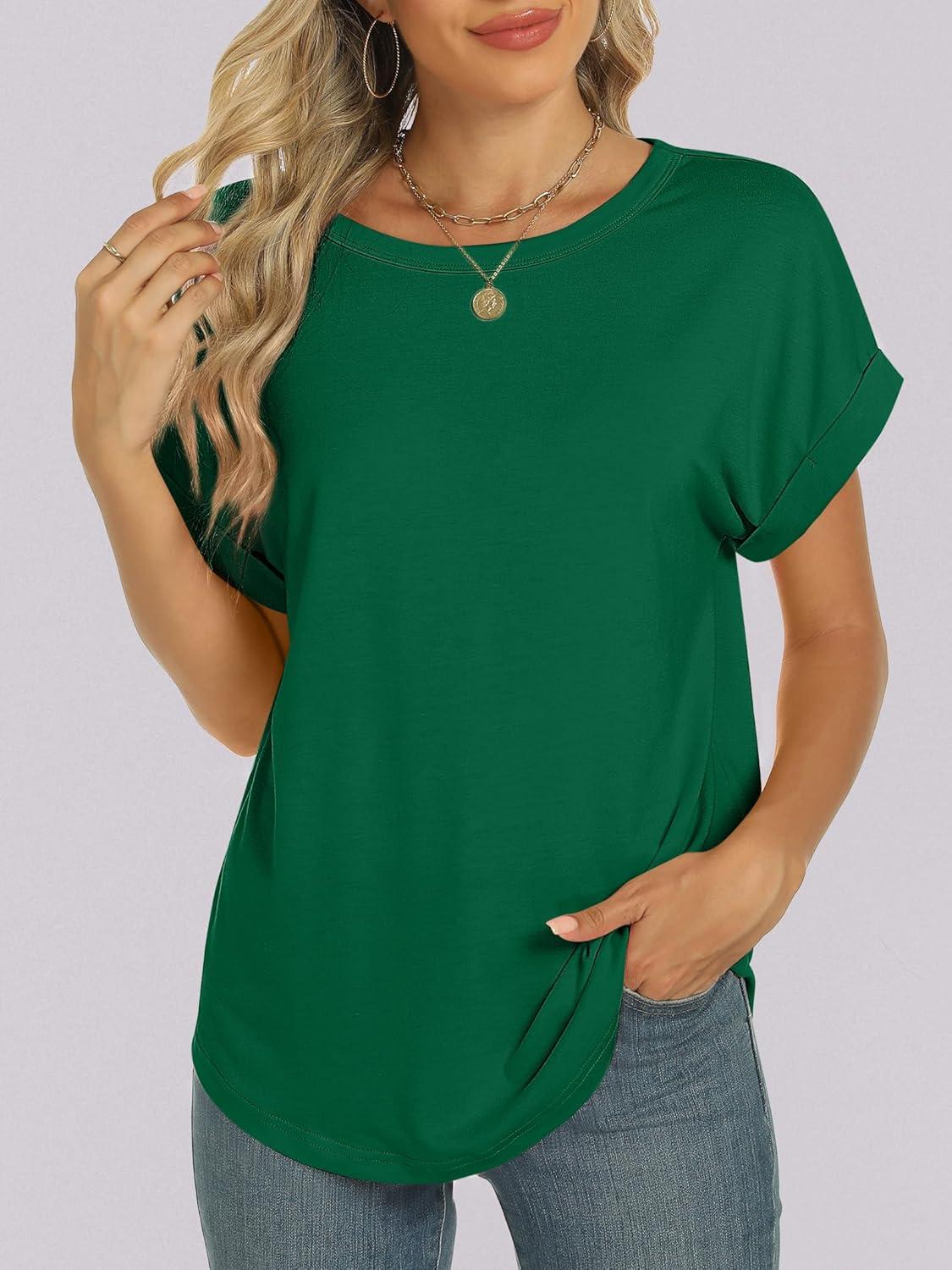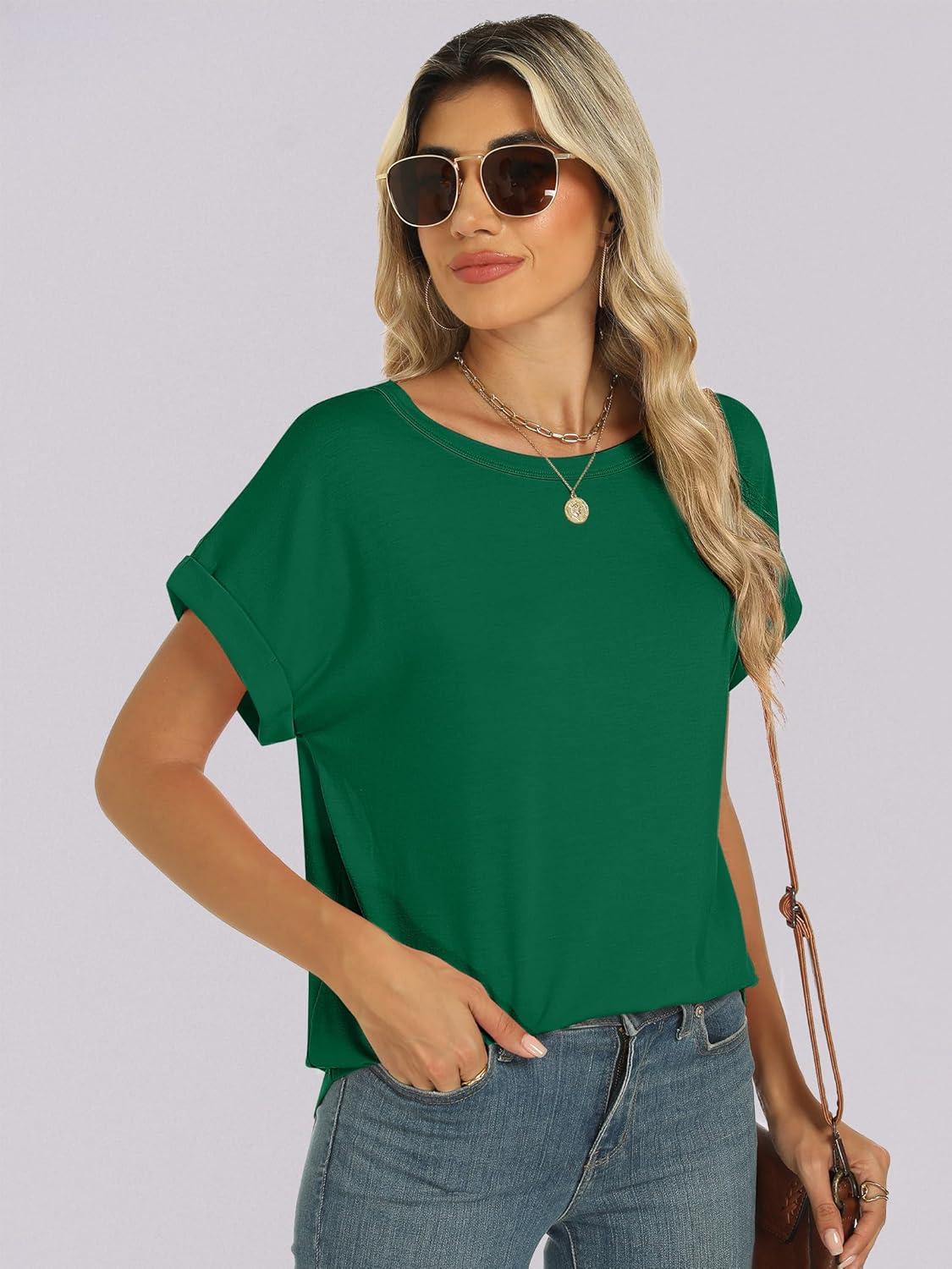 ANRABESS Oversized Tshirts for Women Summer Tops Short Sleeve Casual Loose Basic Tee Shirt Cute Outfits 2025 Trendy Clothes(Green)