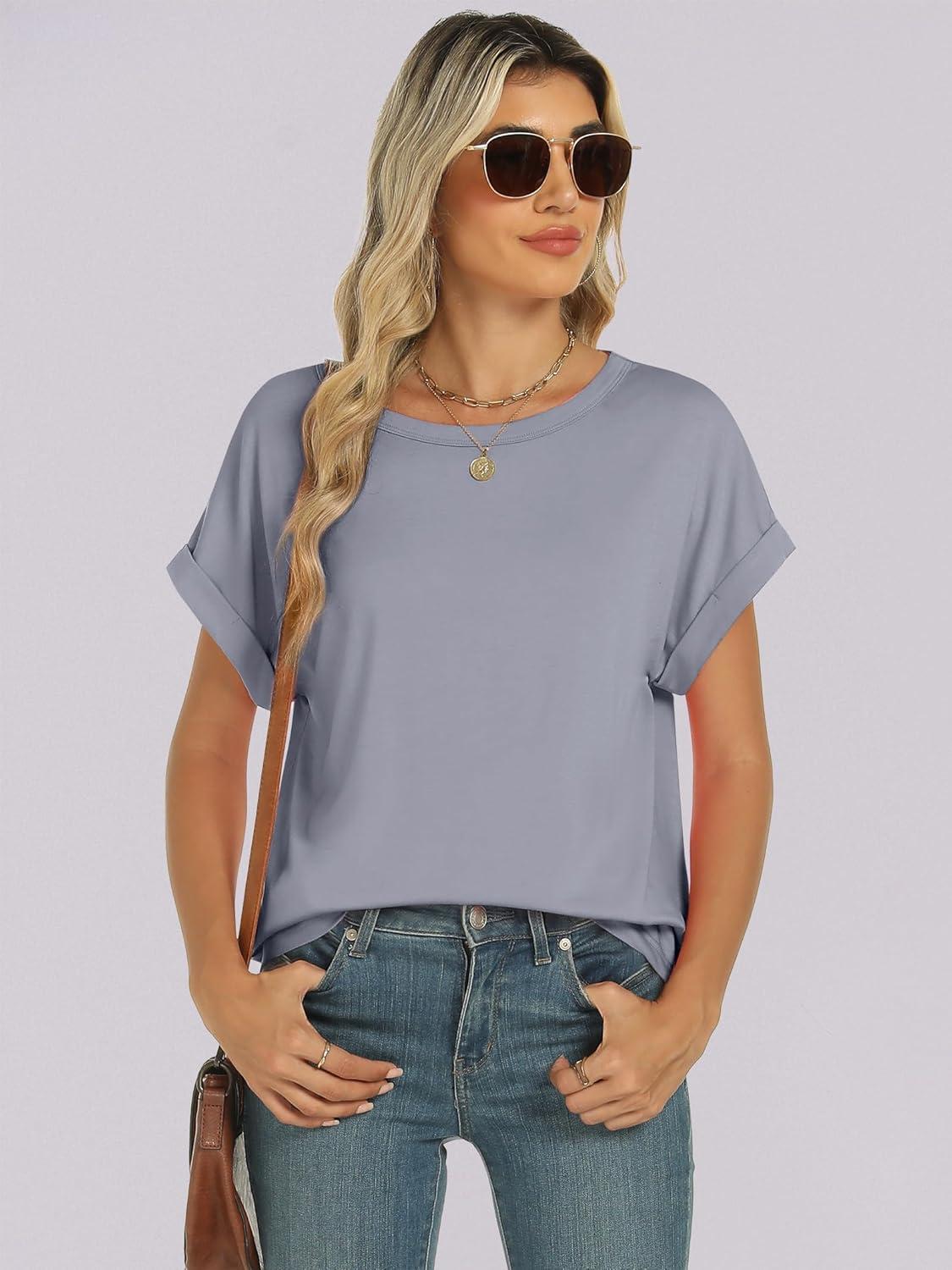 ANRABESS Oversized Tshirts for Women Summer Tops Short Sleeve Casual Loose Basic Tee Shirt Cute Outfits 2025 Trendy Clothes(Grey)