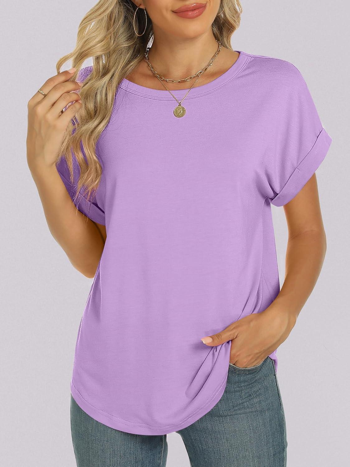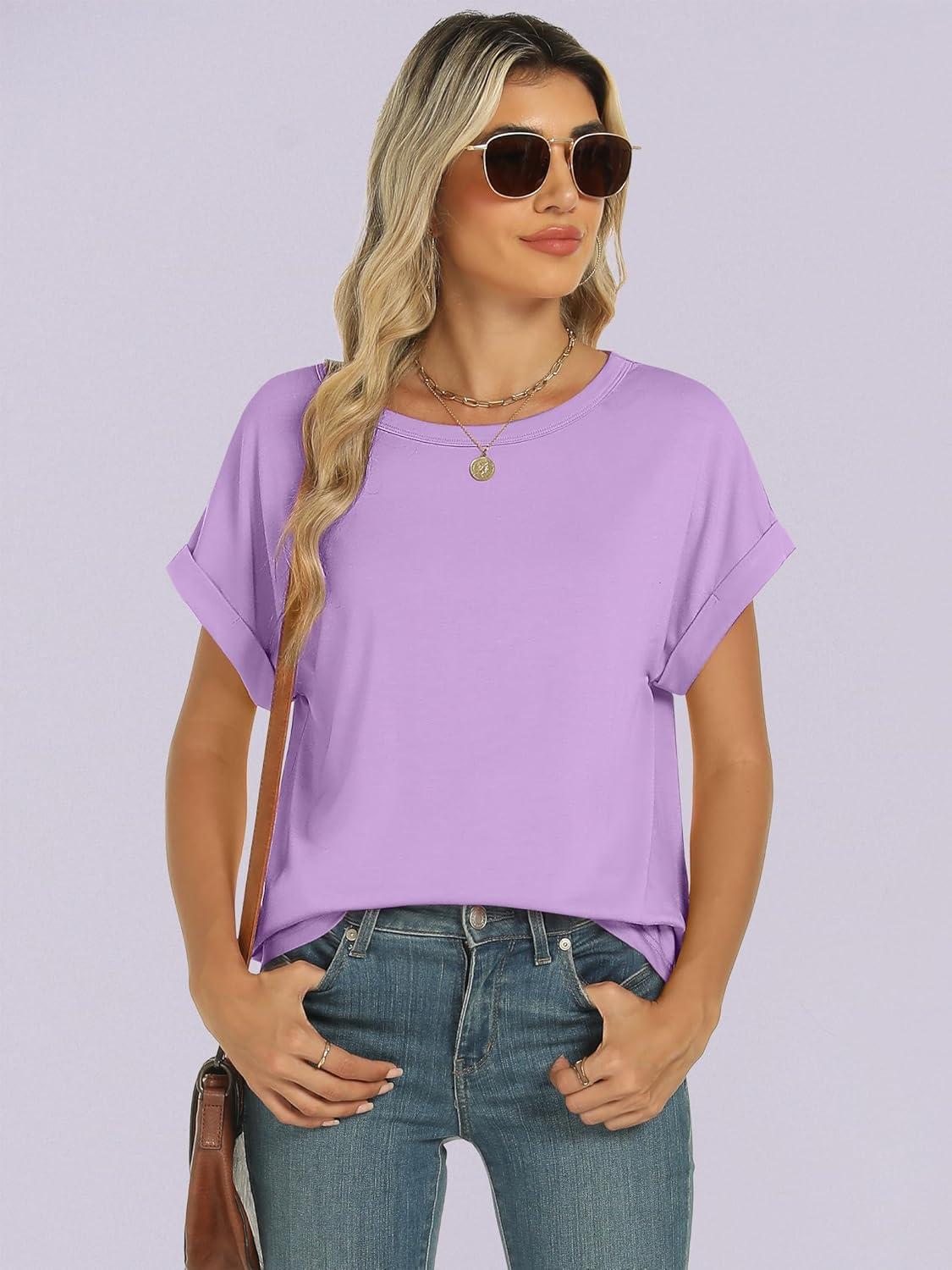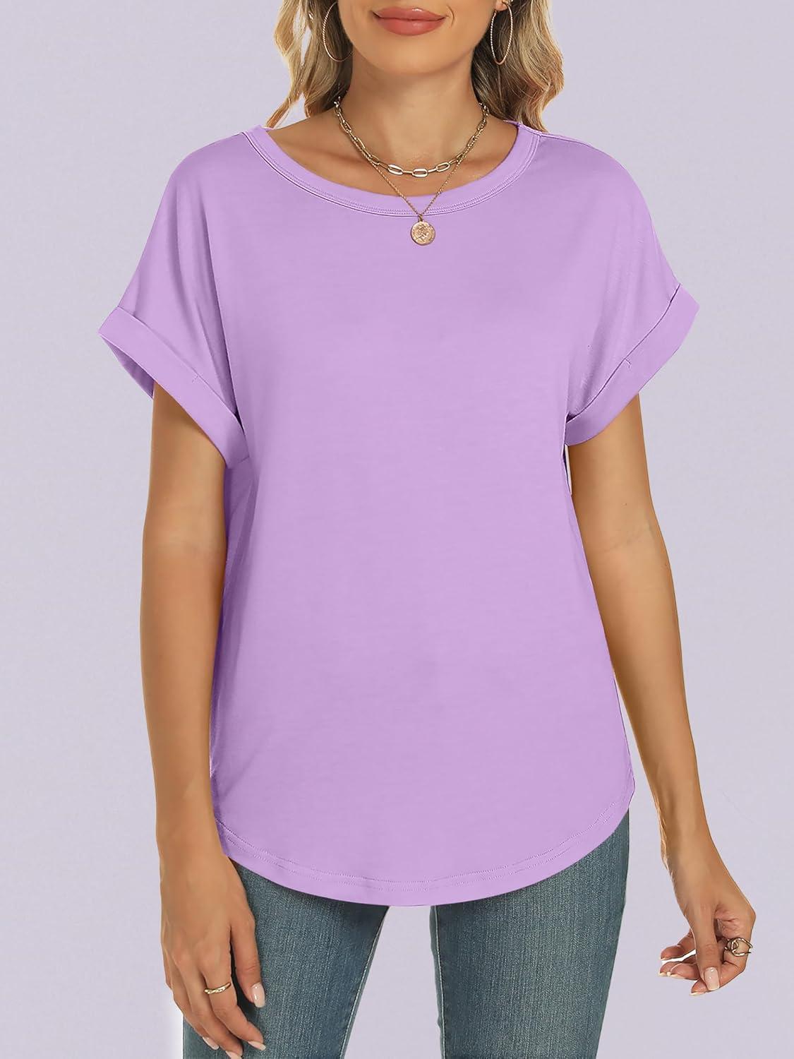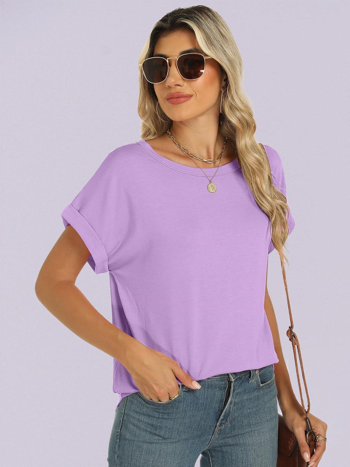 ANRABESS Oversized Tshirts for Women Summer Tops Short Sleeve Casual Loose Basic Tee Shirt Cute Outfits 2025 Trendy Clothes(Lilac)