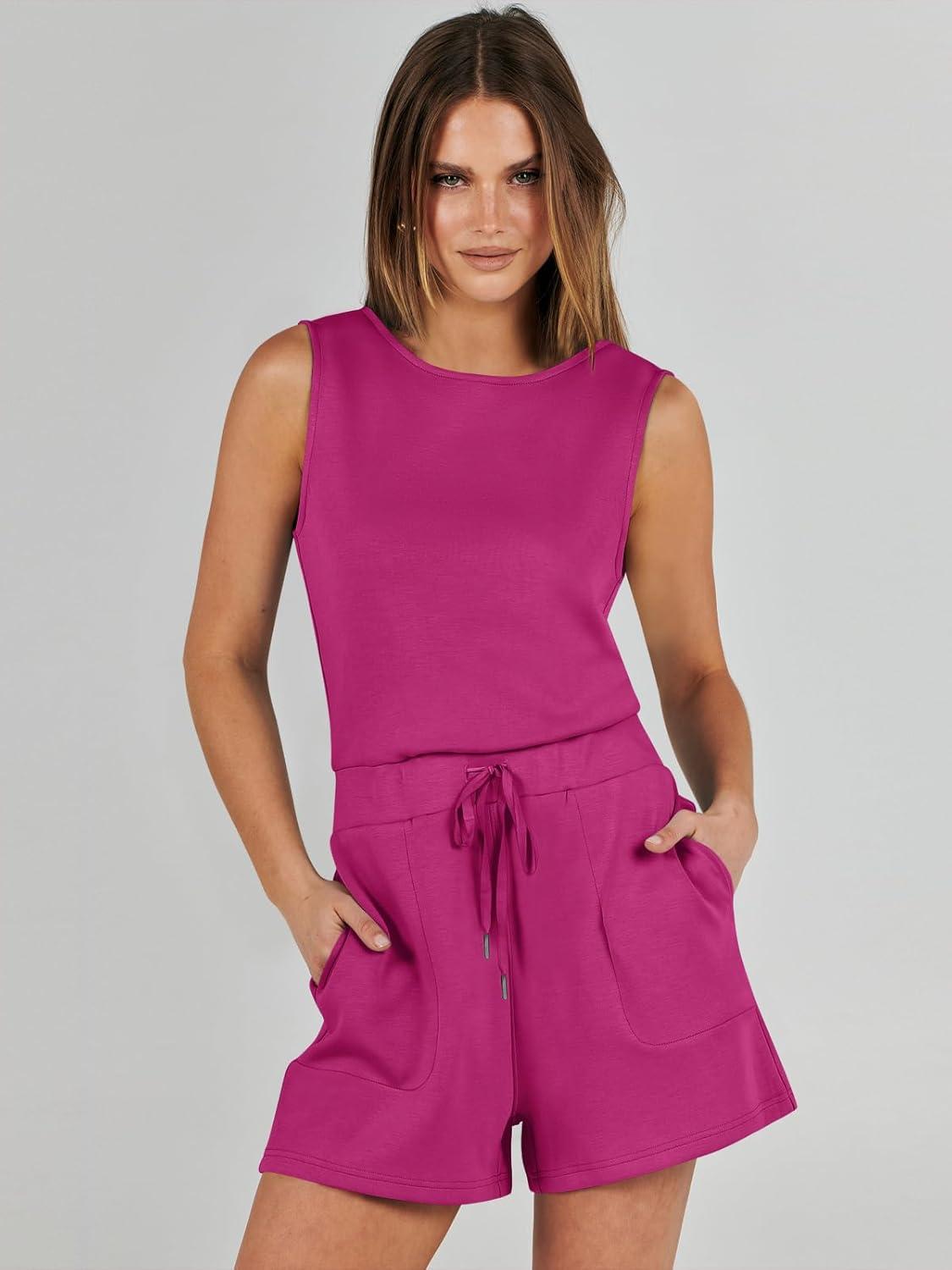 ANRABESS Romper for Women Short Jumpsuit Summer Casual Dressy Sleeveless Outfits Beach Vacation 2025 Trendy One Piece Clothes(Hot Pink)