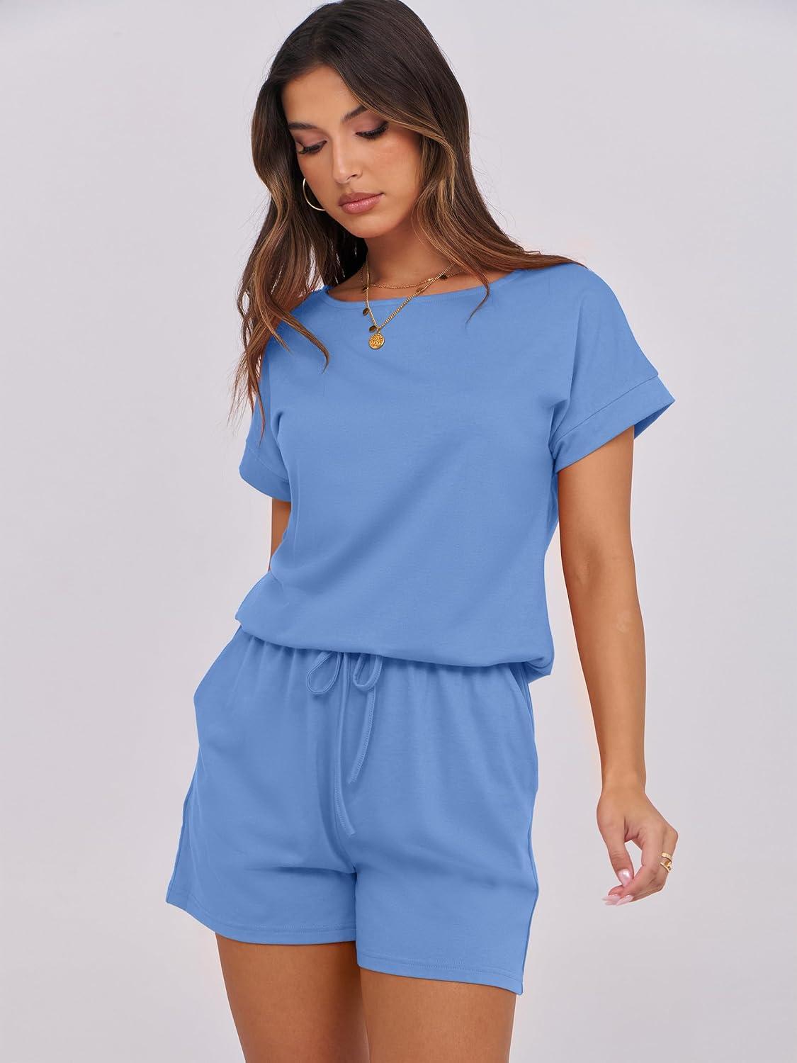 ANRABESS Rompers for Women Summer 2025 Casual Dressy One Piece Tshirt Short Pants Jumpsuit Beach Vacation Outfit Clothes(04 Sky)