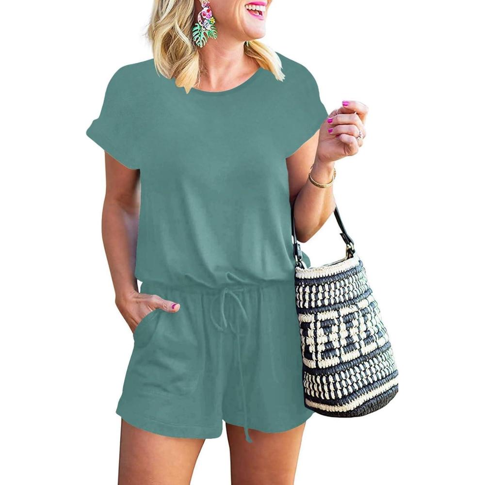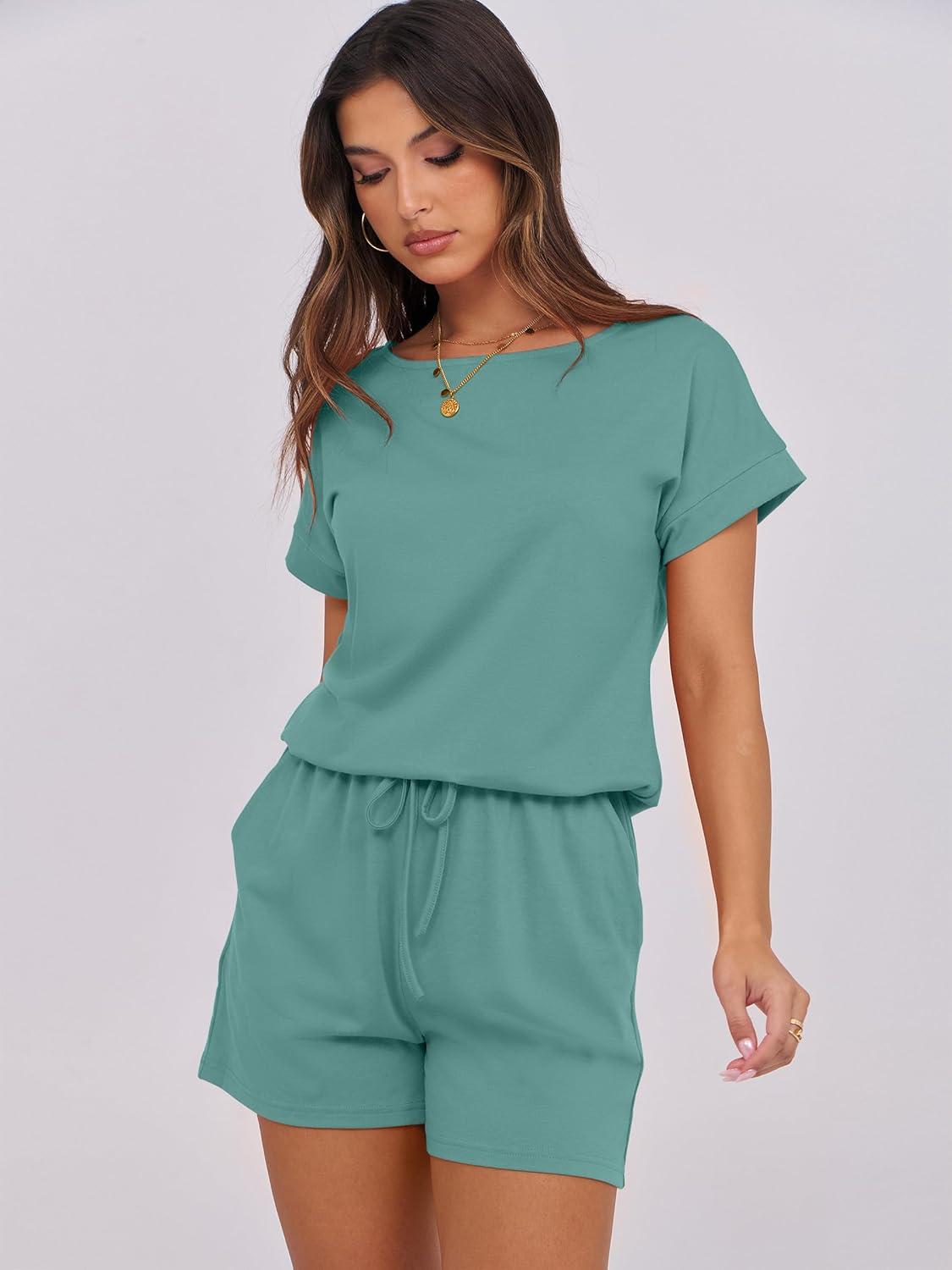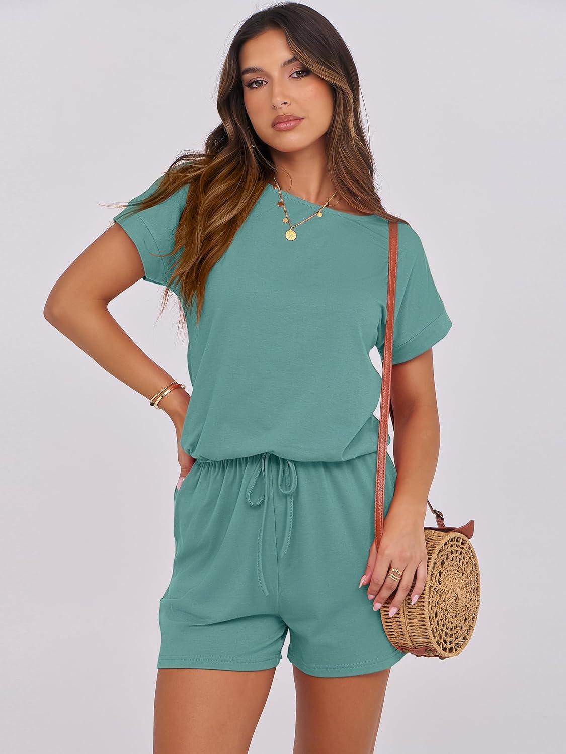 ANRABESS Rompers for Women Summer 2025 Casual Dressy One Piece Tshirt Short Pants Jumpsuit Beach Vacation Outfit Clothes(Lake)