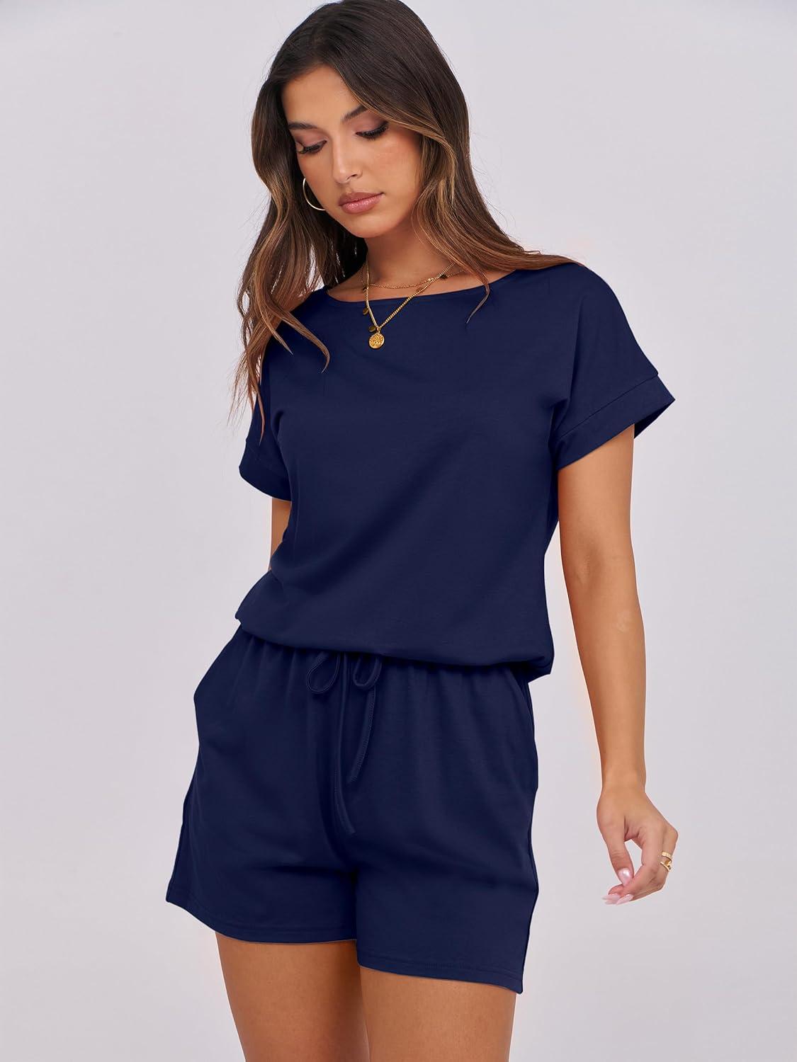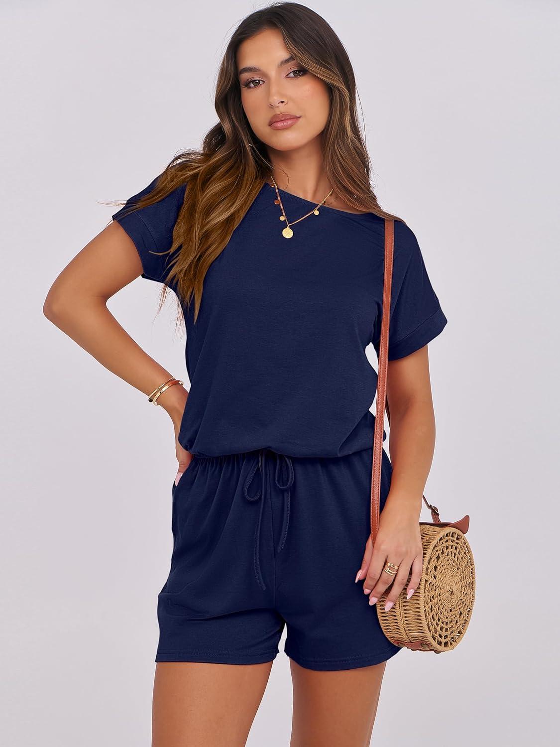 ANRABESS Rompers for Women Summer 2025 Casual Dressy One Piece Tshirt Short Pants Jumpsuit Beach Vacation Outfit Clothes(Navy Blue)