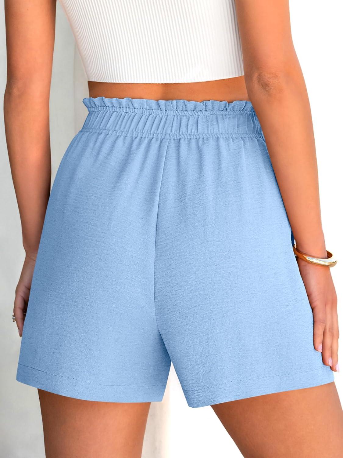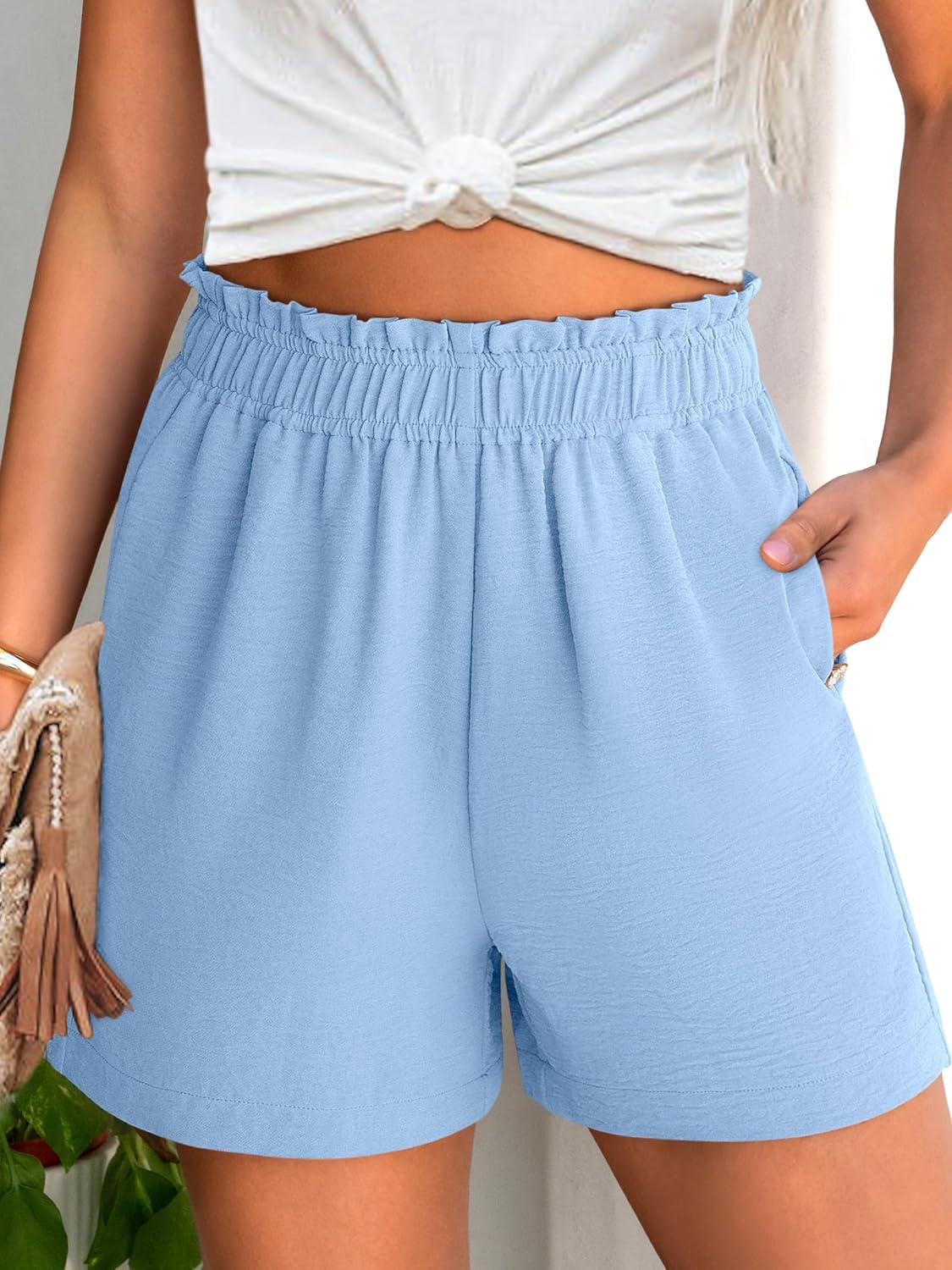 ANRABESS Shorts for Women Summer Casual Elastic High Waisted Dressy Lounge Shorts Comfy Bottoms 2025 Beach Vacation Clothes(Bright Blue)