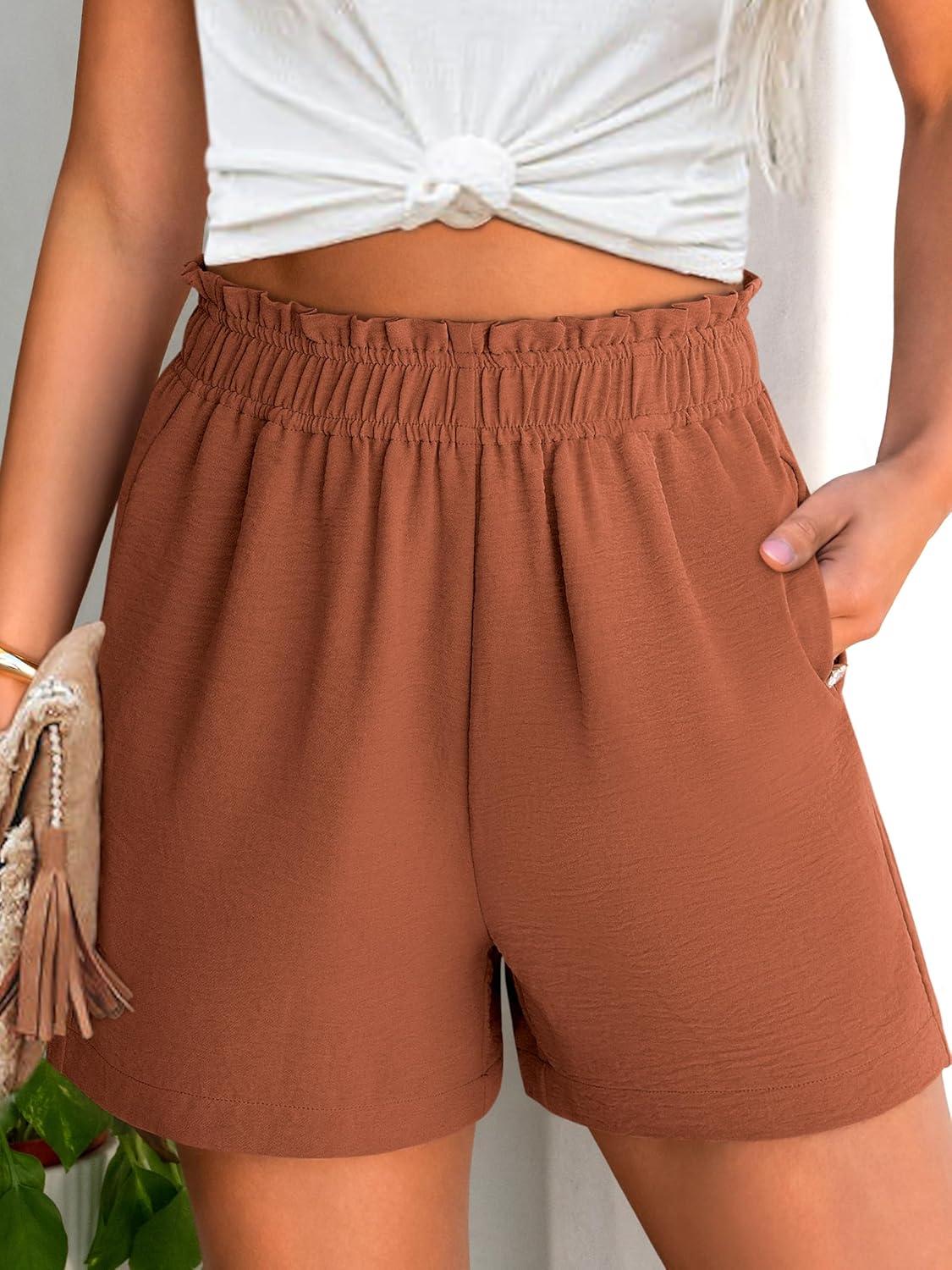 ANRABESS Shorts for Women Summer Casual Elastic High Waisted Dressy Lounge Shorts Comfy Bottoms 2025 Beach Vacation Clothes(Caramel)