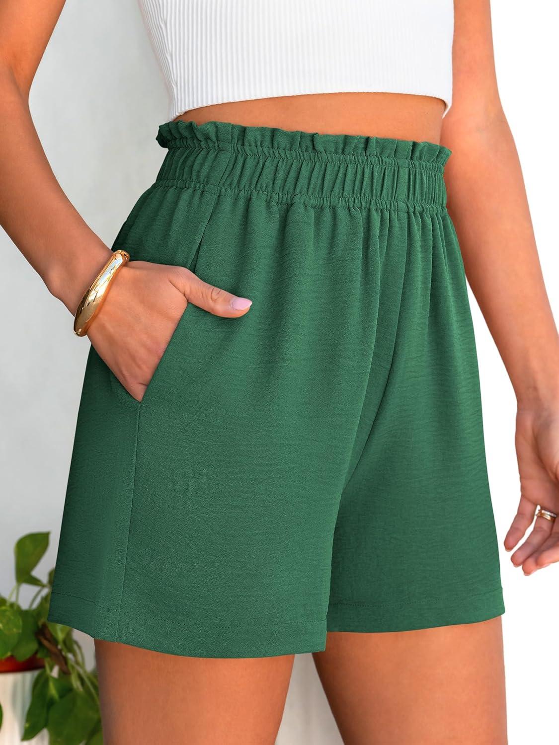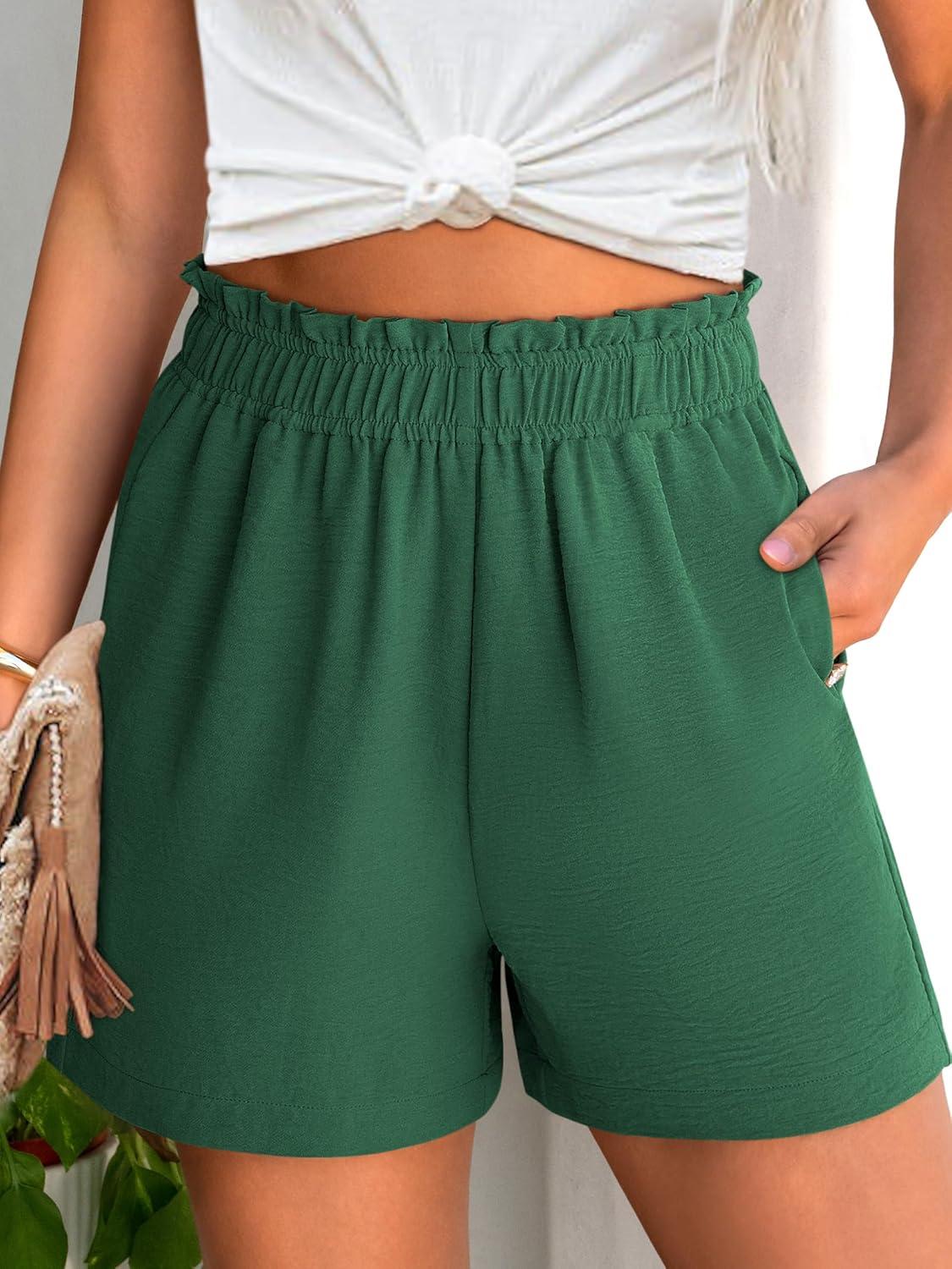 ANRABESS Shorts for Women Summer Casual Elastic High Waisted Dressy Lounge Shorts Comfy Bottoms 2025 Beach Vacation Clothes(Forest Green)