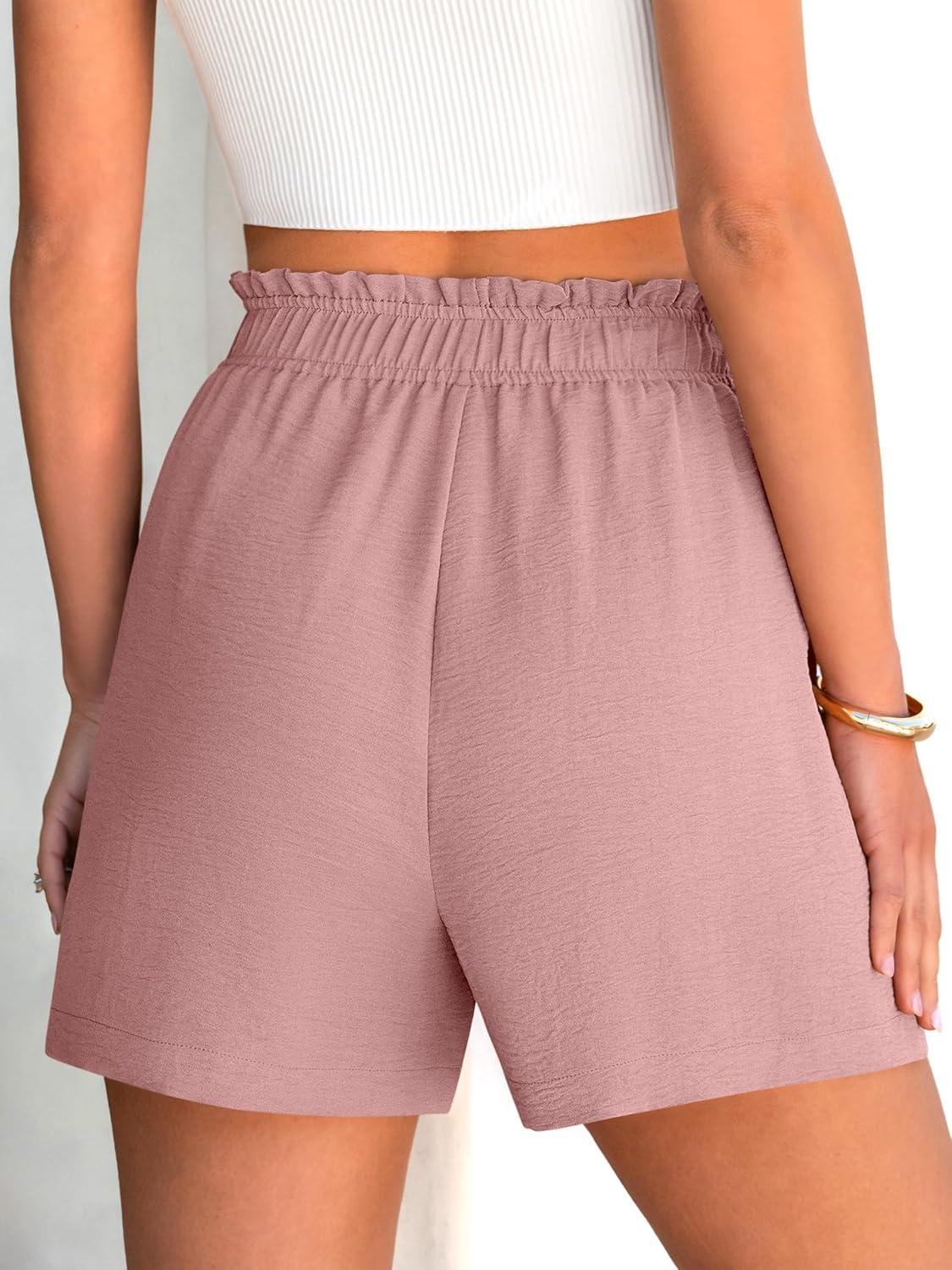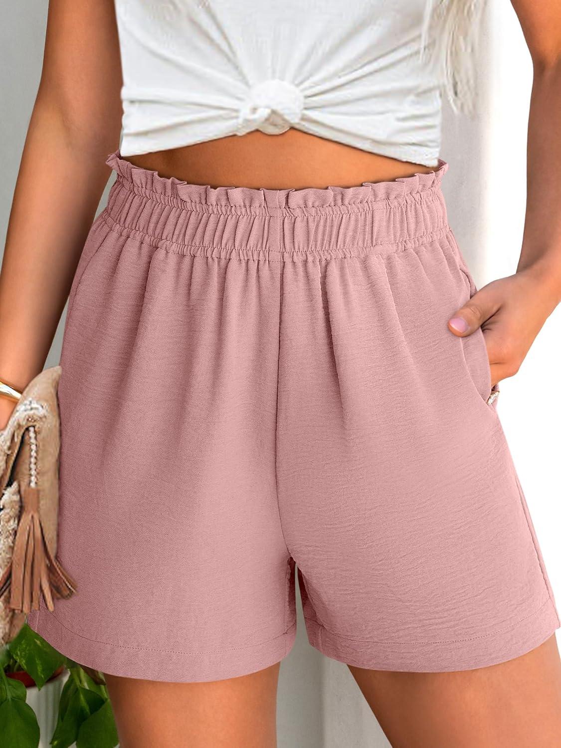 ANRABESS Shorts for Women Summer Casual Elastic High Waisted Dressy Lounge Shorts Comfy Bottoms 2025 Beach Vacation Clothes(Pink)