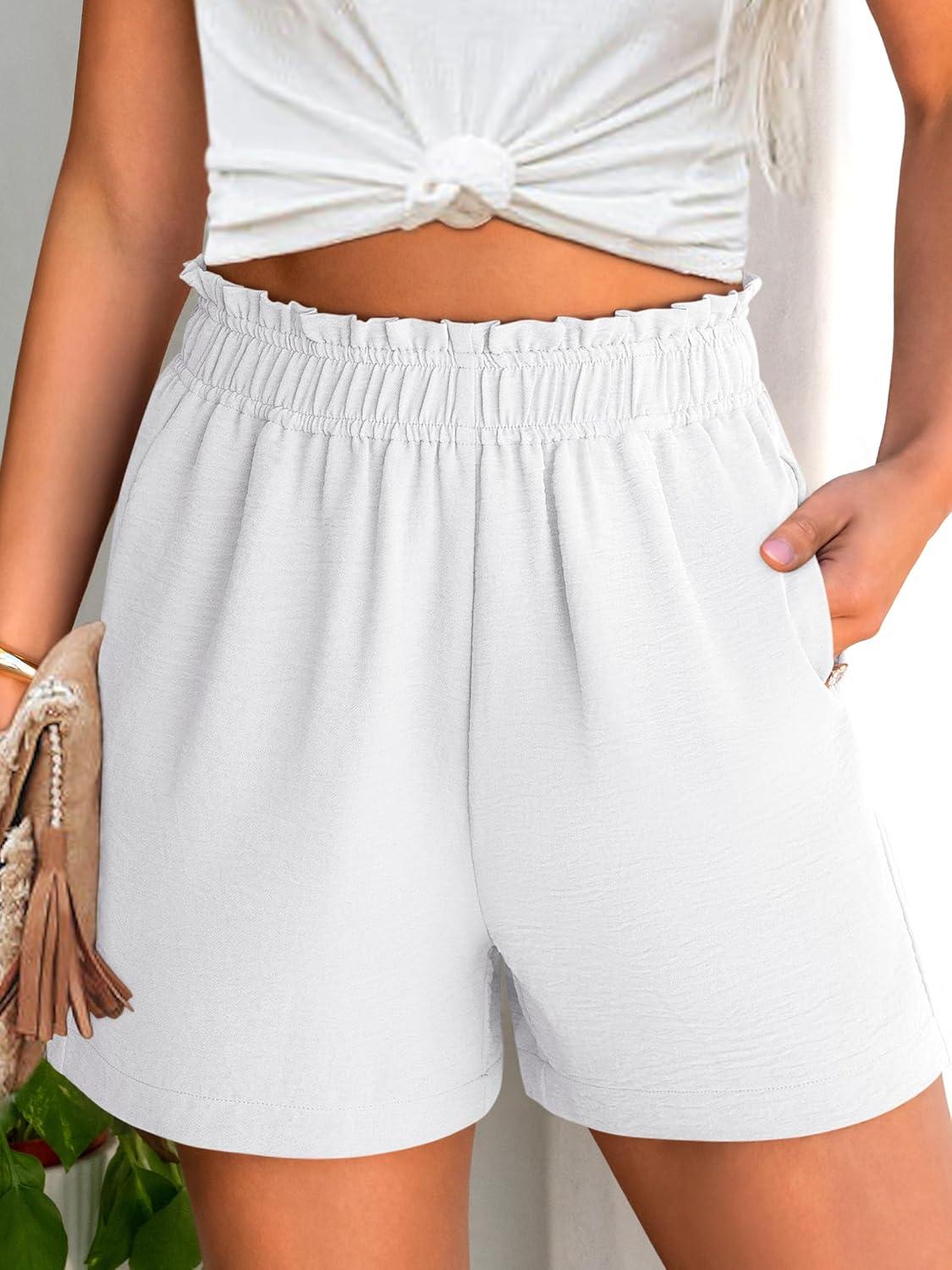 ANRABESS Shorts for Women Summer Casual Elastic High Waisted Dressy Lounge Shorts Comfy Bottoms 2025 Beach Vacation Clothes(White)