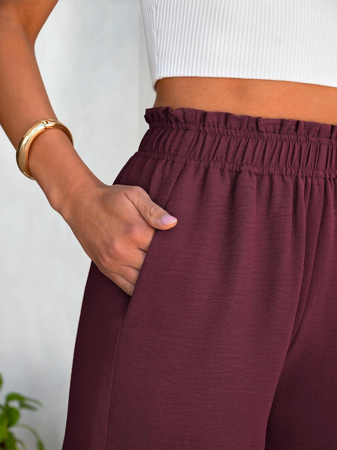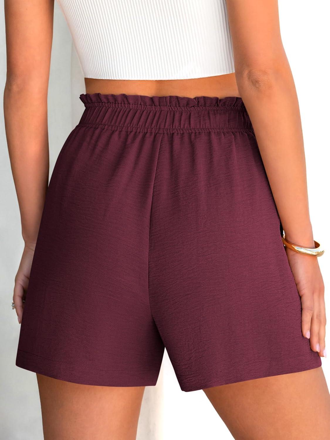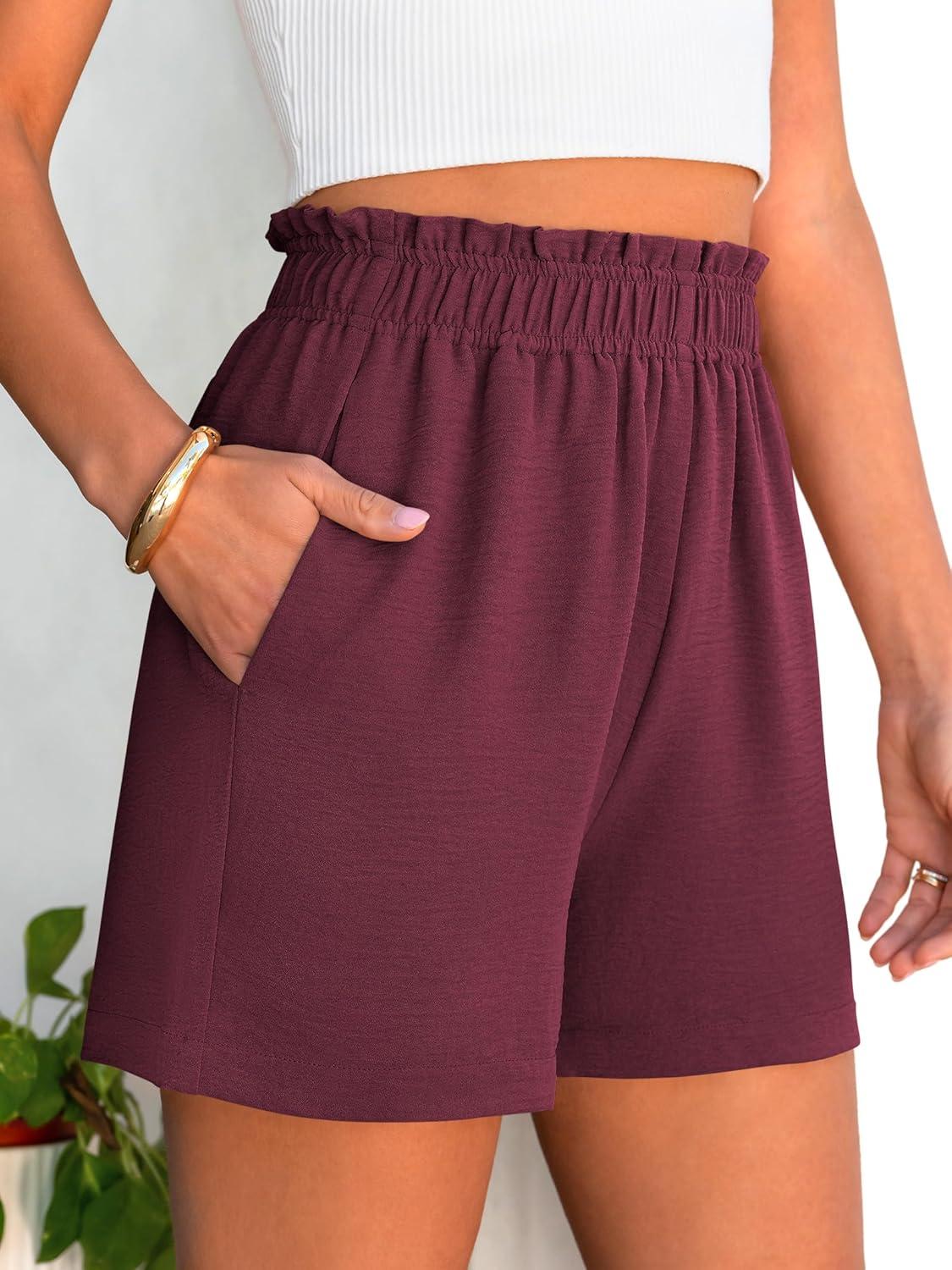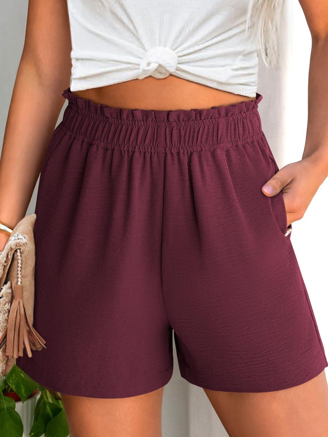 ANRABESS Shorts for Women Summer Casual Elastic High Waisted Dressy Lounge Shorts Comfy Bottoms 2025 Beach Vacation Clothes(Wine Red)