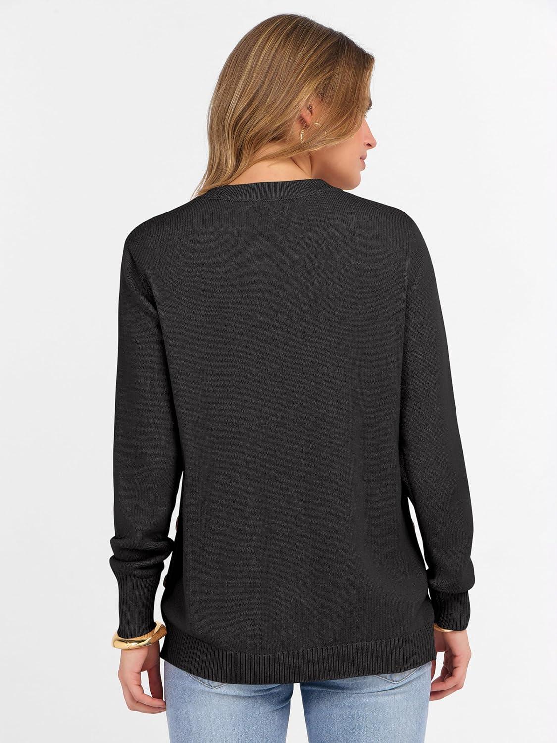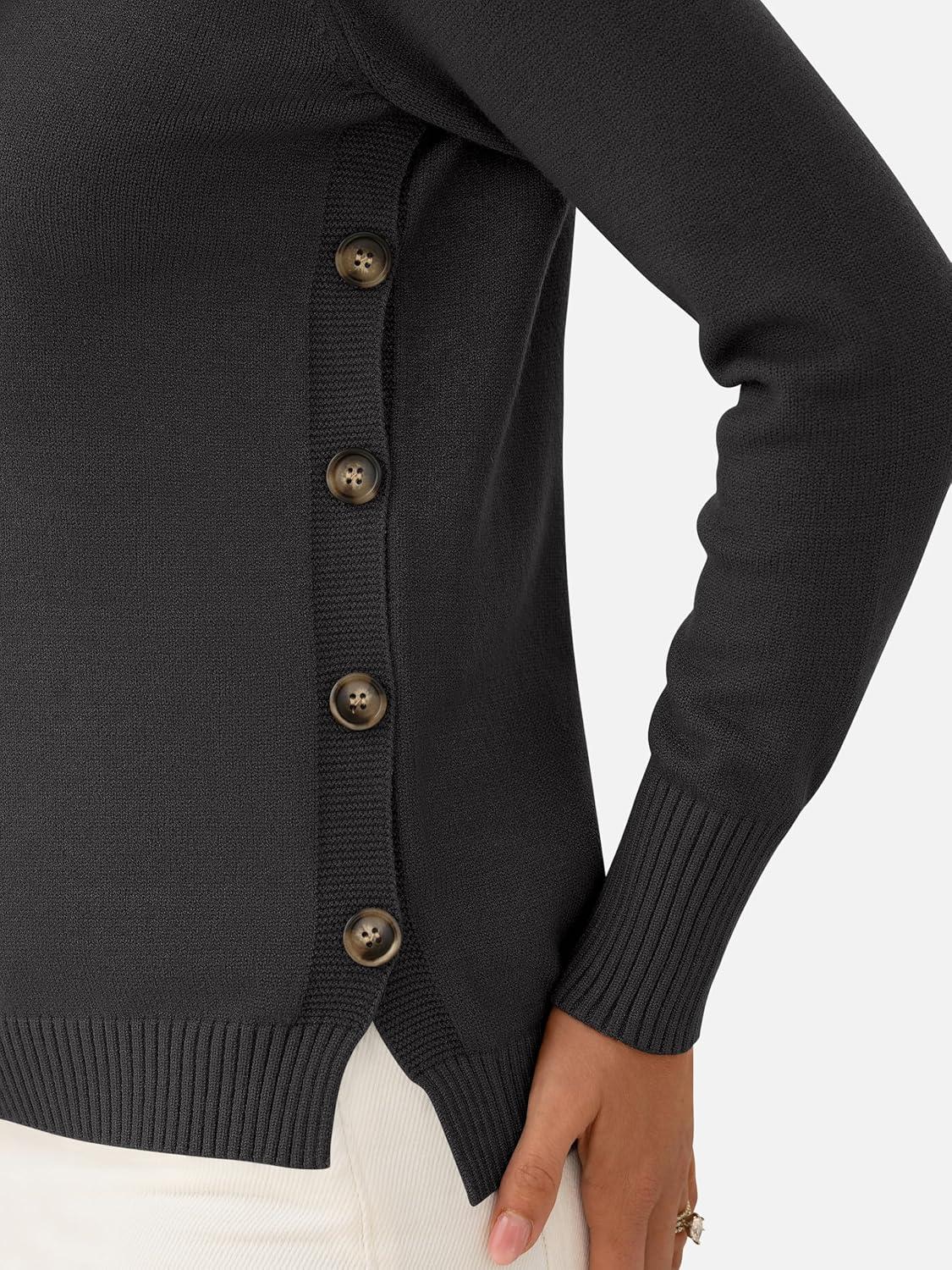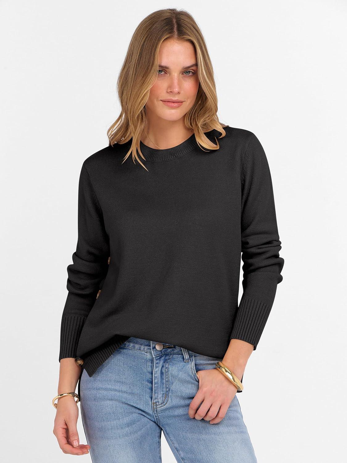 ANRABESS Sweaters for Women 2025 Fall Long Sleeve Crewneck Knit Casual Loose Side Button Basic Pullover Tops Trendy Outfits(Black)