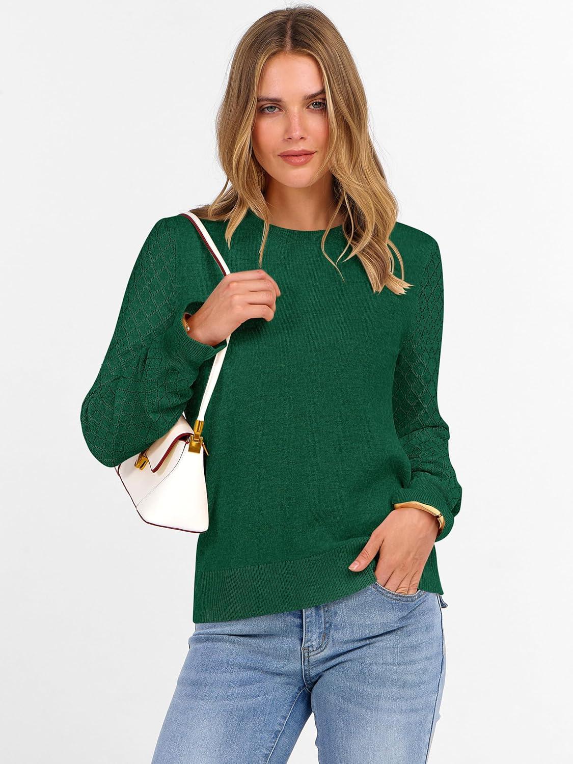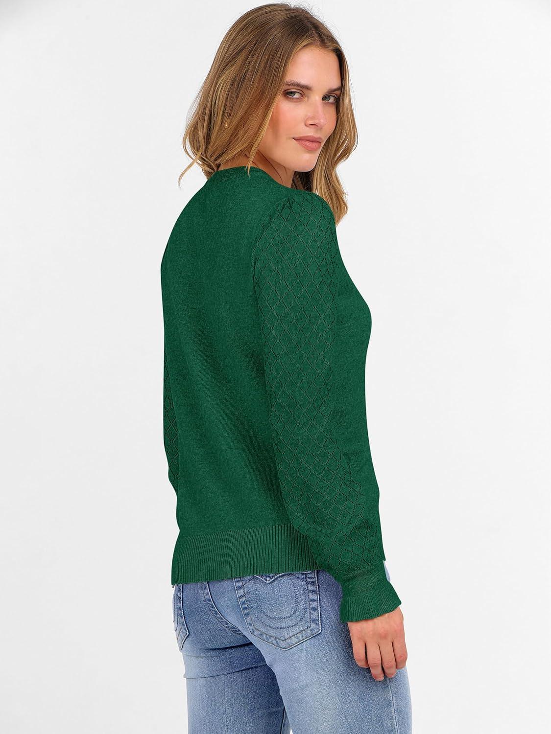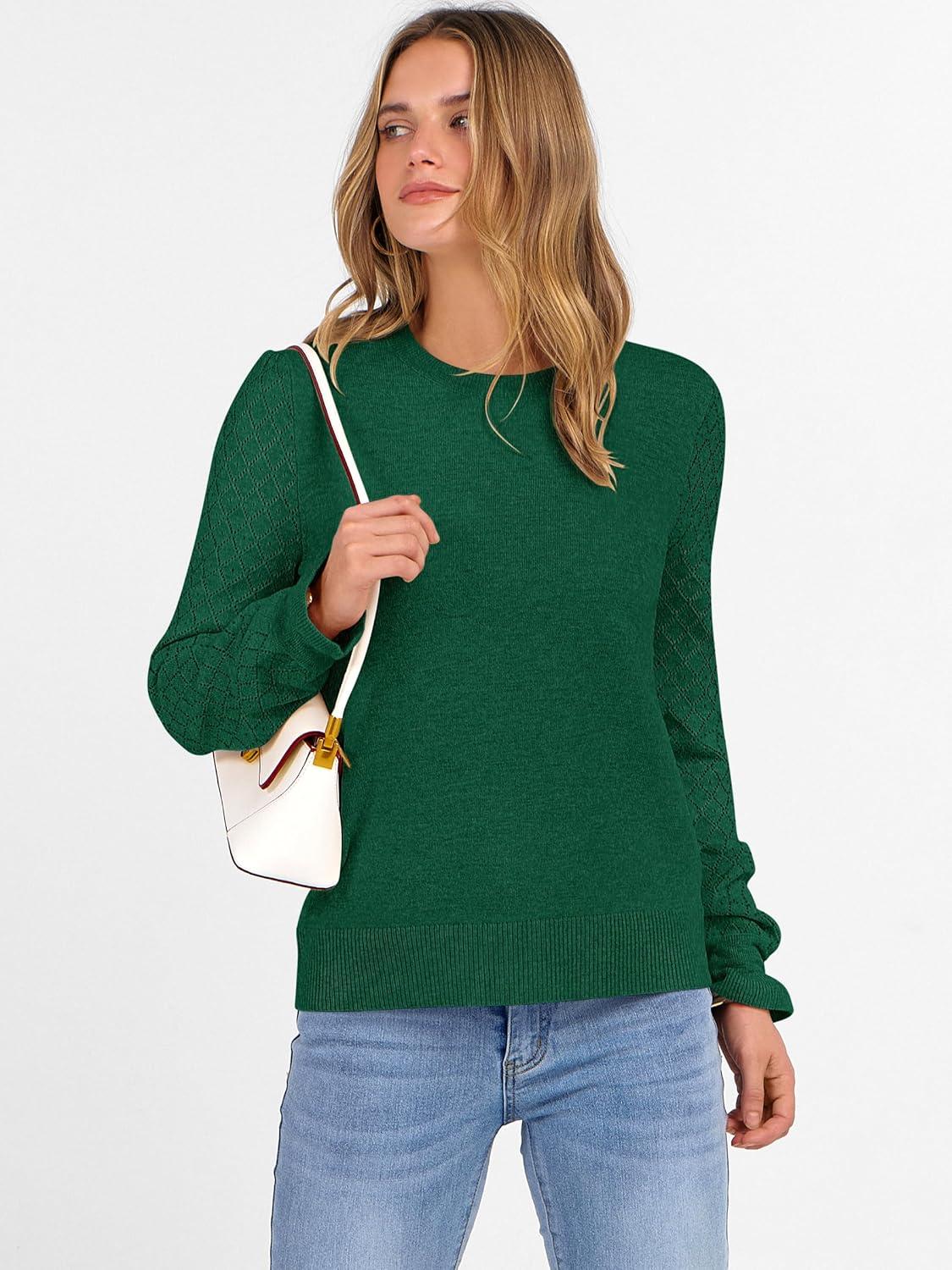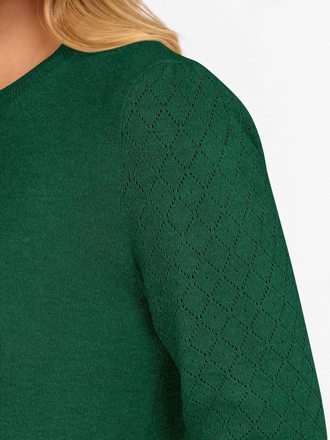 ANRABESS Sweaters for Women Lace Long Sleeve Tops 2025 Fall Dressy Casual Business Knitted Pullover Shirts Puff Cuffs Outfits(Forest Green)