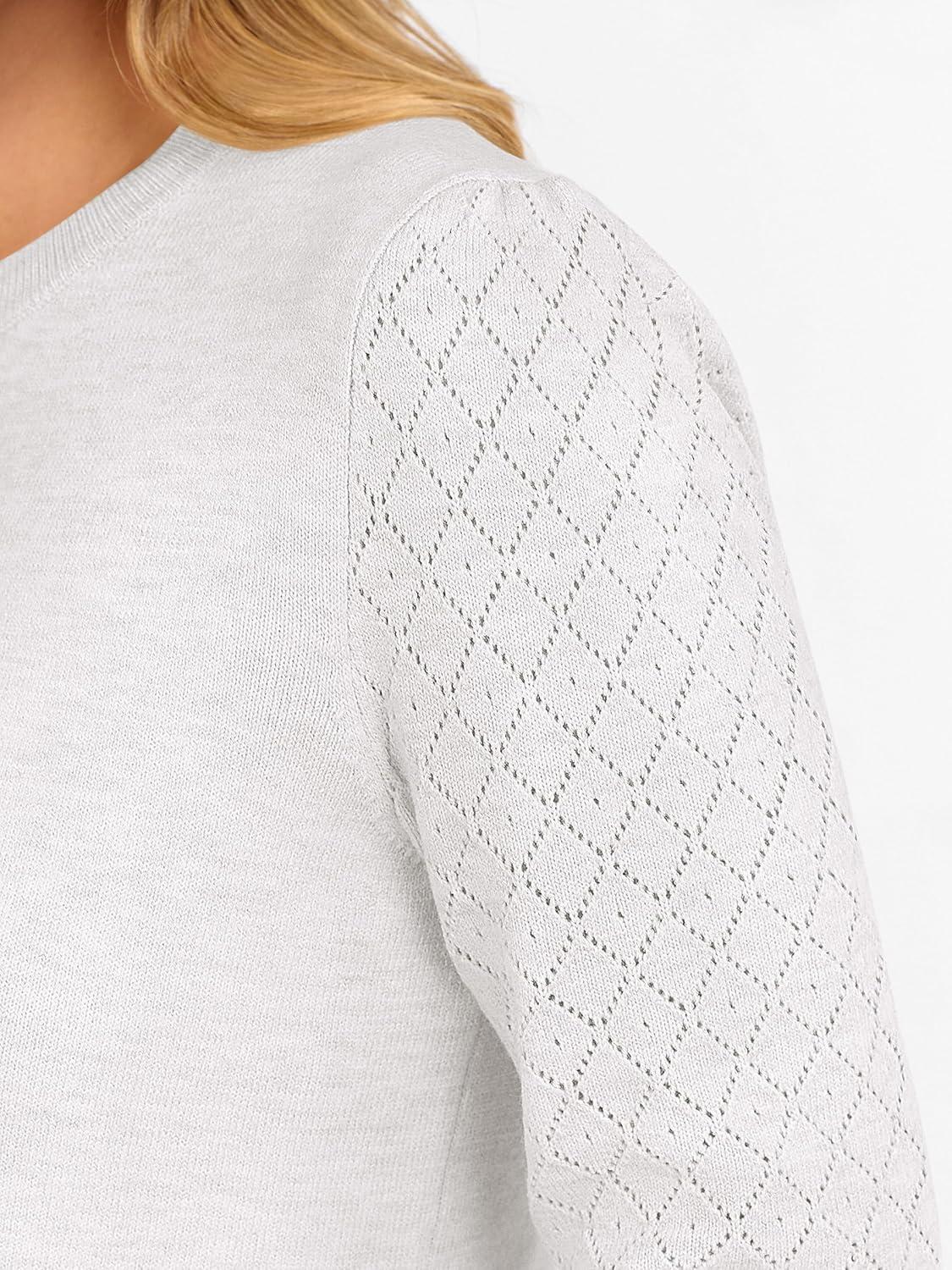 ANRABESS Sweaters for Women Lace Long Sleeve Tops 2025 Fall Dressy Casual Business Knitted Pullover Shirts Puff Cuffs Outfits(White)