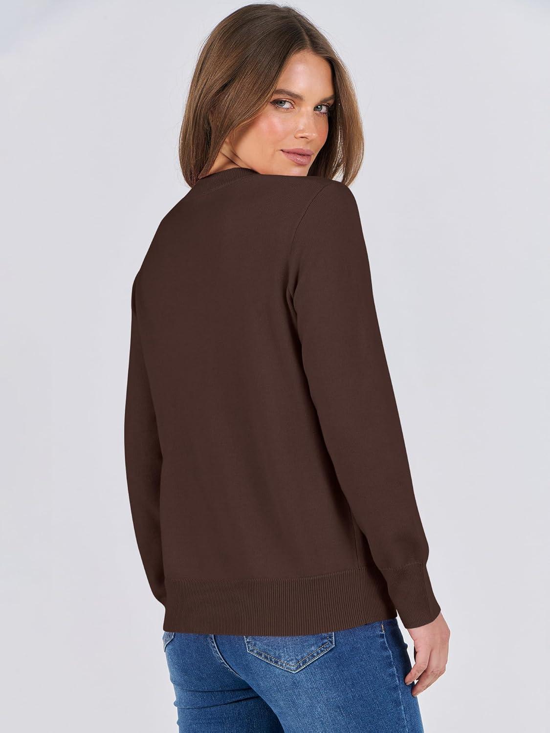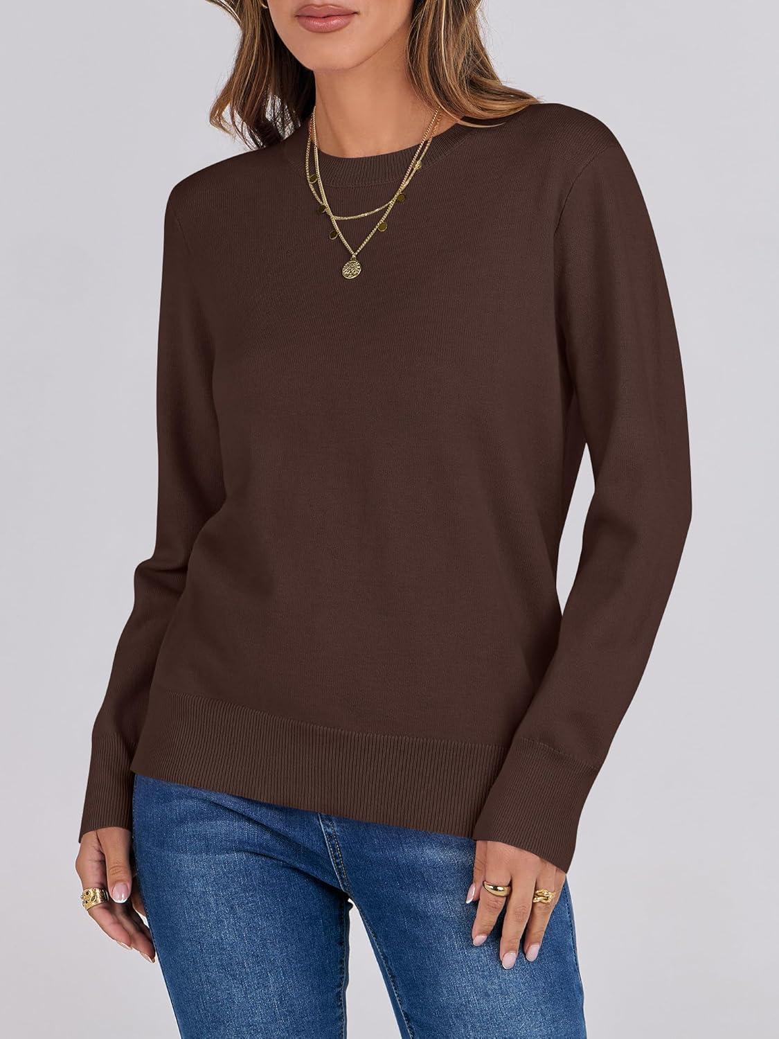 ANRABESS Sweaters for Women Long Sleeve Lightweight Crewneck Soft Basic Knit Loose Fit Pullover Top 2025 Fall Trendy Outfits(Coffee)