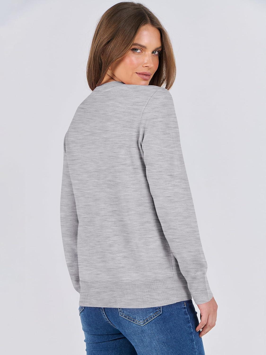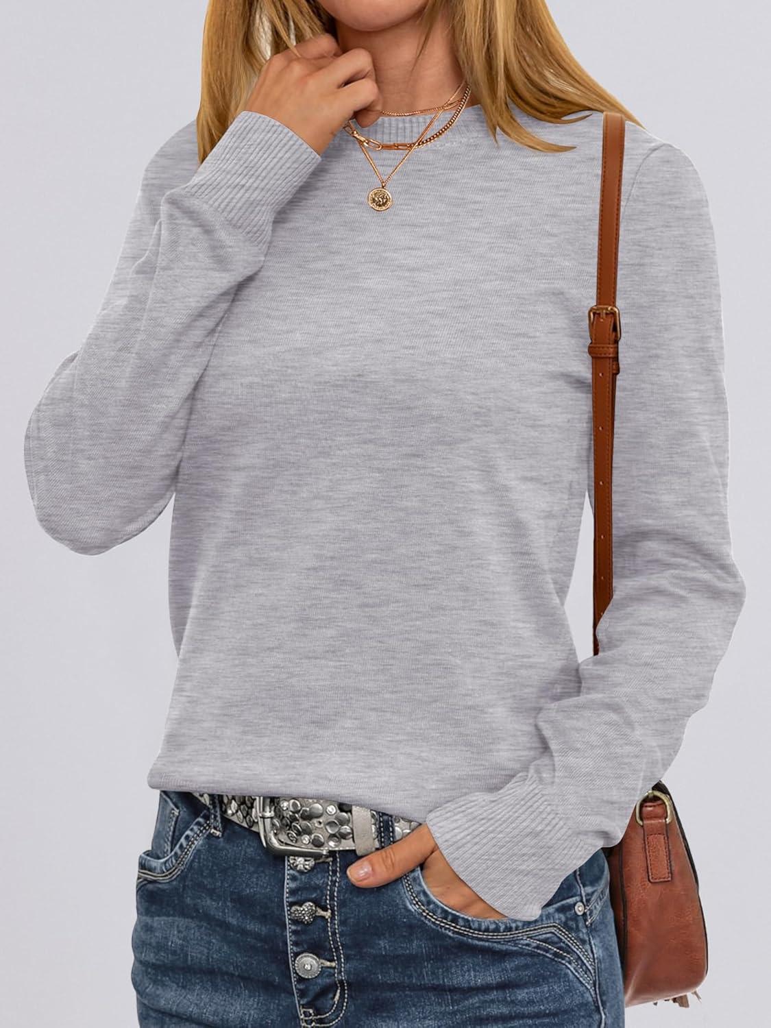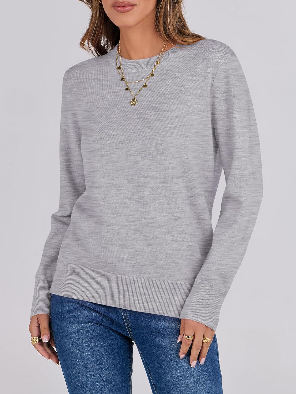 ANRABESS Sweaters for Women Long Sleeve Lightweight Crewneck Soft Basic Knit Loose Fit Pullover Top 2025 Fall Trendy Outfits(Light Gray)