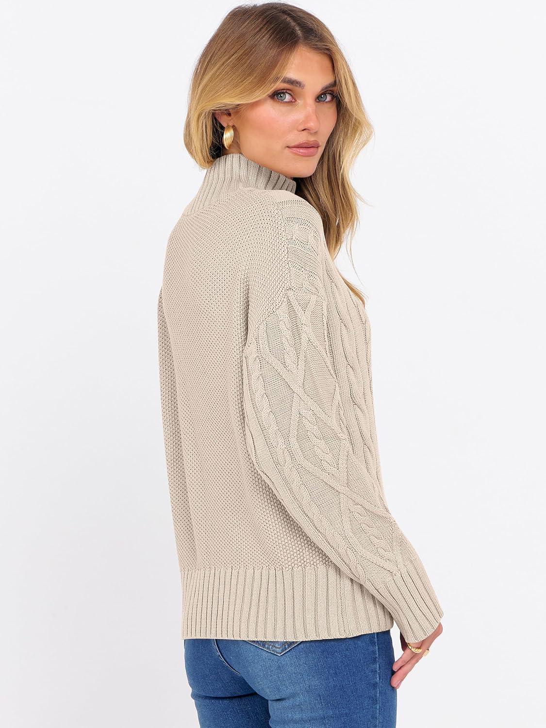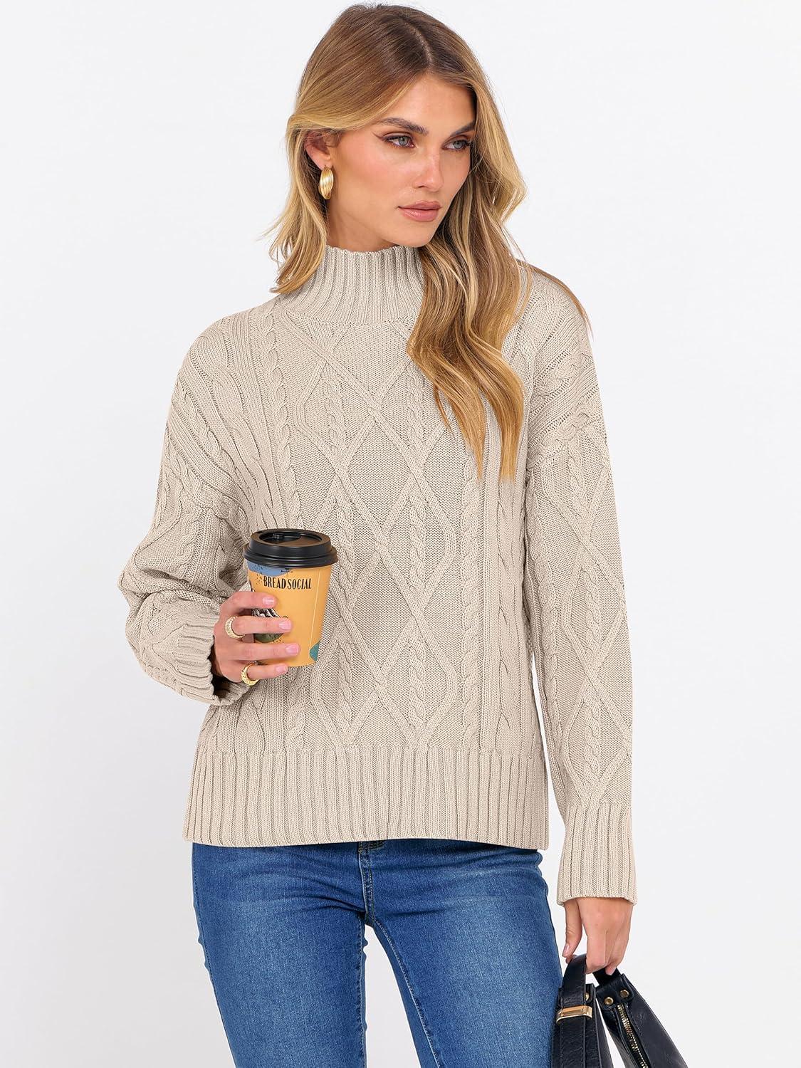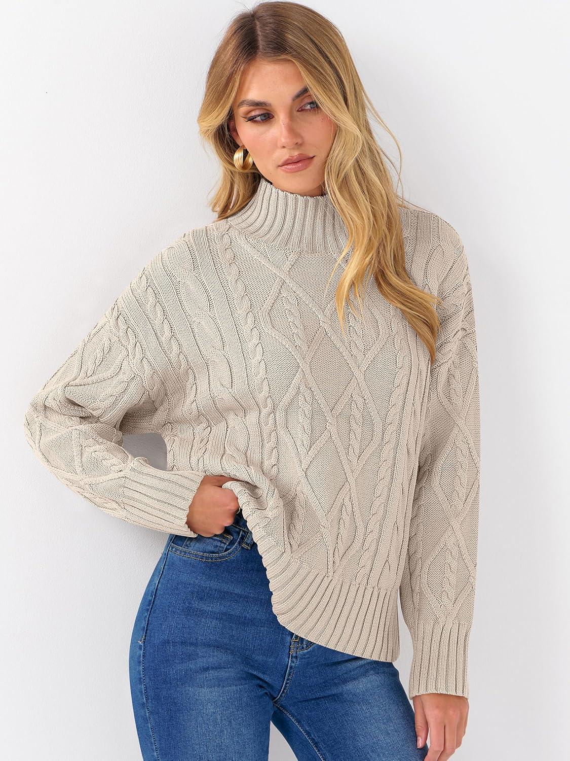 ANRABESS Sweaters for Women Oversized Long Sleeve Turtleneck Cable Knit Casual Loose Pullover Tops 2025 Fall Trendy Outfits(Yellow Apricot)